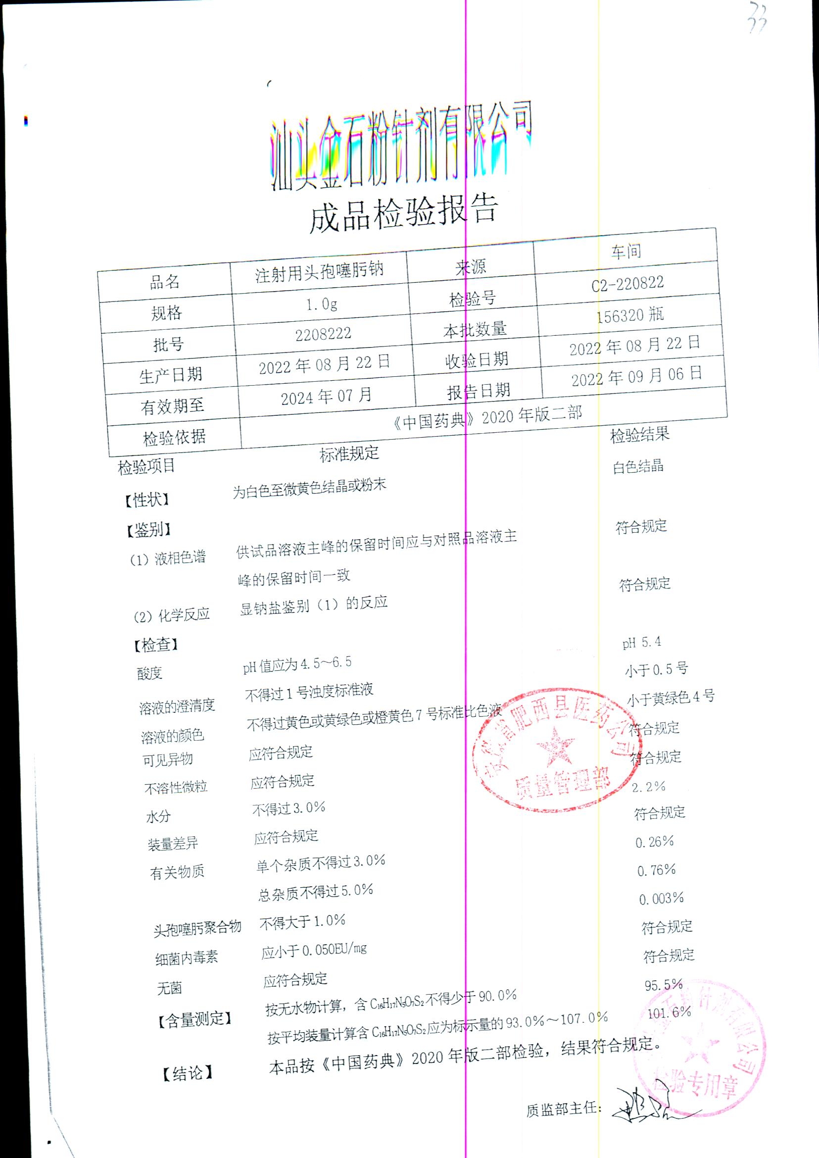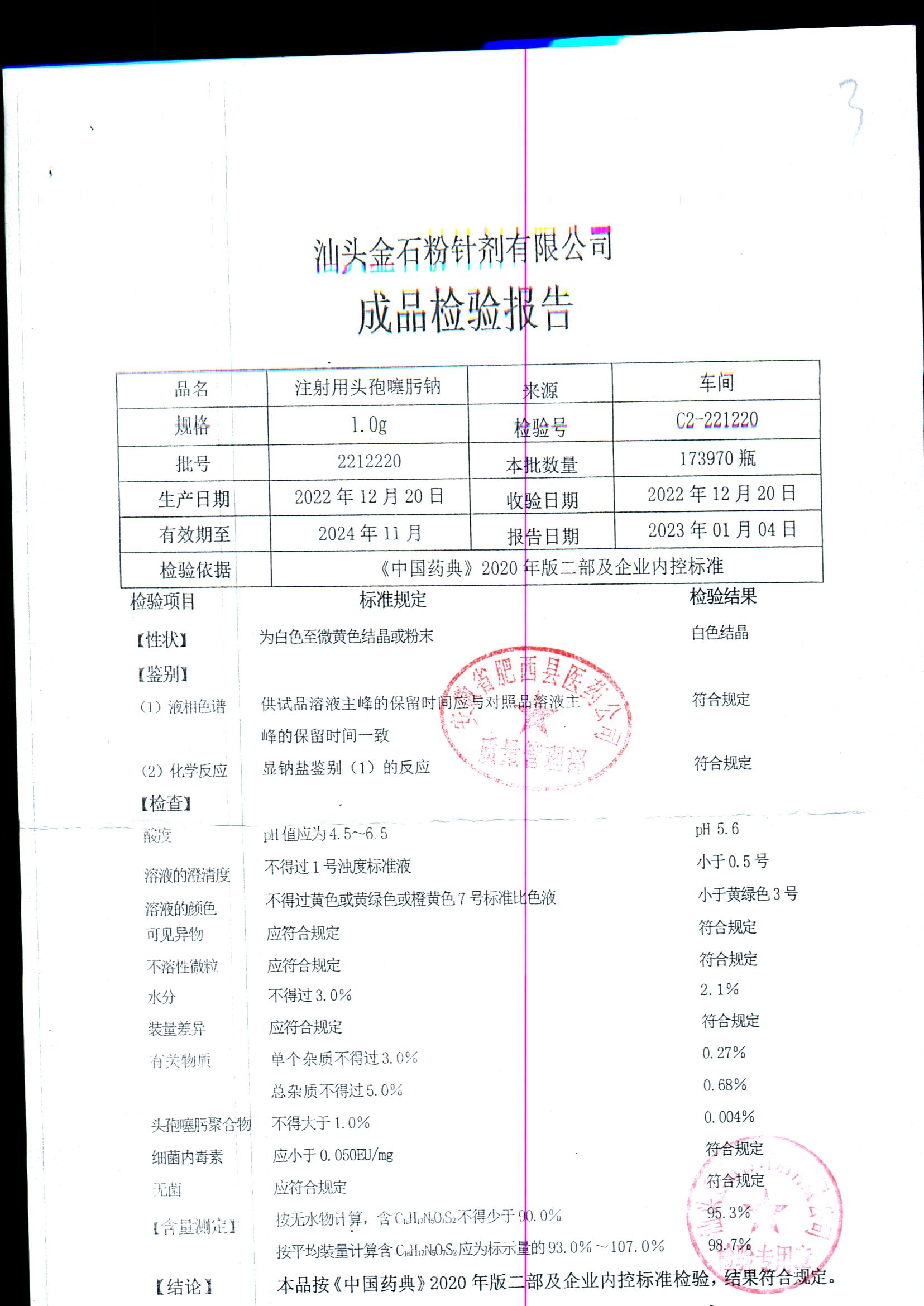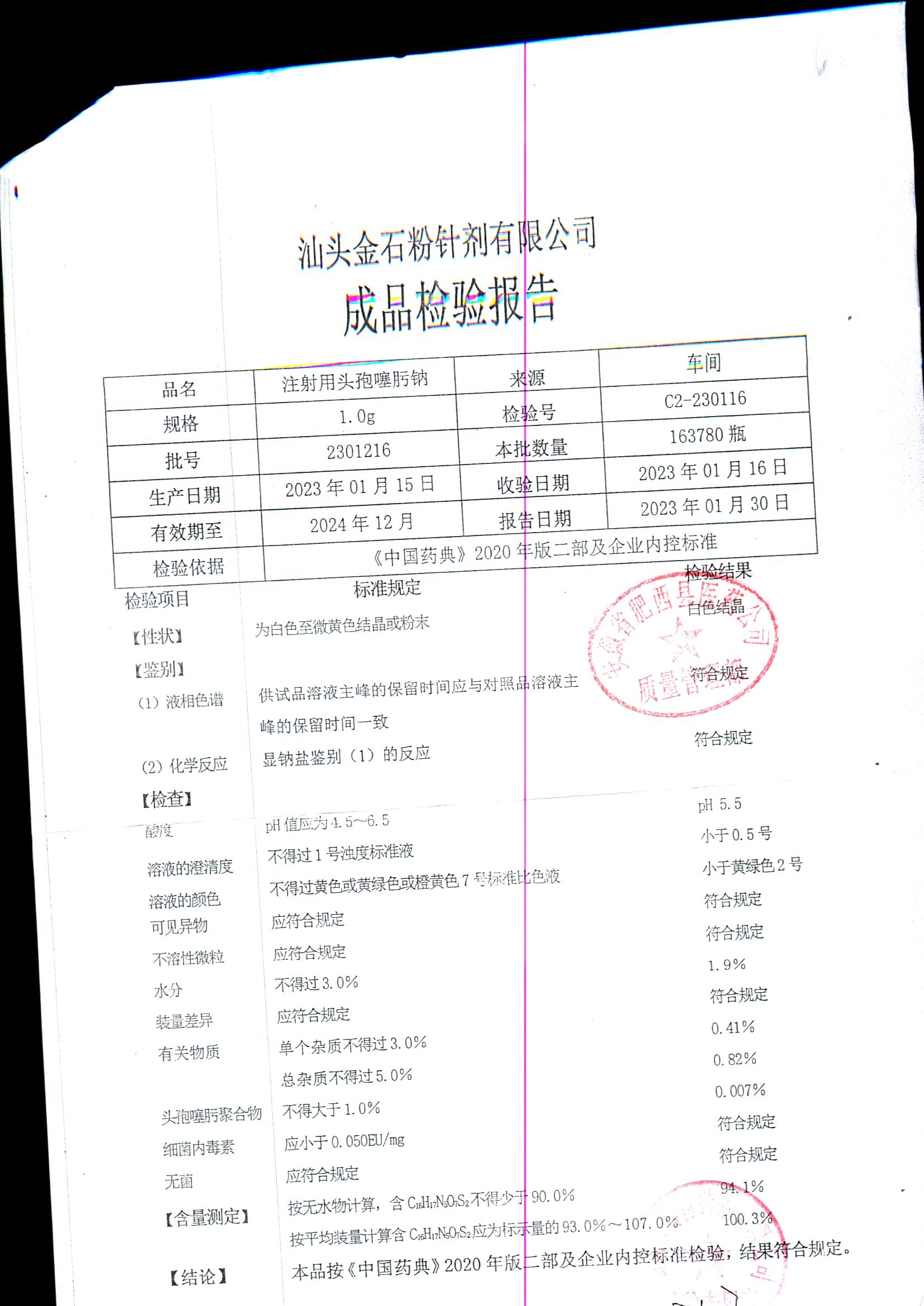 注射用头孢噻肟钠 | 1.0g*10瓶 | 2207215 | 查看详情 |