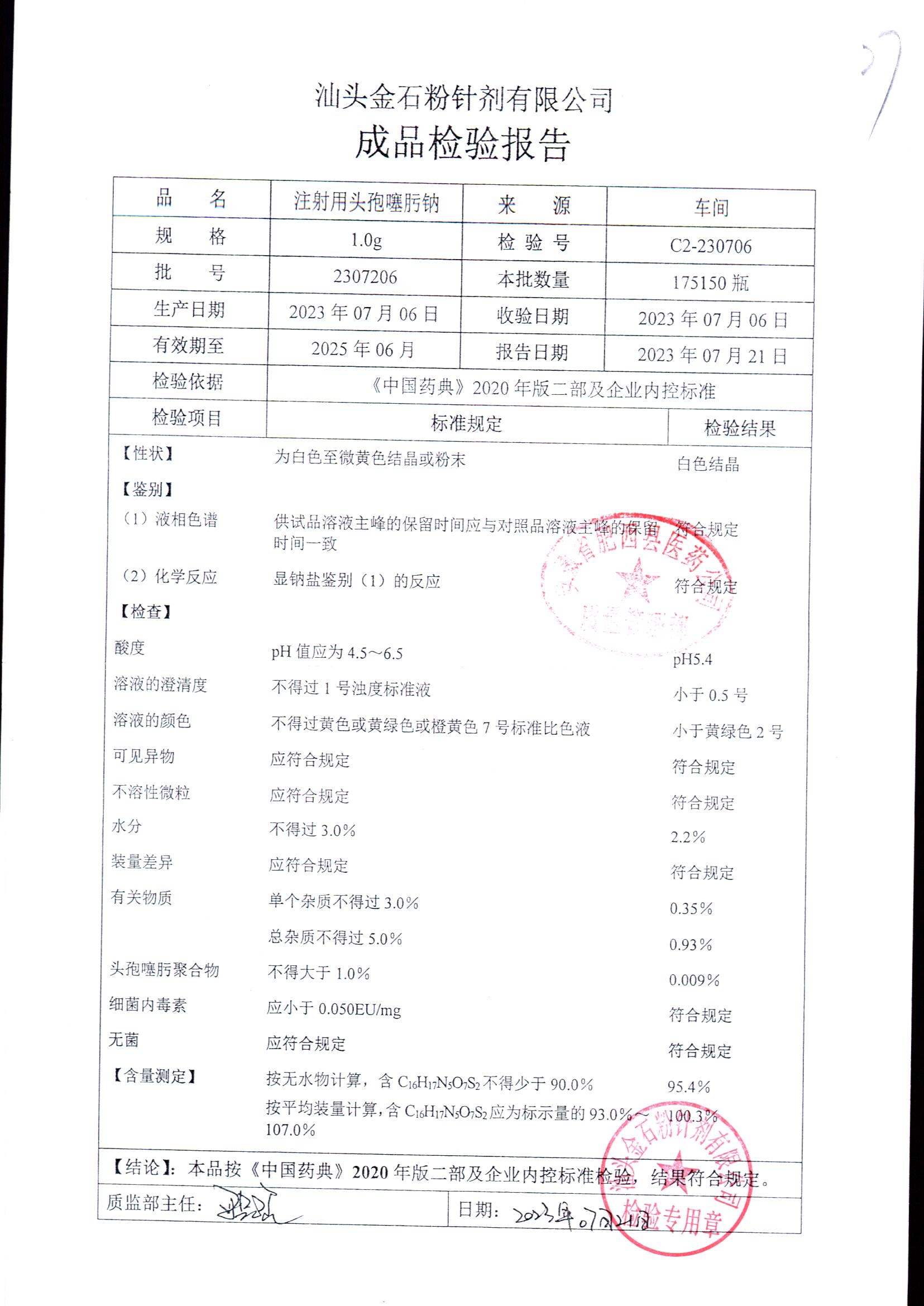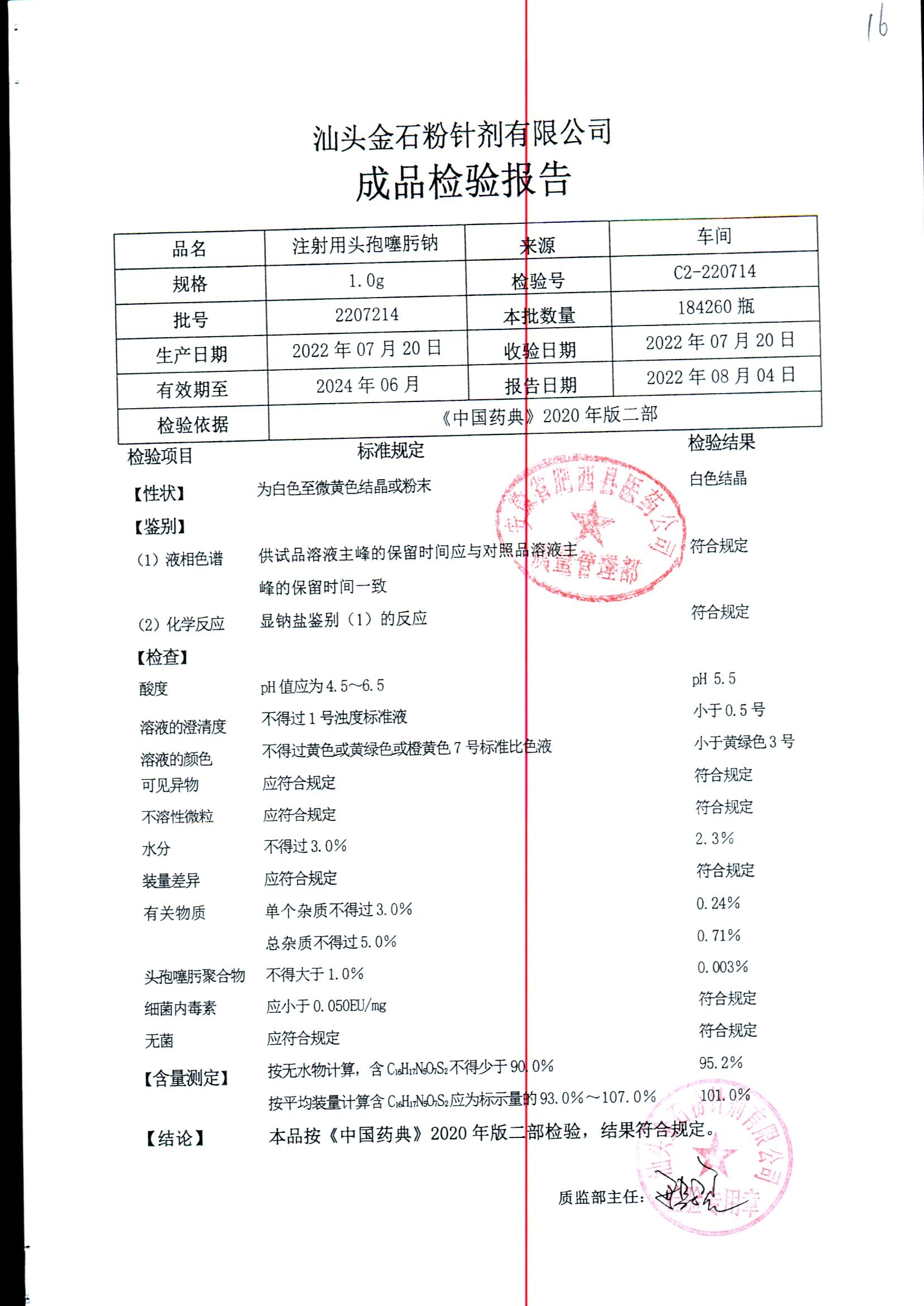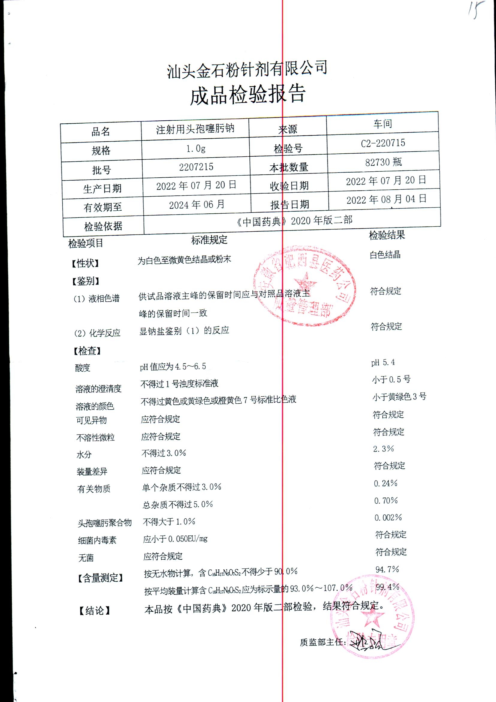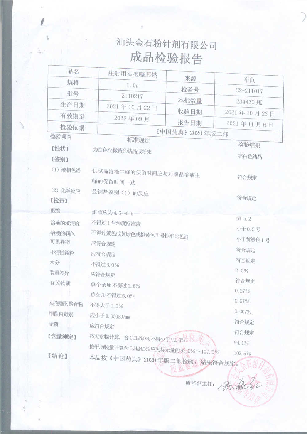 注射用头孢噻肟钠 | 1.0g*10瓶 | 2207215 | 查看详情 |