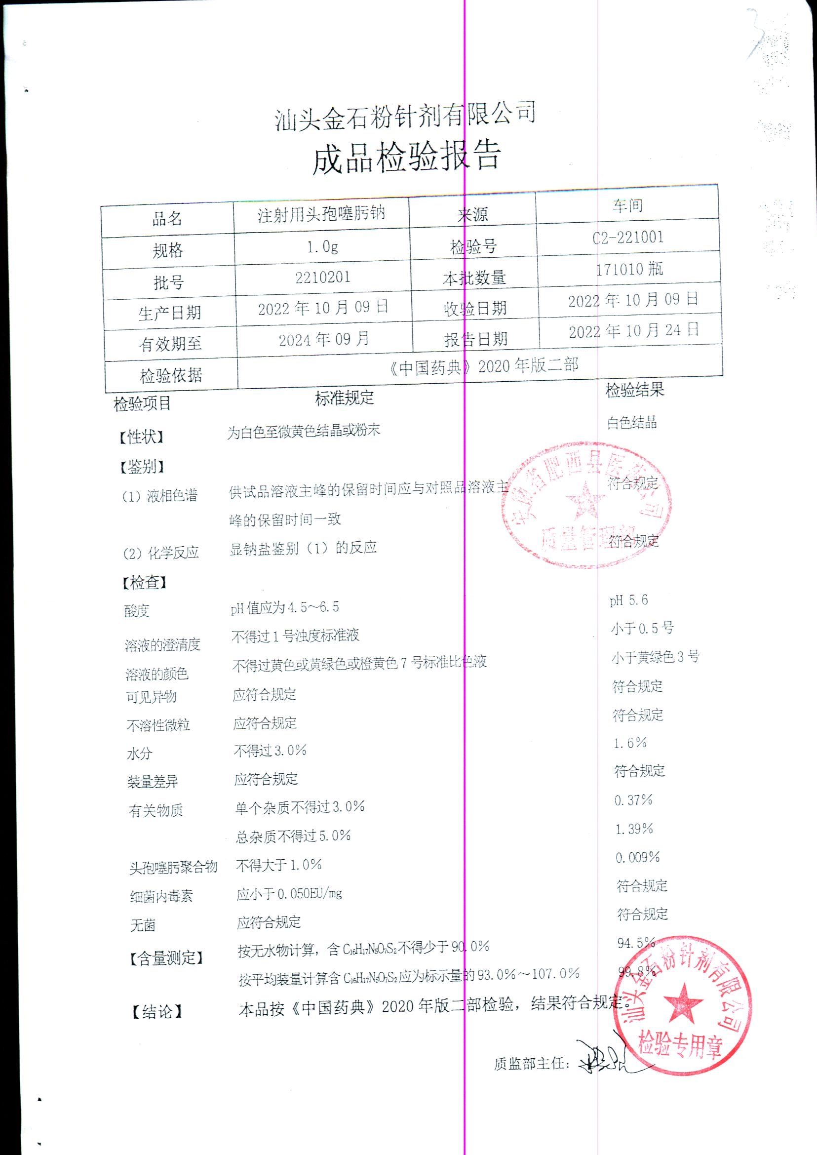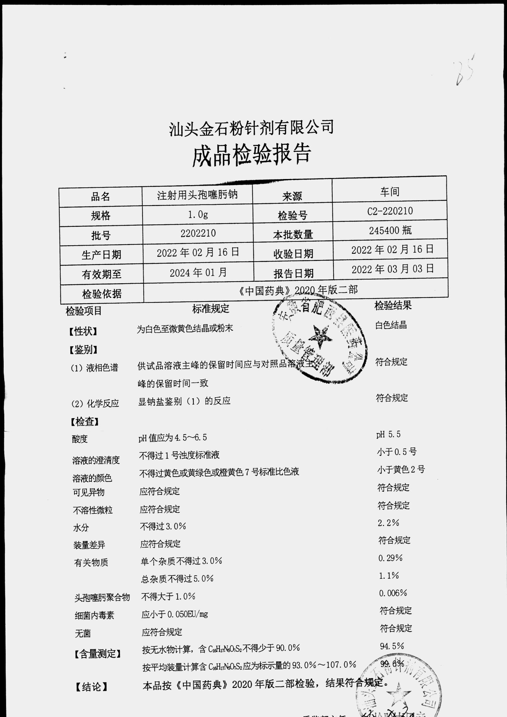 注射用头孢噻肟钠 | 1.0g*10瓶 | 2210201 | 查看详情 |