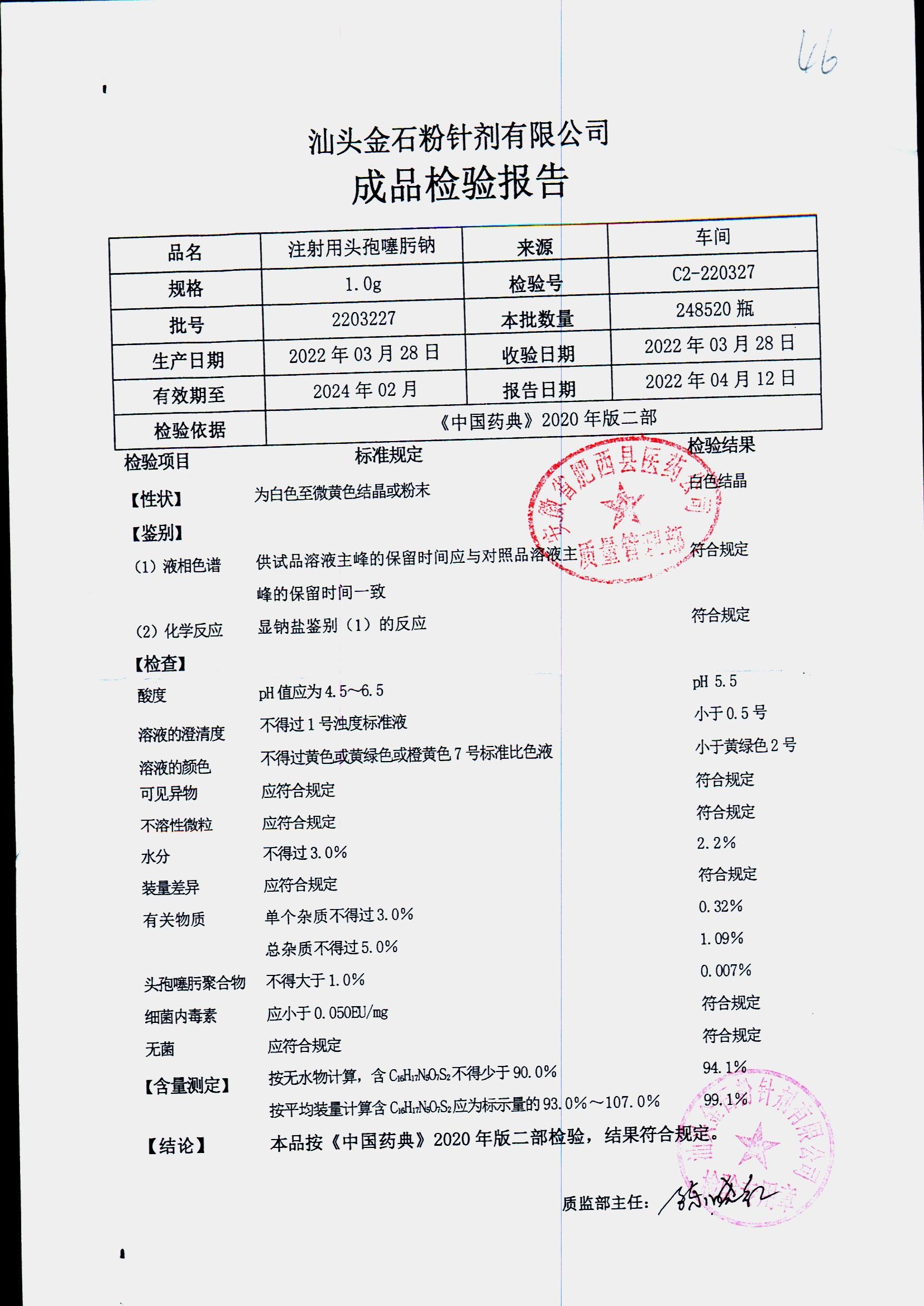 注射用头孢噻肟钠 | 1.0g*10瓶 | 2203227 | 查看详情 |