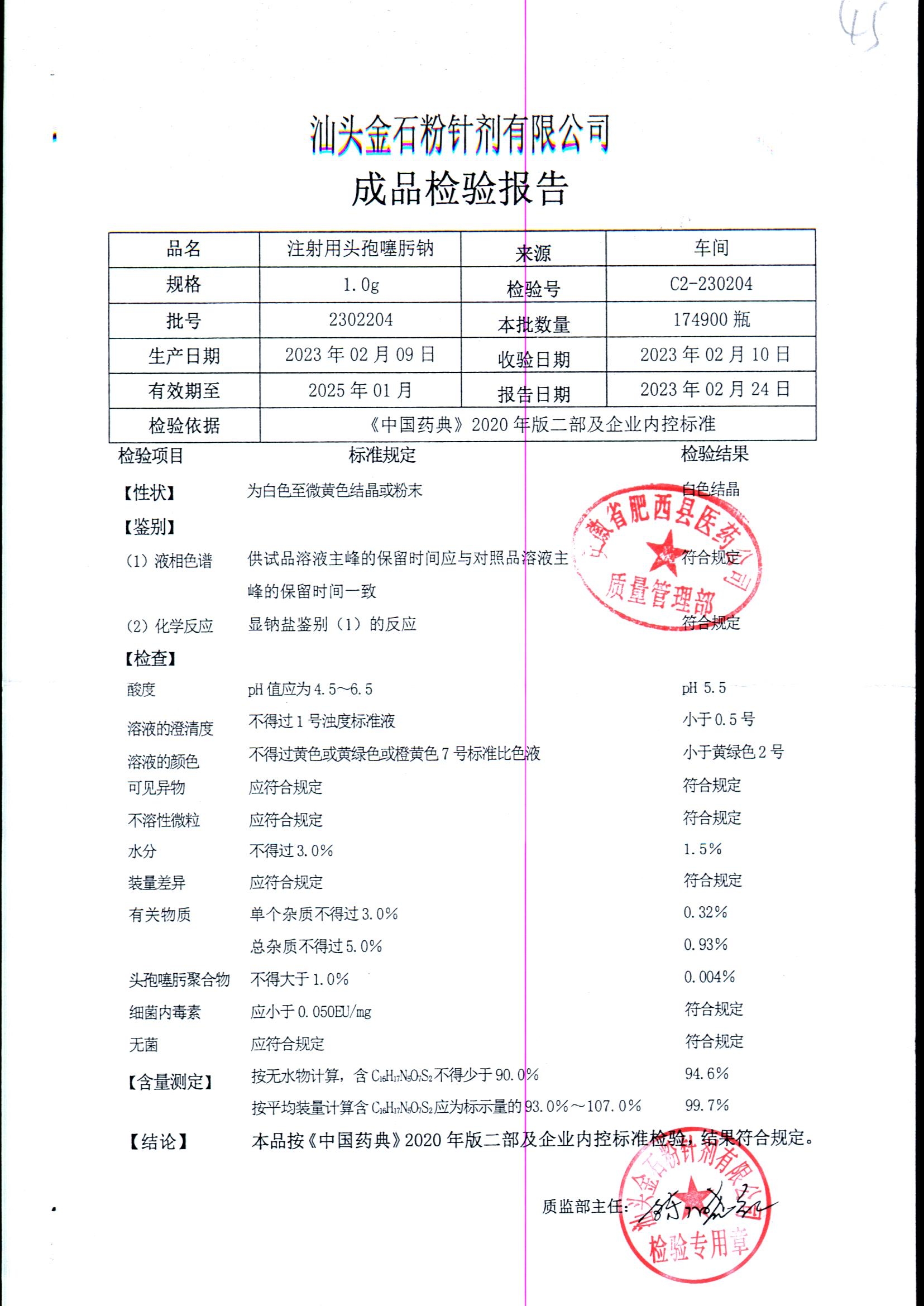 注射用头孢噻肟钠 | 1.0g*10瓶 | 2302204 | 查看详情 |