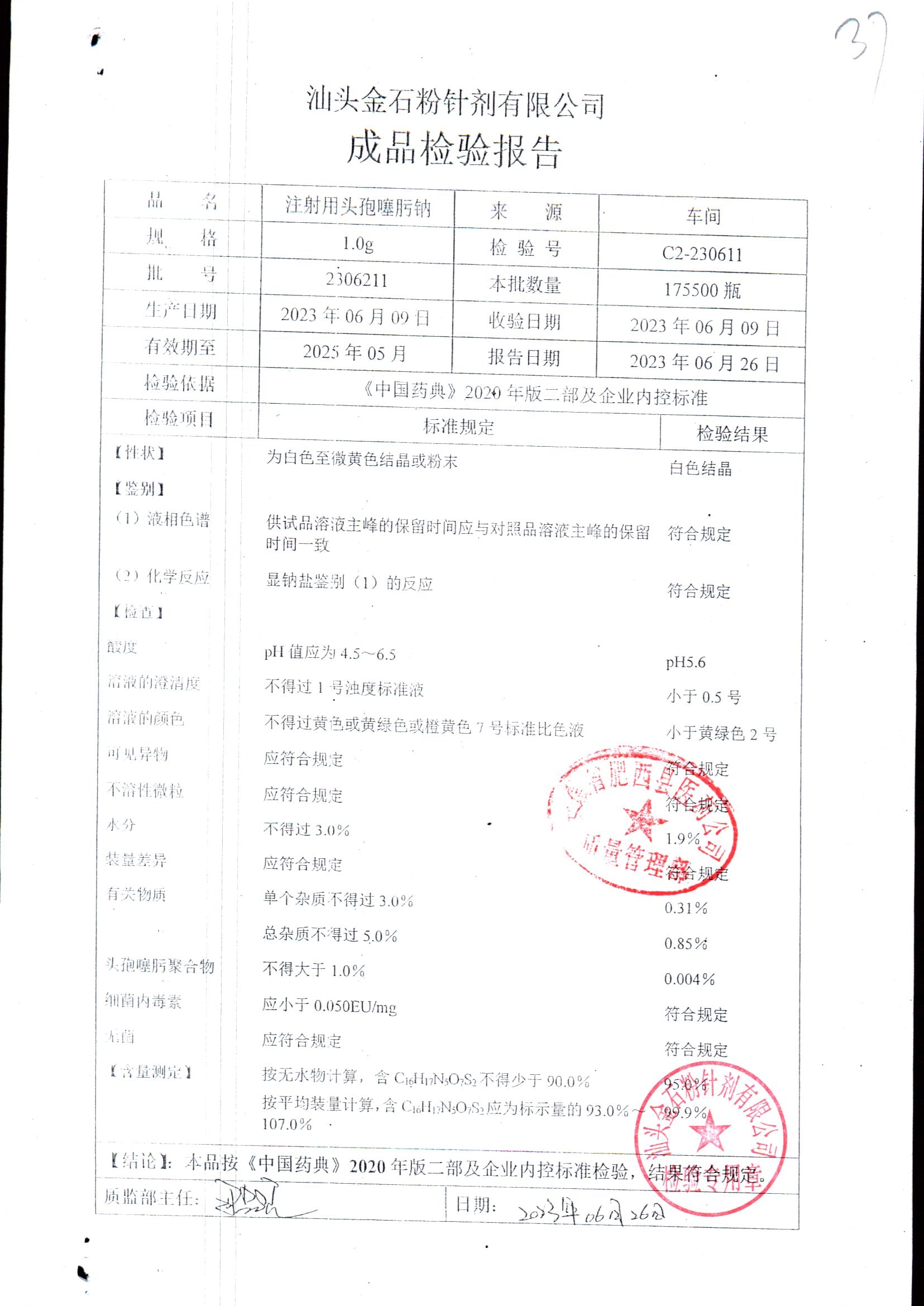注射用头孢噻肟钠 | 1.0g*10瓶 | 2306211 | 查看详情 |