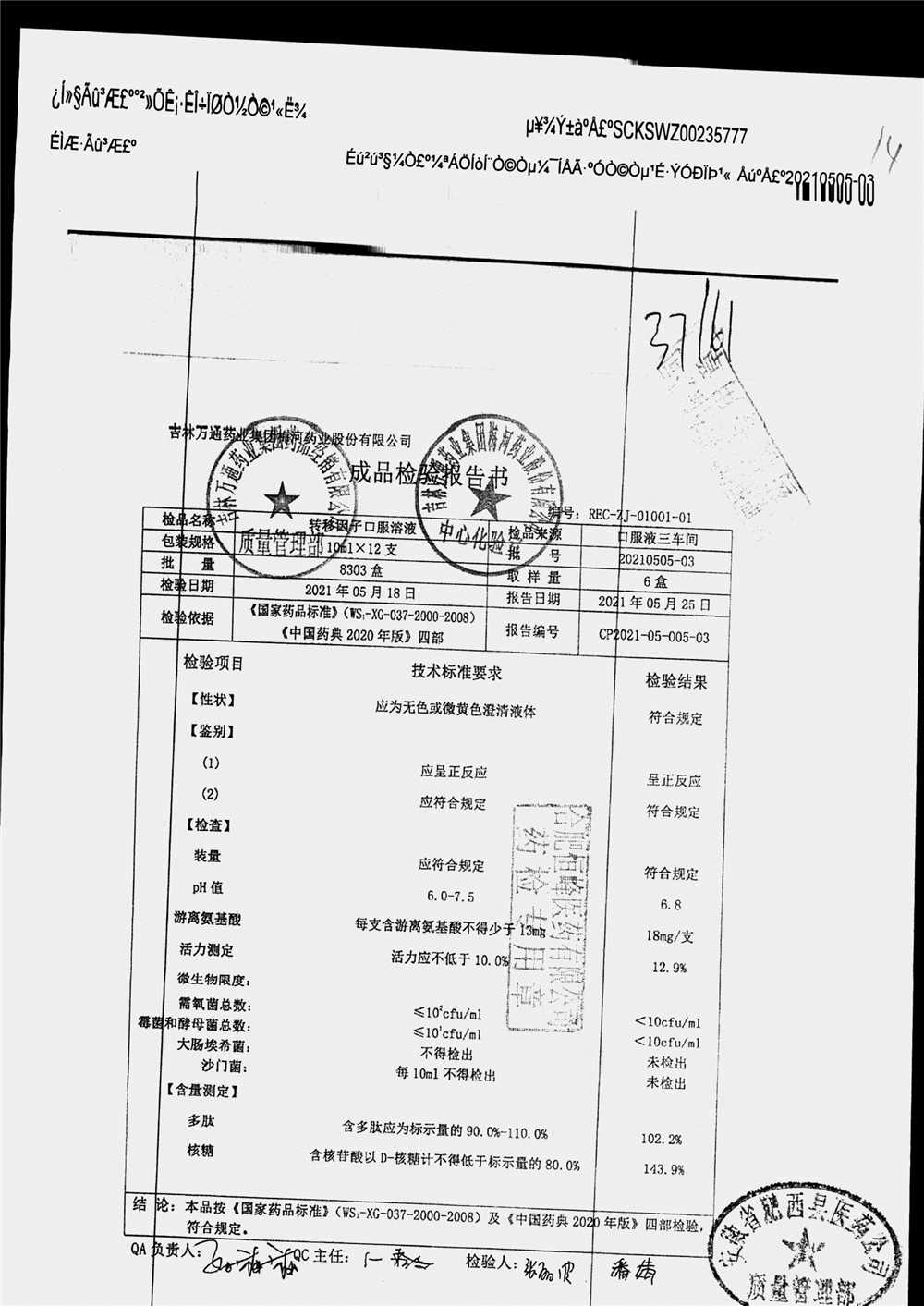 转移因子口服溶液 | 10ml:10mg(多肽):300μg(核糖)*12支 | 20210505-03 | 查看详情 |