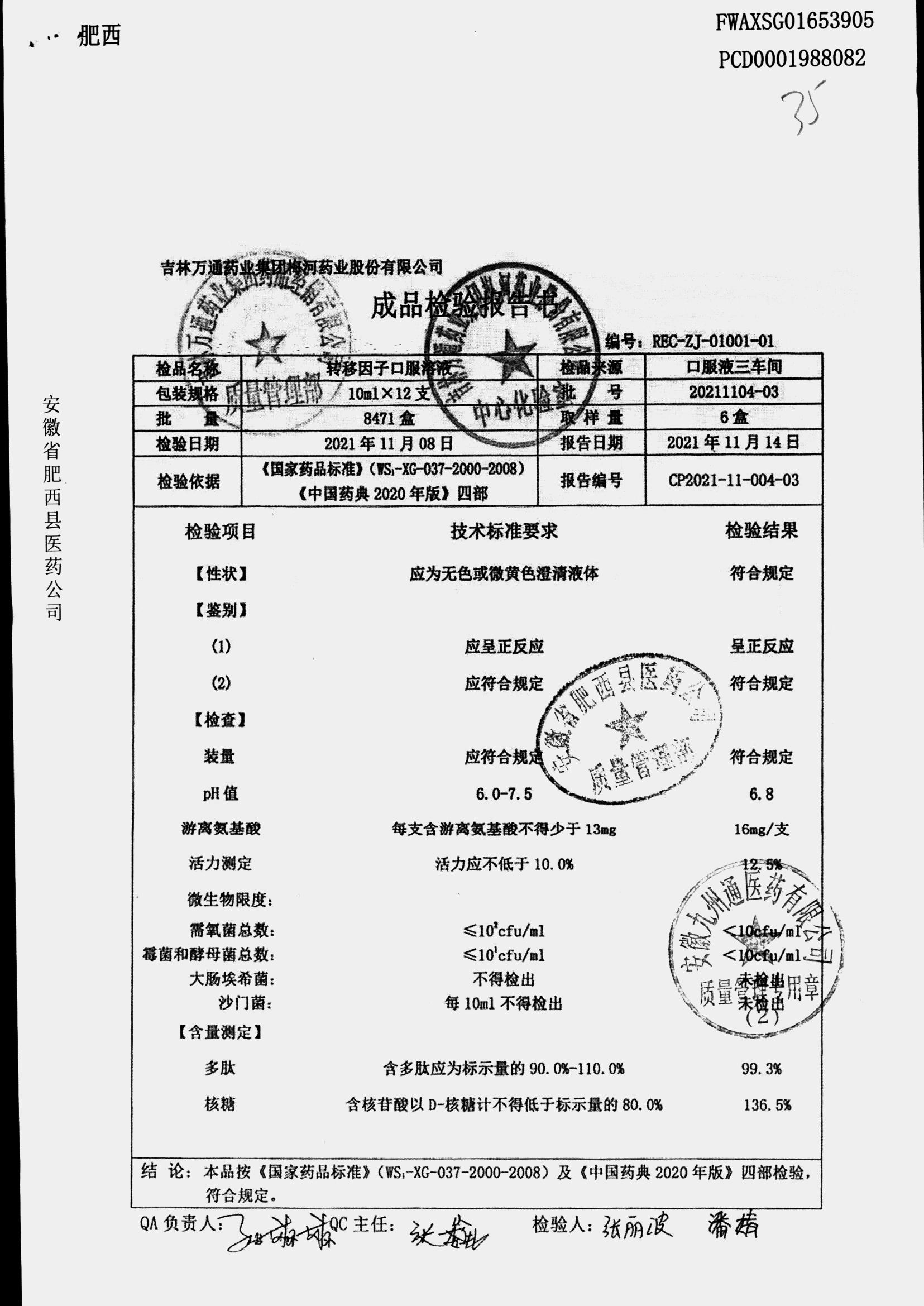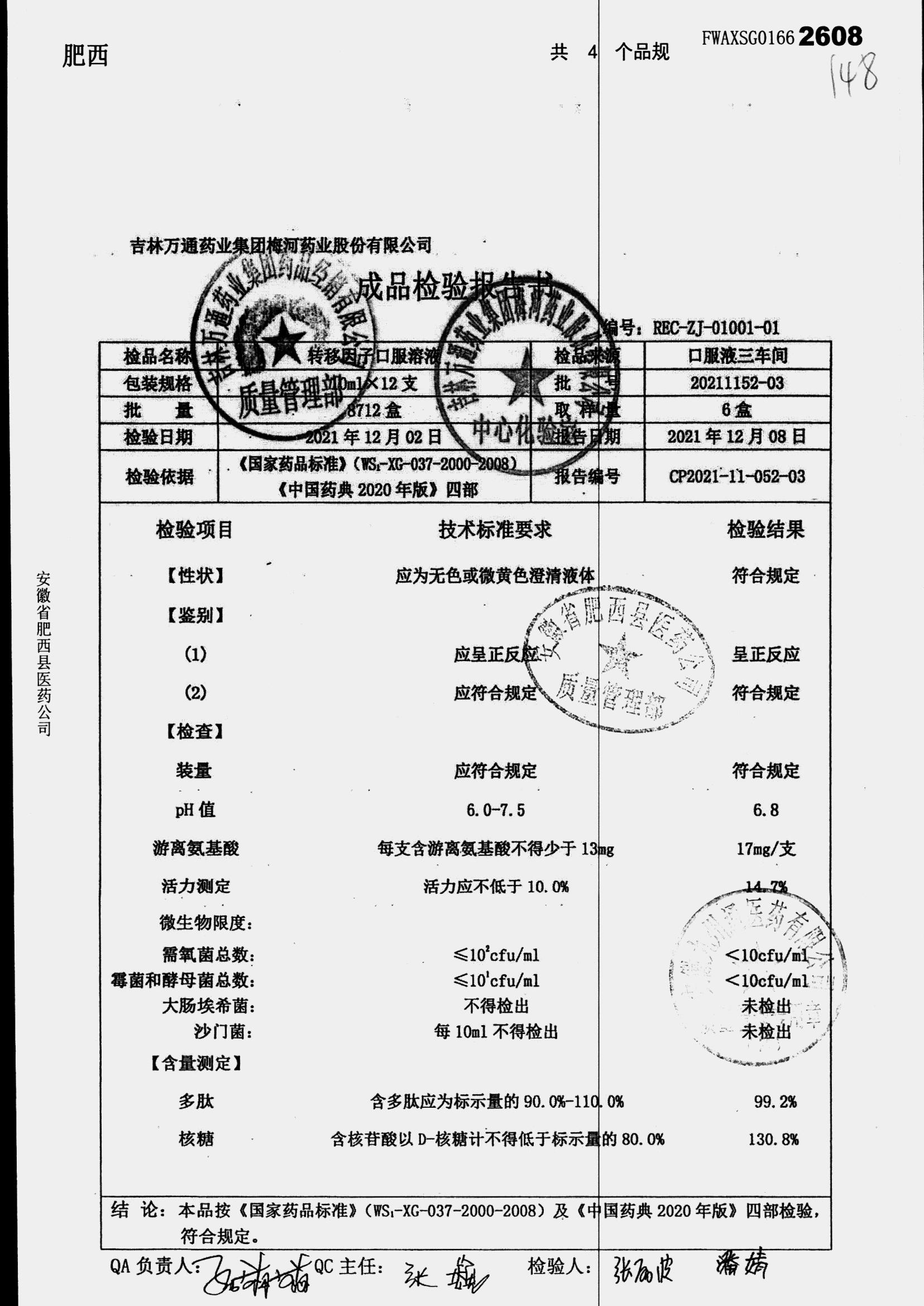 转移因子口服溶液 | 10ml:10mg(多肽):300μg(核糖)*12支 | 20211201-03 | 查看详情 |