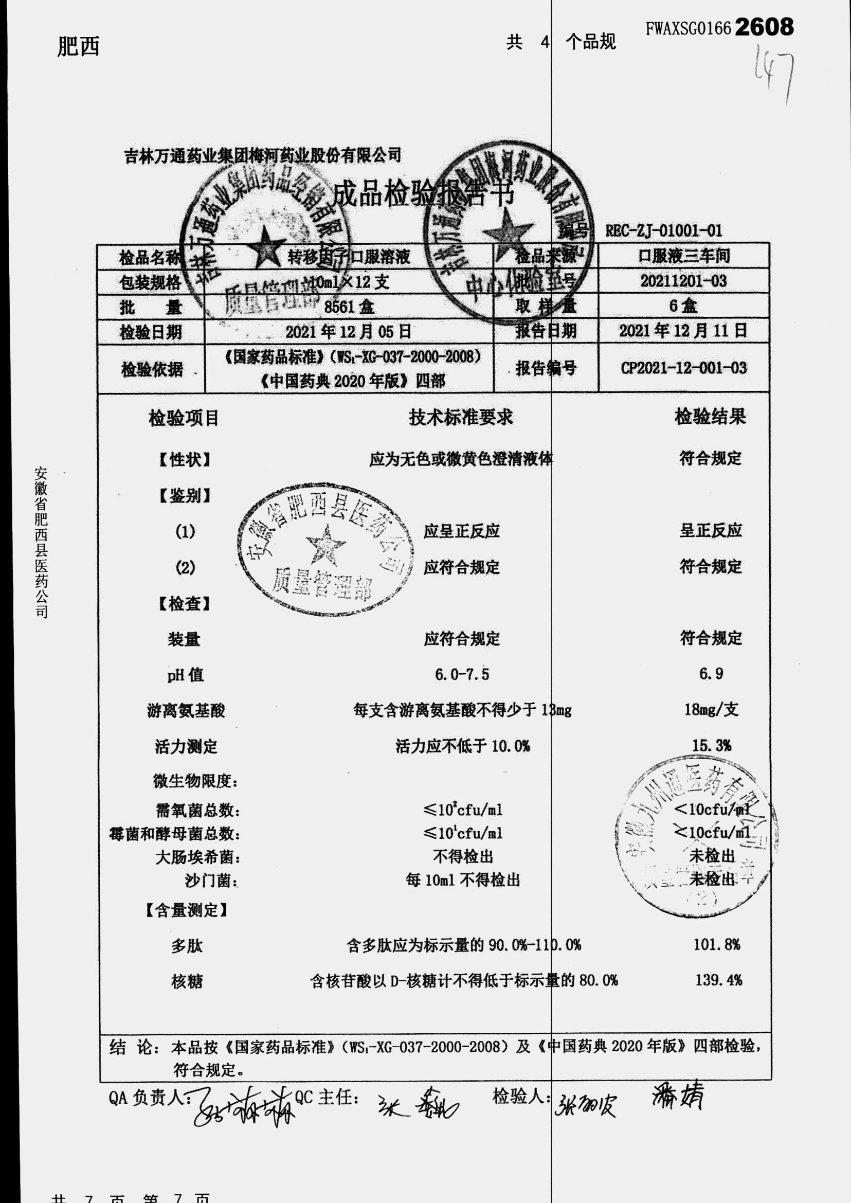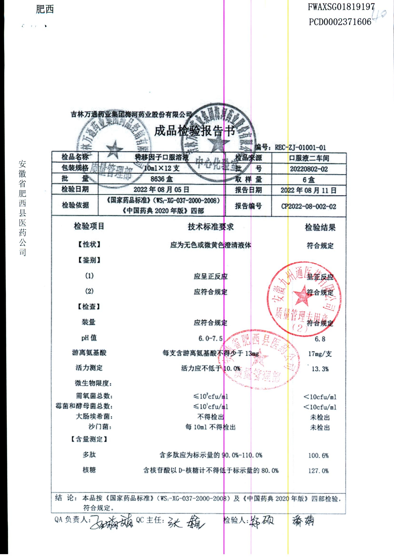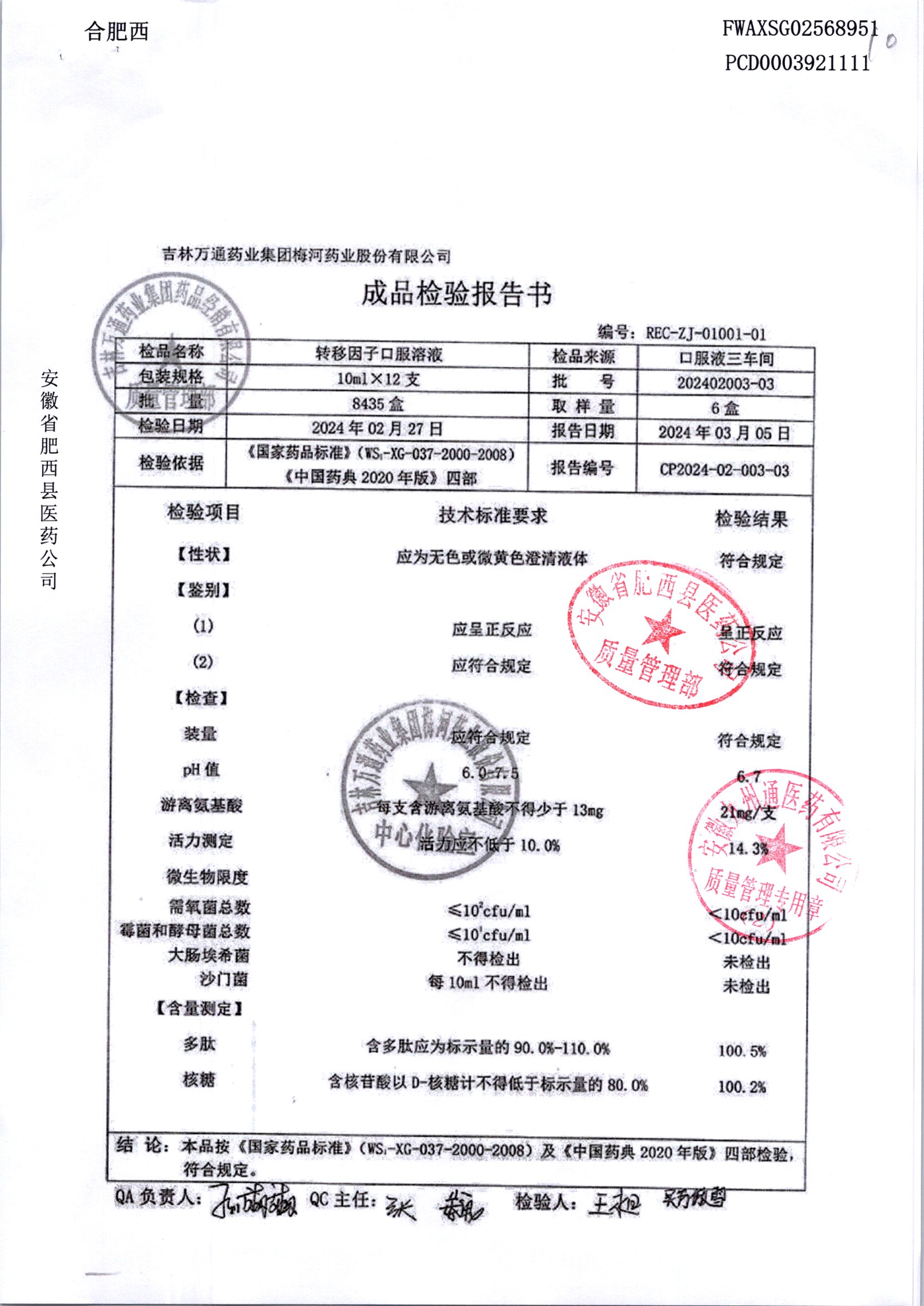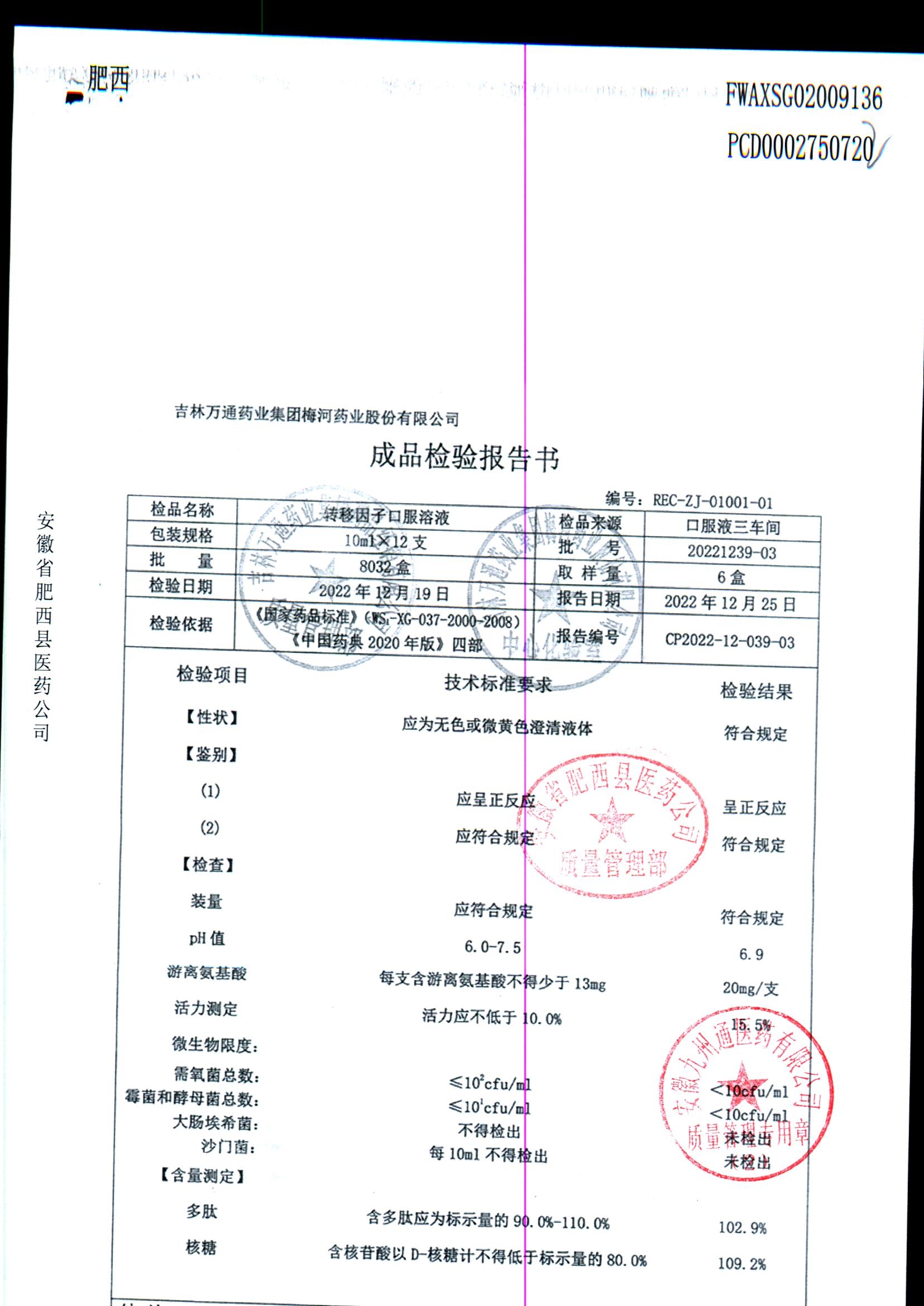 转移因子口服溶液 | 10ml:10mg(多肽):300μg(核糖)*12支 | 202402003-03 | 查看详情 |