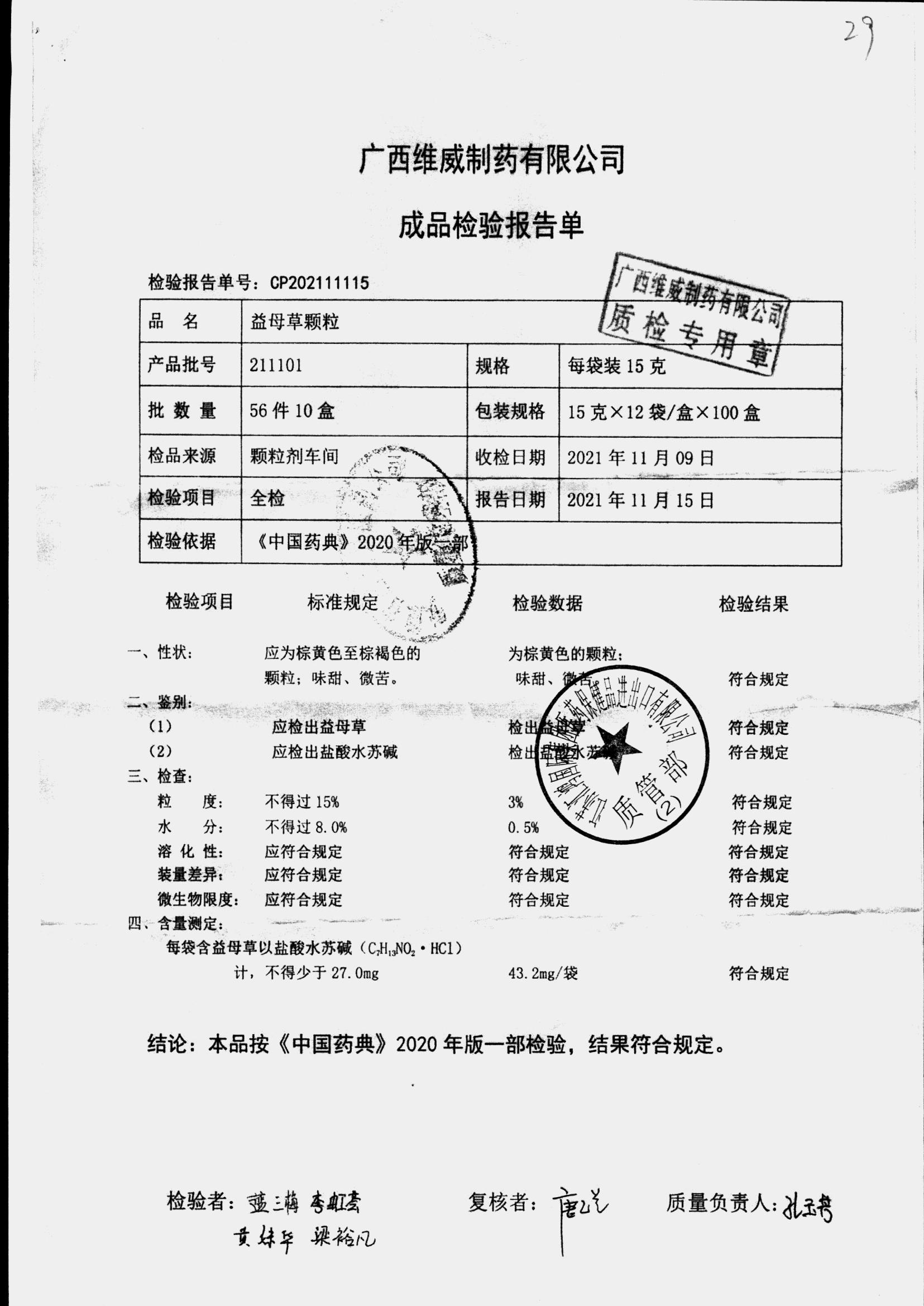 药检报告