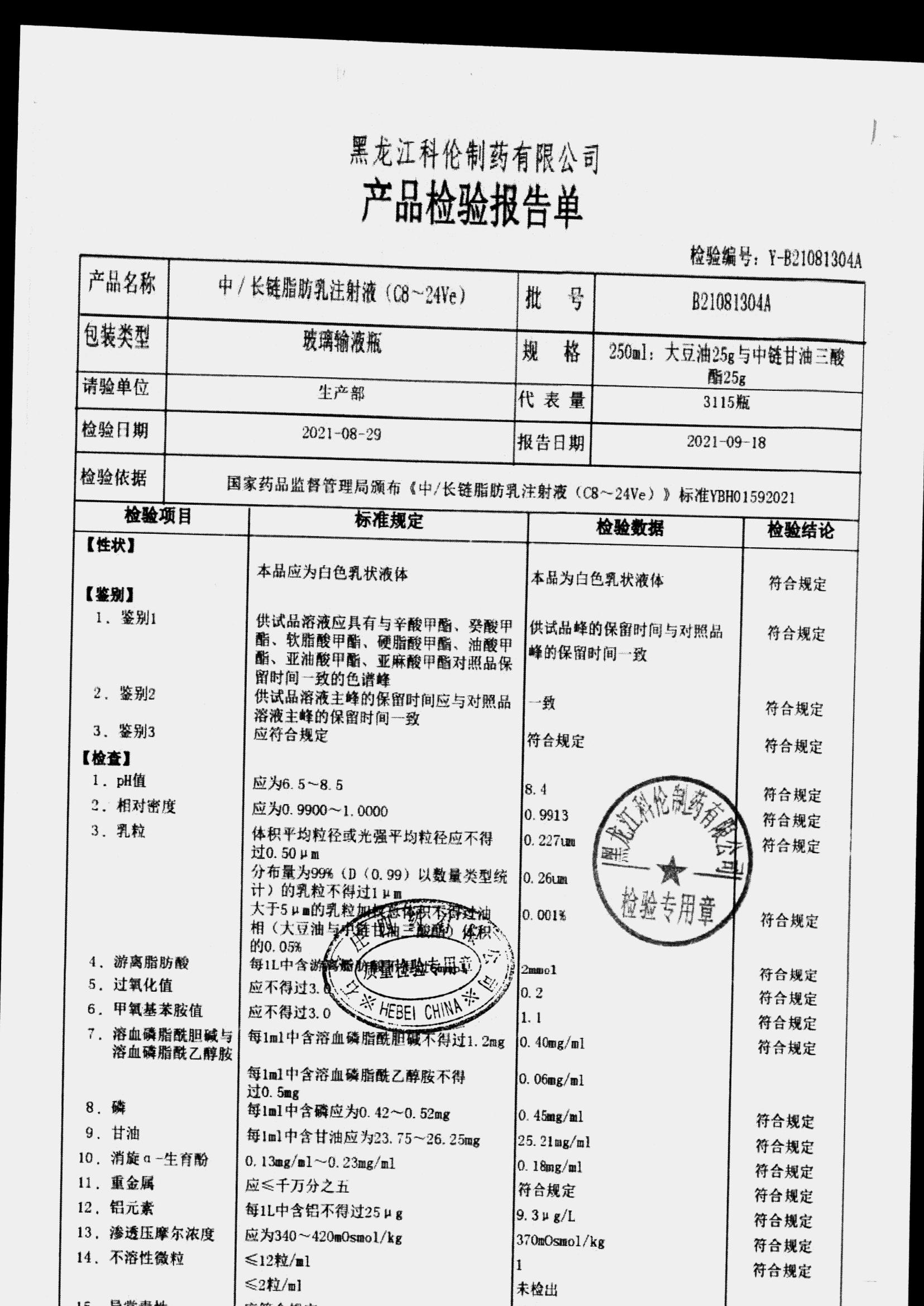 长链脂肪乳注射液 | 250g*40 | B210881304A | 查看详情 |