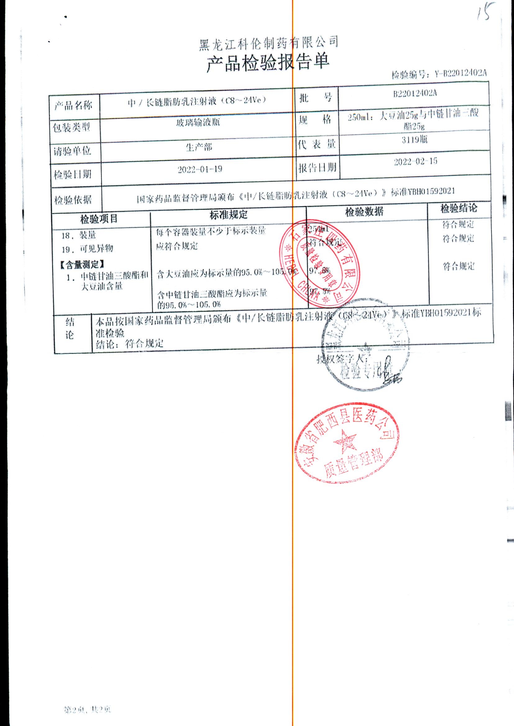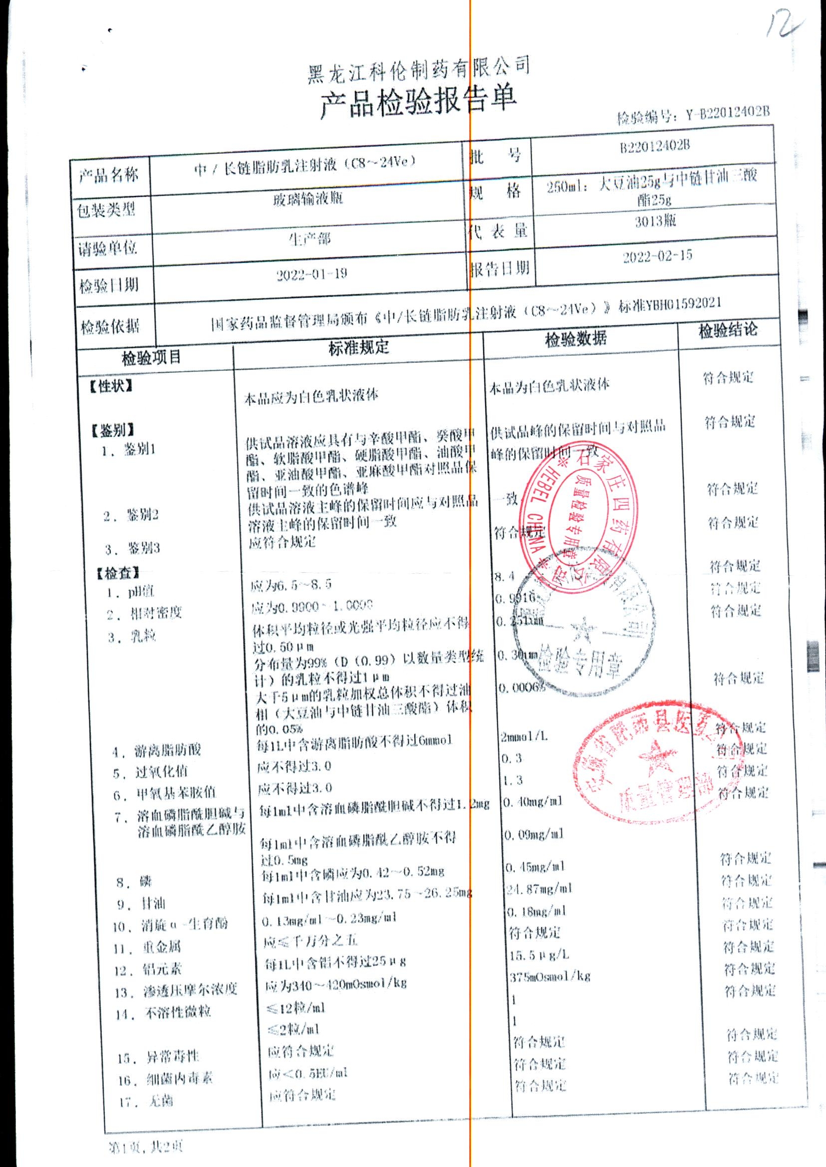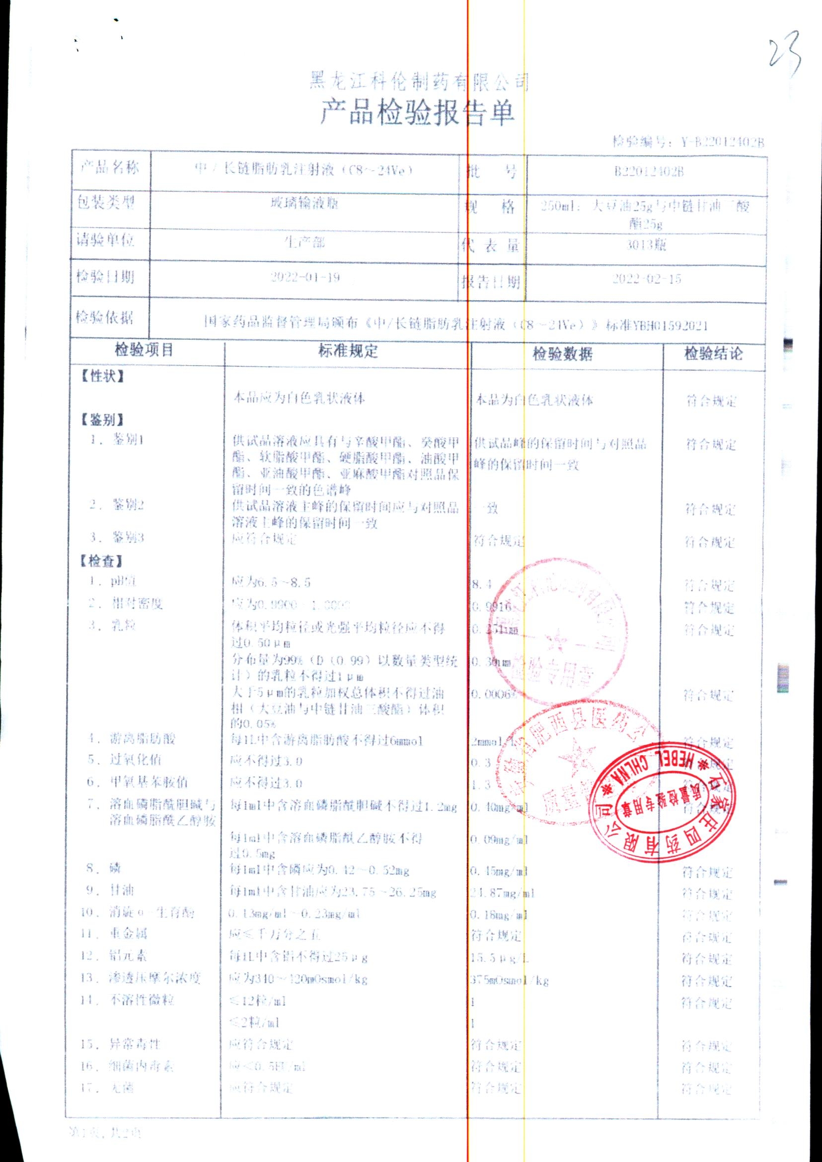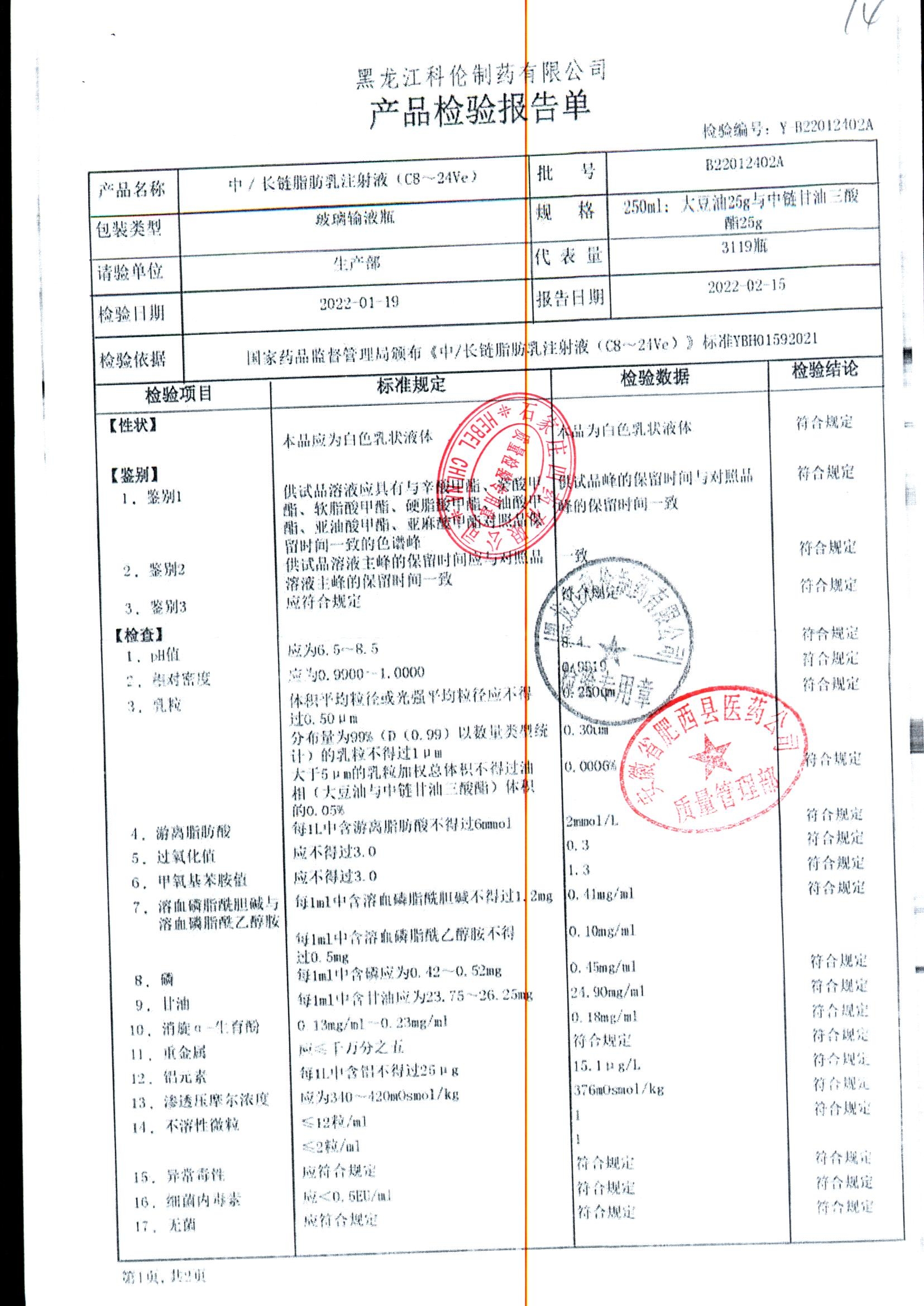 长链脂肪乳注射液 | 250g*40 | B220122402B/2 | 查看详情 |