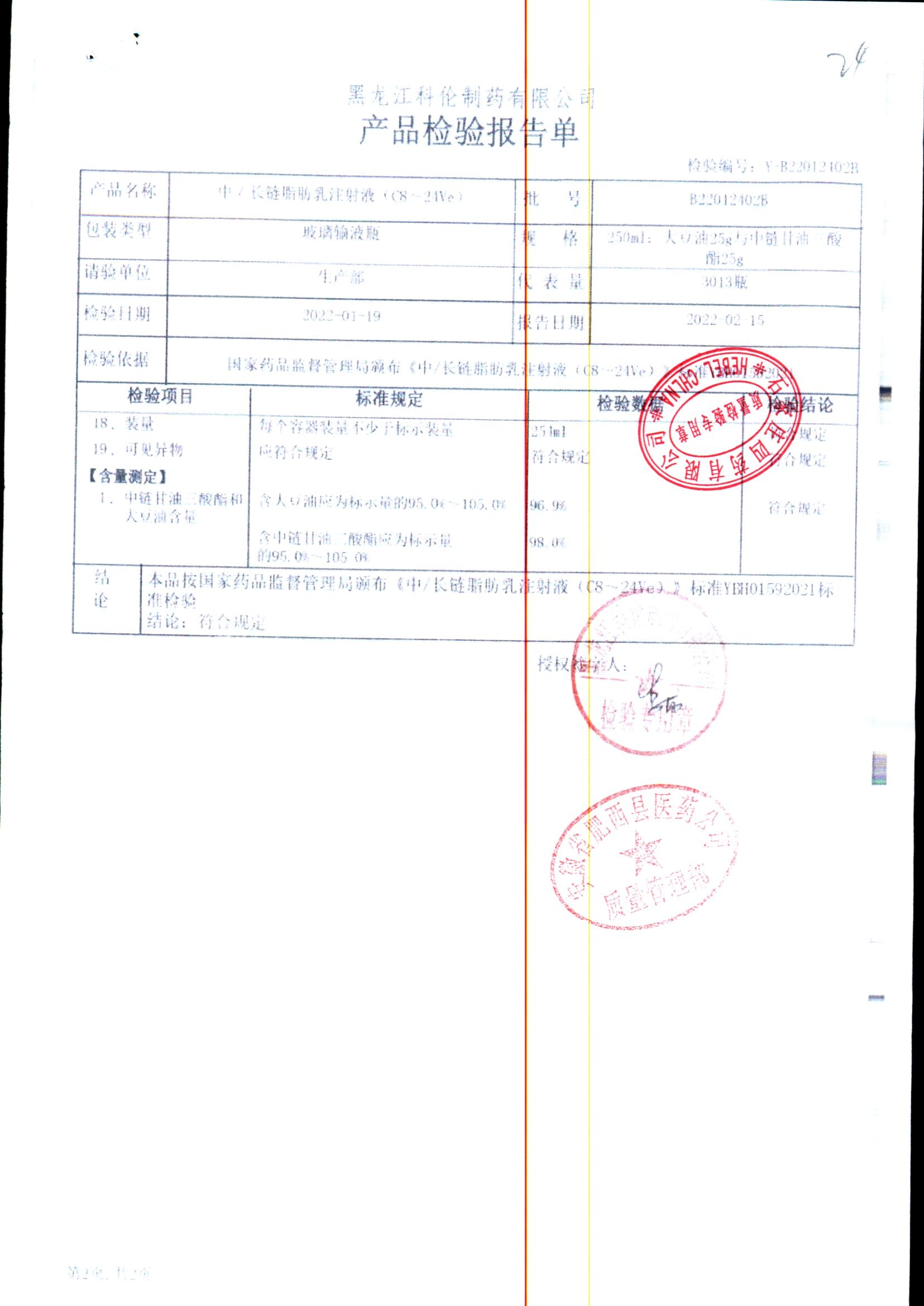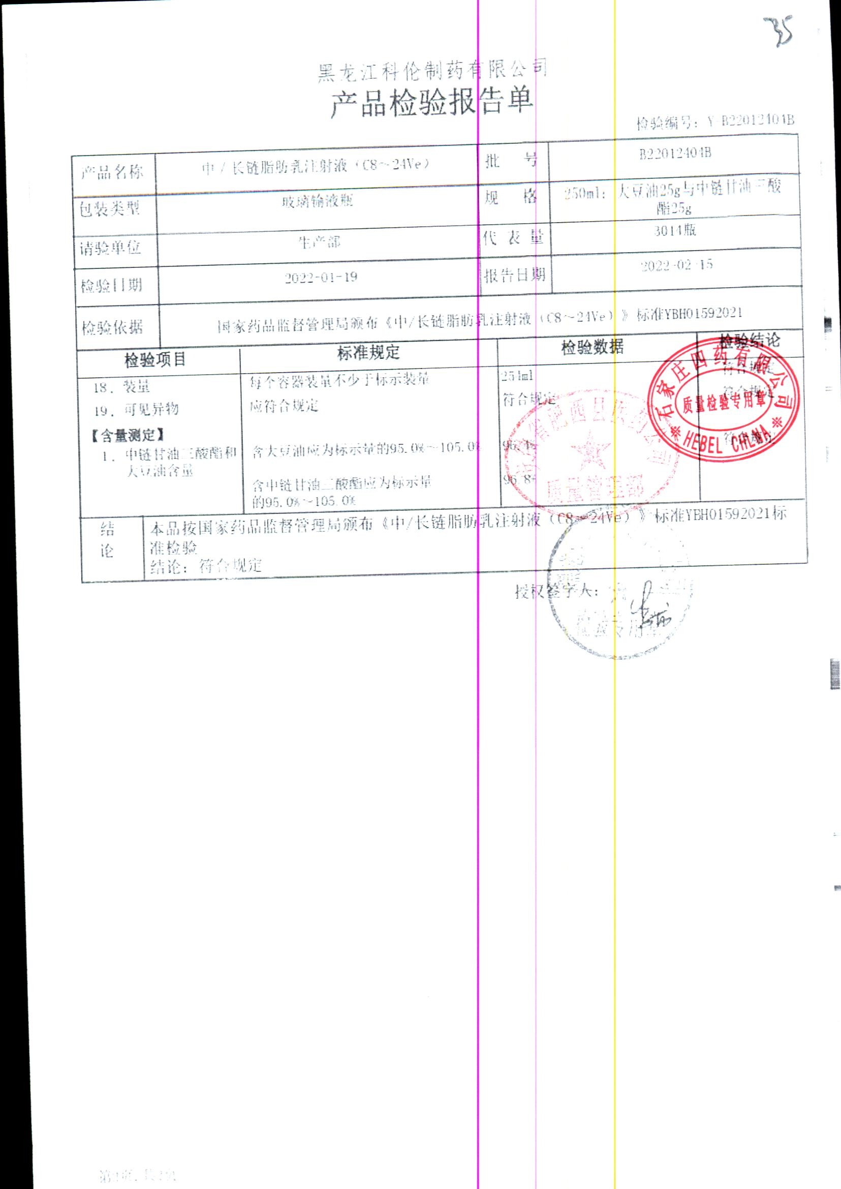 长链脂肪乳注射液 | 250g*40 | B22012404B/1 | 查看详情 |