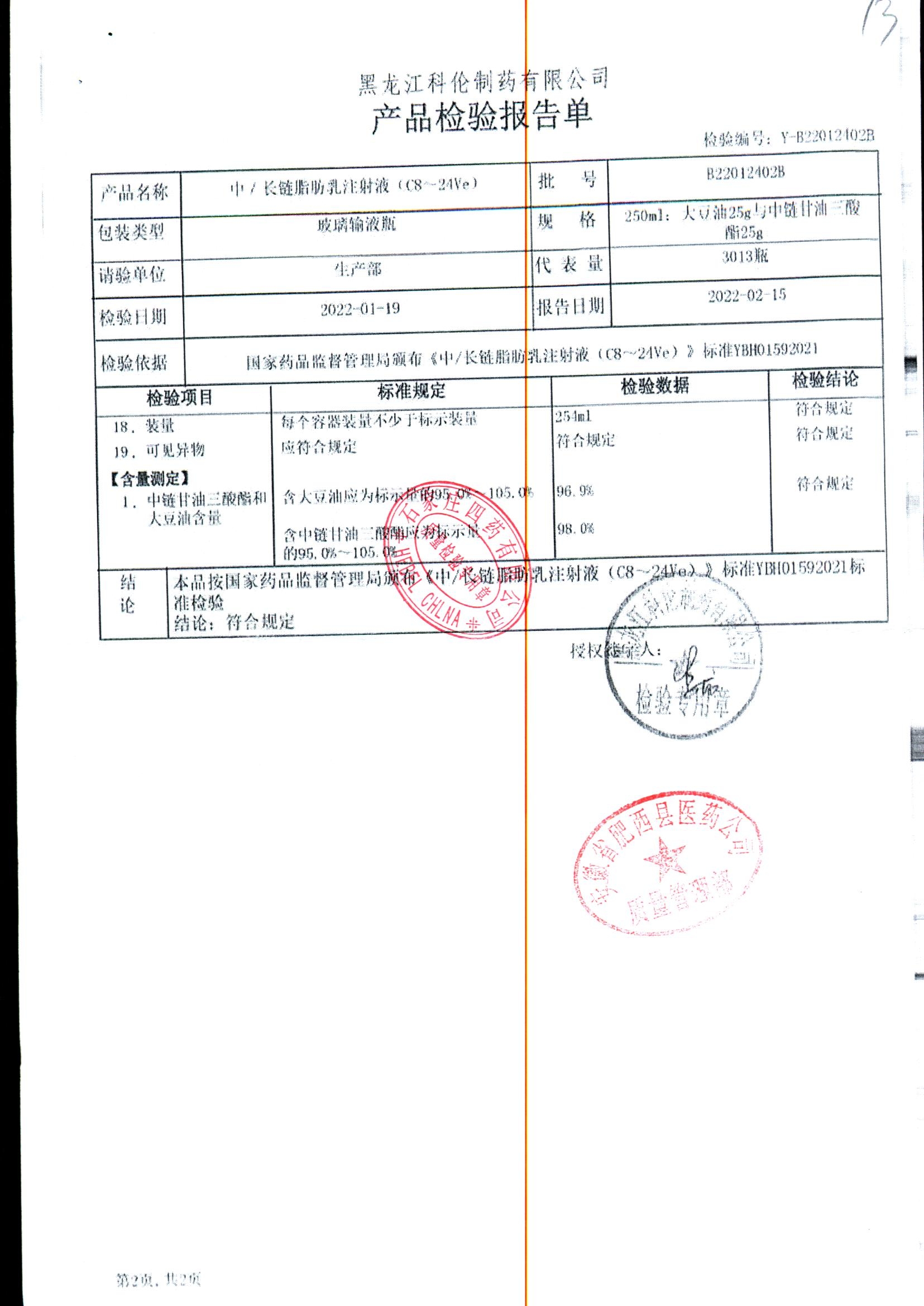 长链脂肪乳注射液 | 250g*40 | B220122402B/1 | 查看详情 |