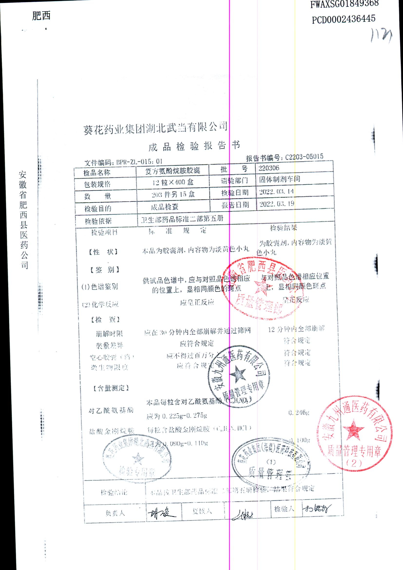 复方氨酚烷胺胶囊 | 12粒 | 220306 | 查看详情 |