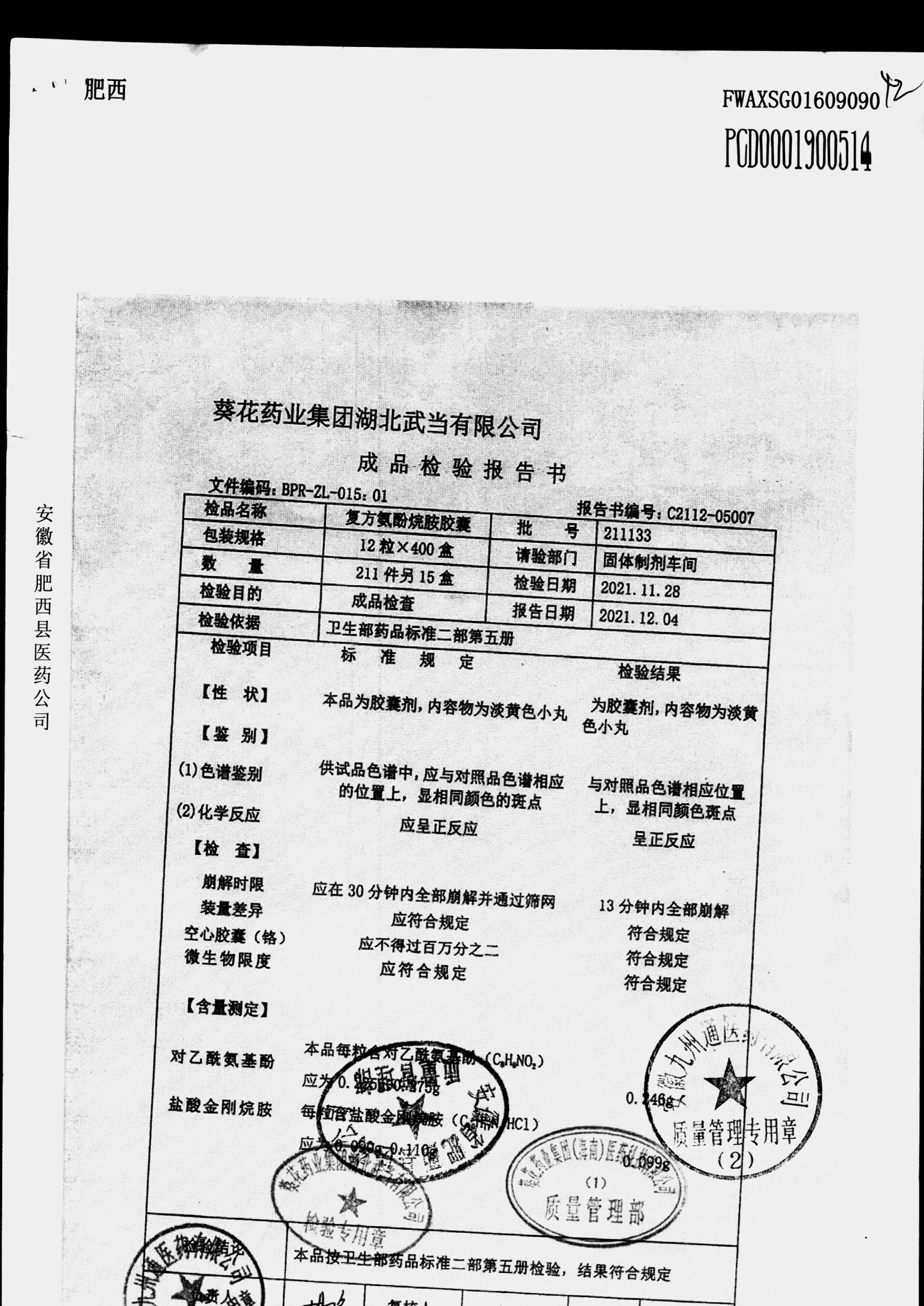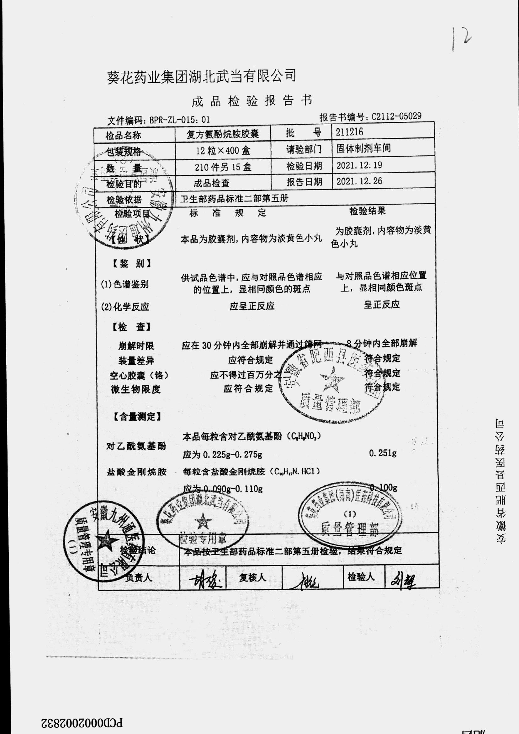 复方氨酚烷胺胶囊 | 12粒 | 211216 | 查看详情 |