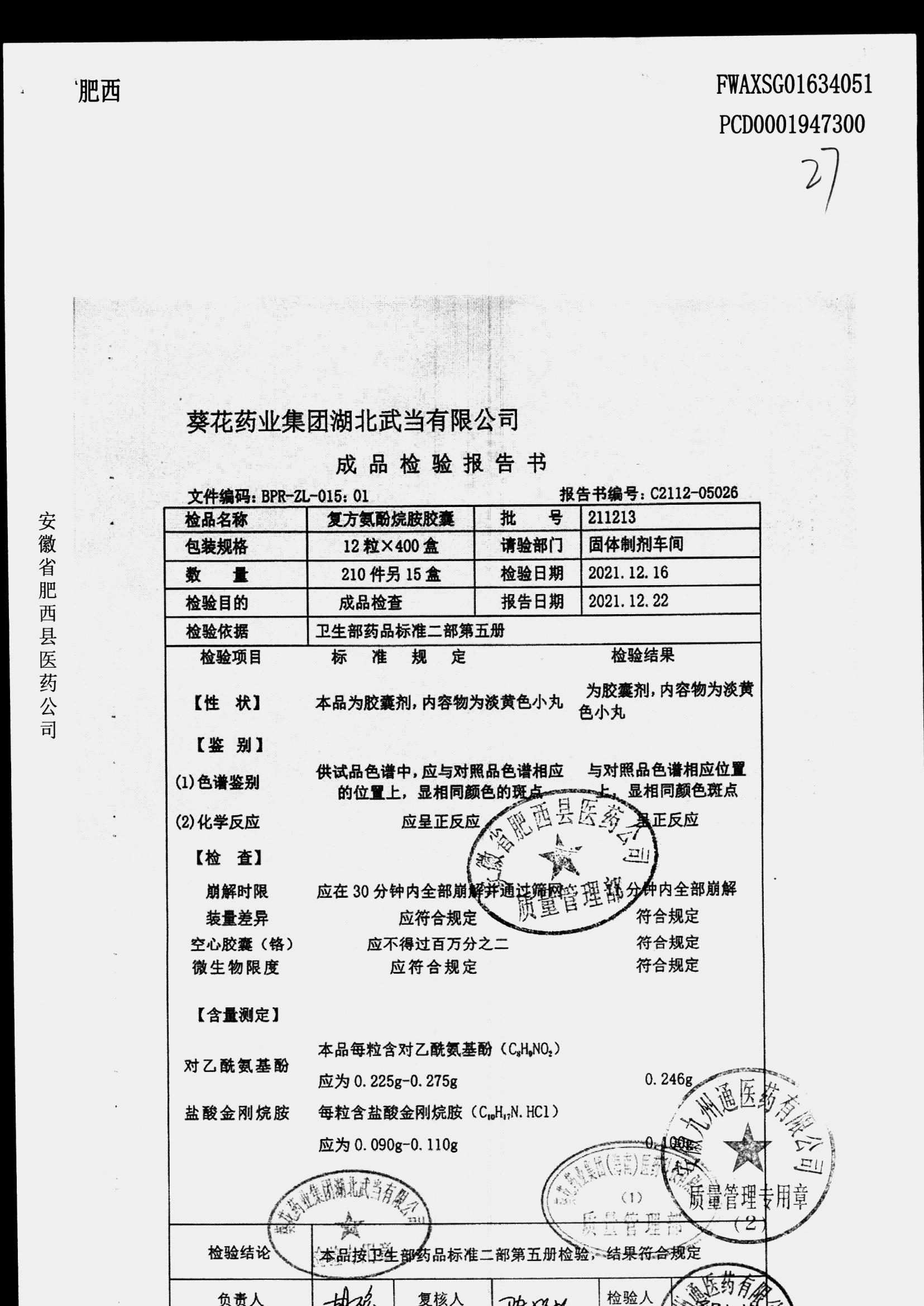 复方氨酚烷胺胶囊 | 12粒 | 211213 | 查看详情 |