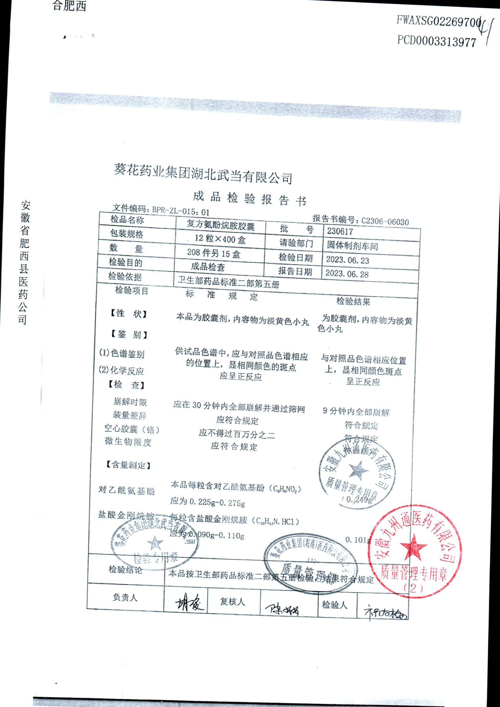 复方氨酚烷胺胶囊 | 12粒 | 230616 | 查看详情 |