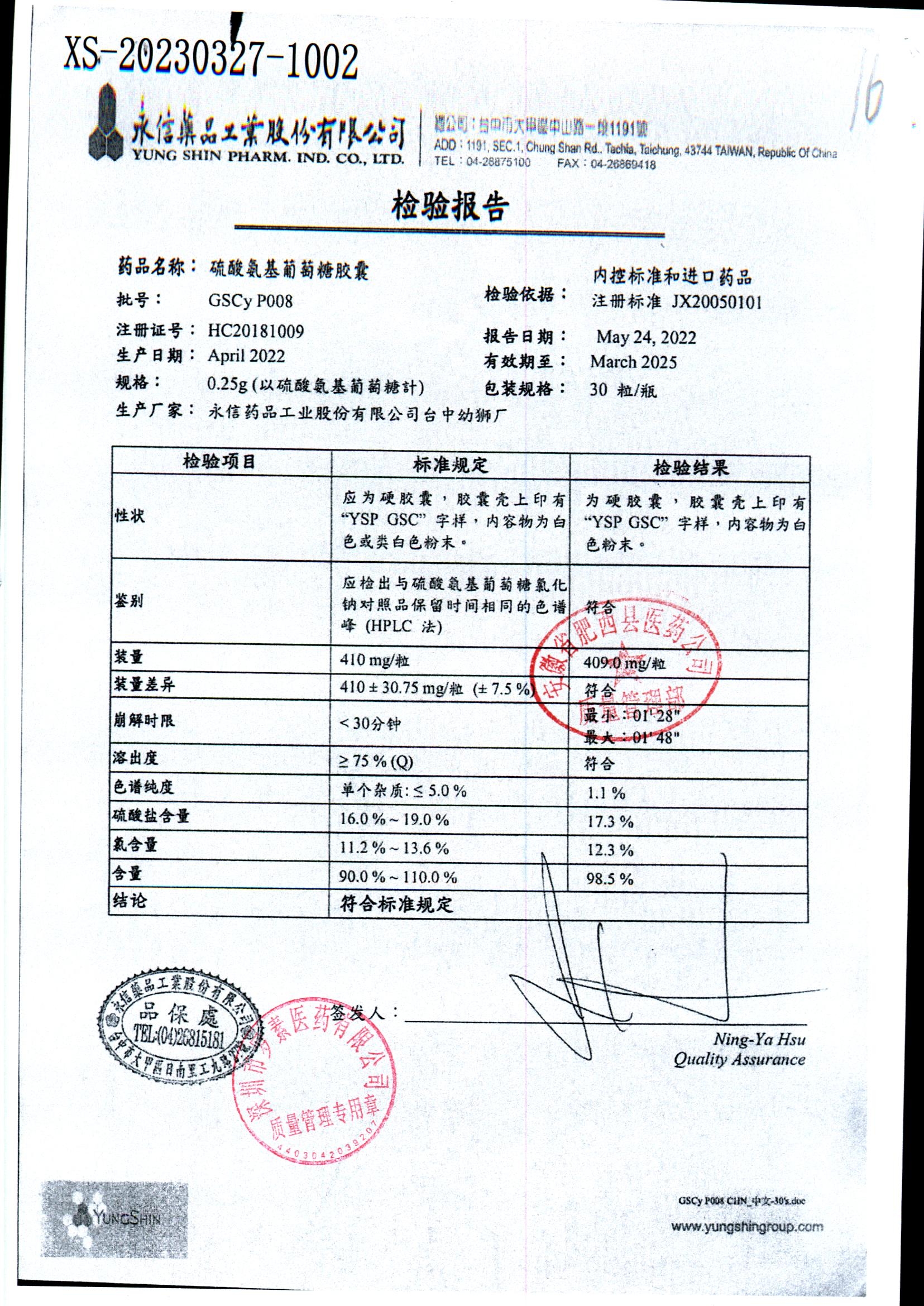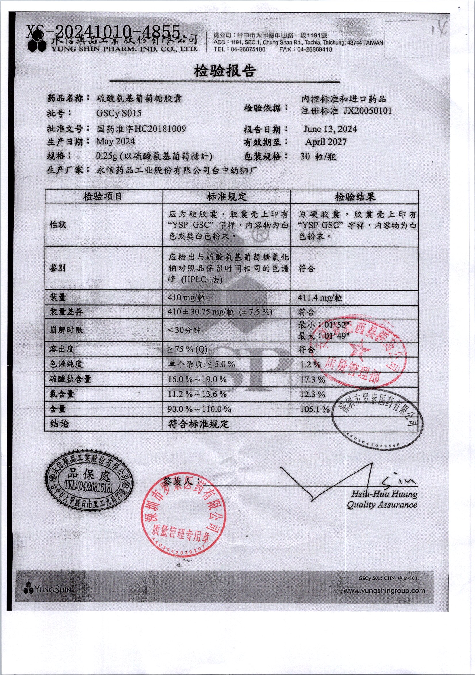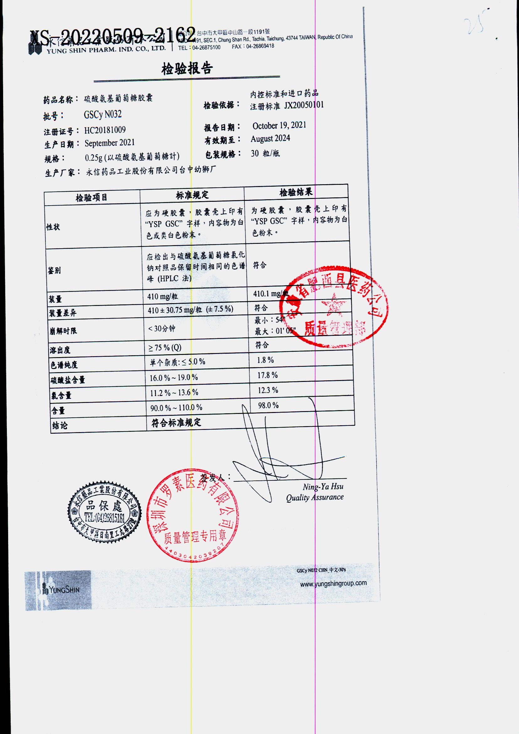 硫酸氨基葡萄糖胶囊 | 0.25g | GSCYN018-4 | 查看详情 |