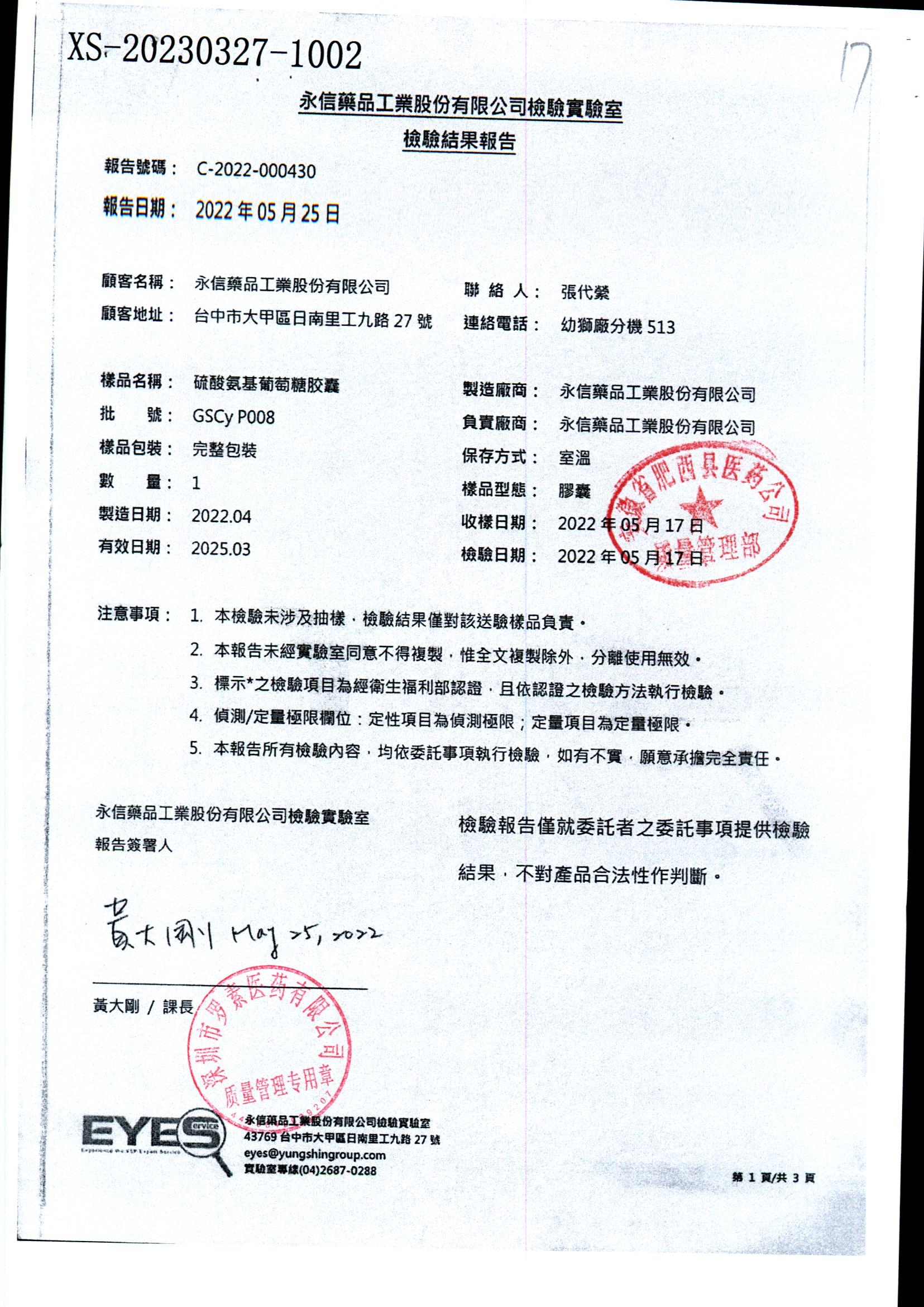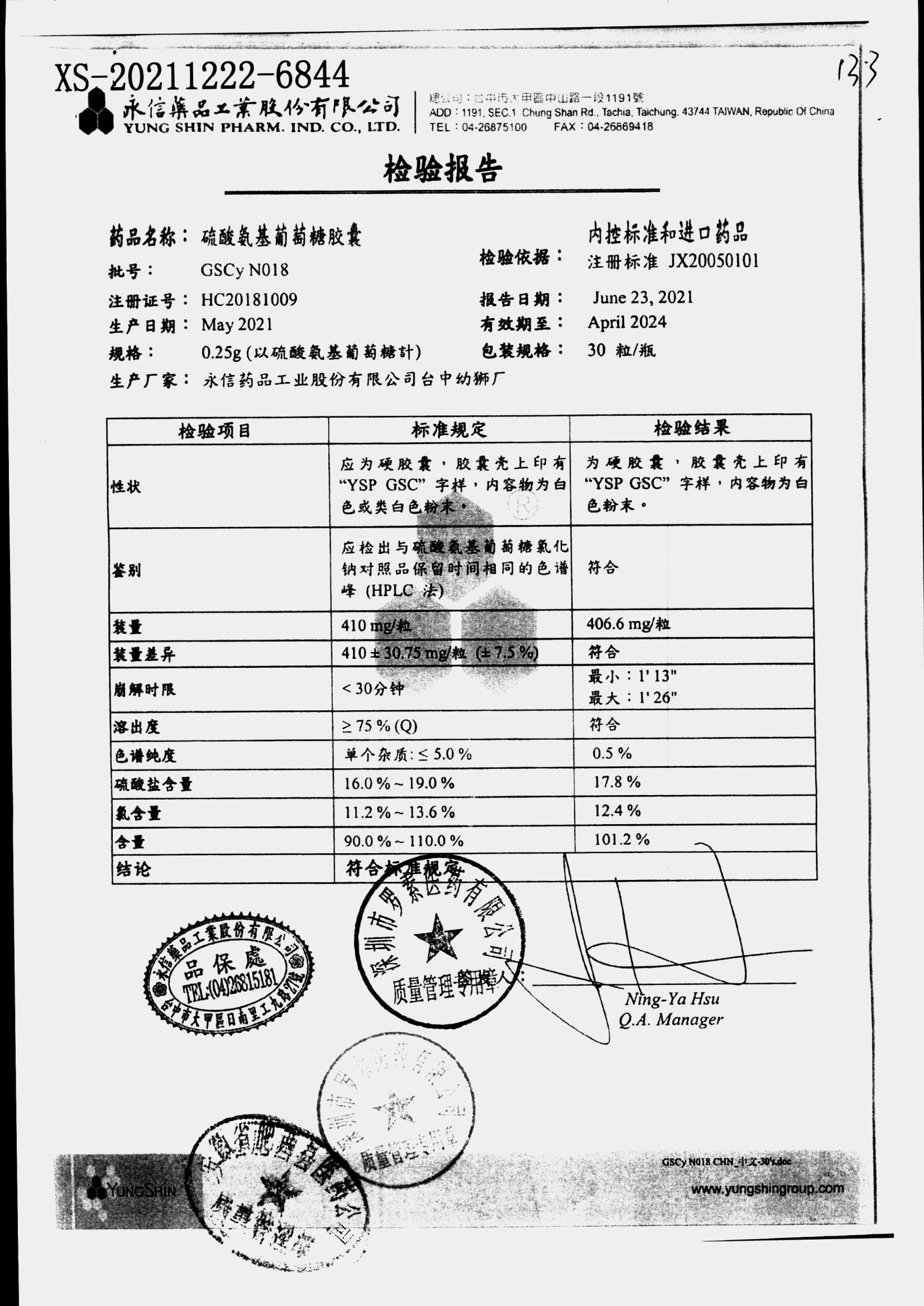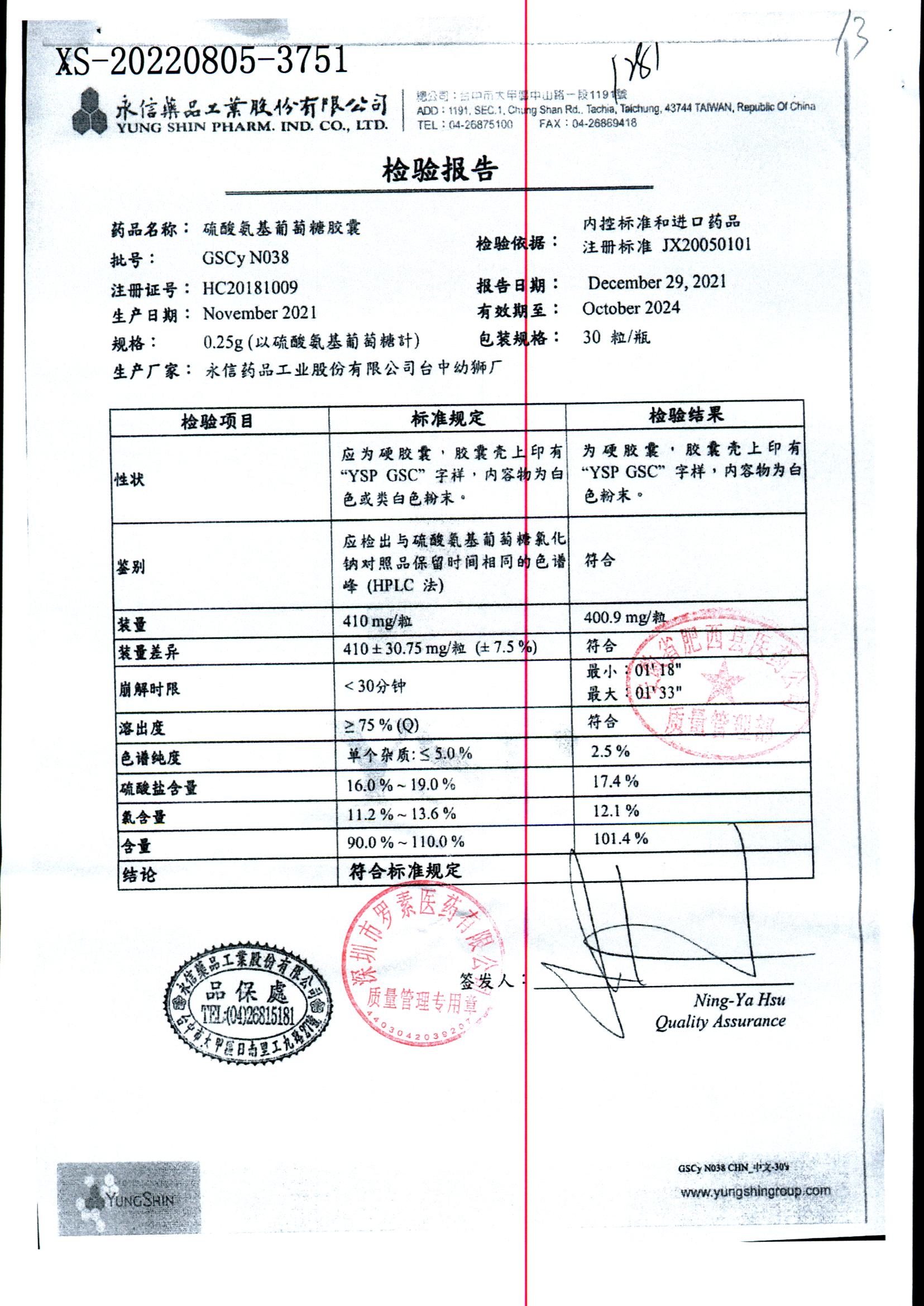 硫酸氨基葡萄糖胶囊 | 0.25g | GSCYN018-4 | 查看详情 |