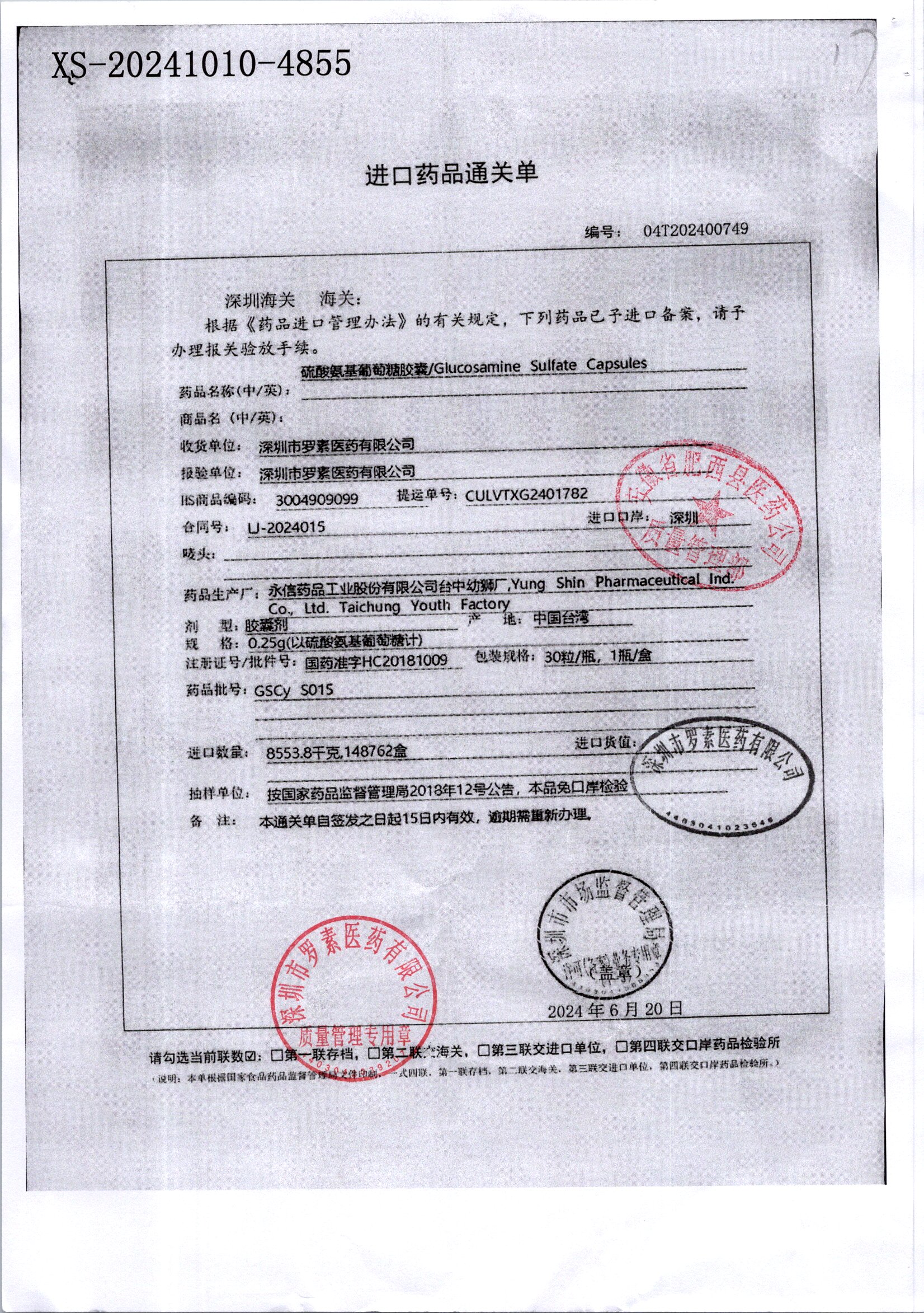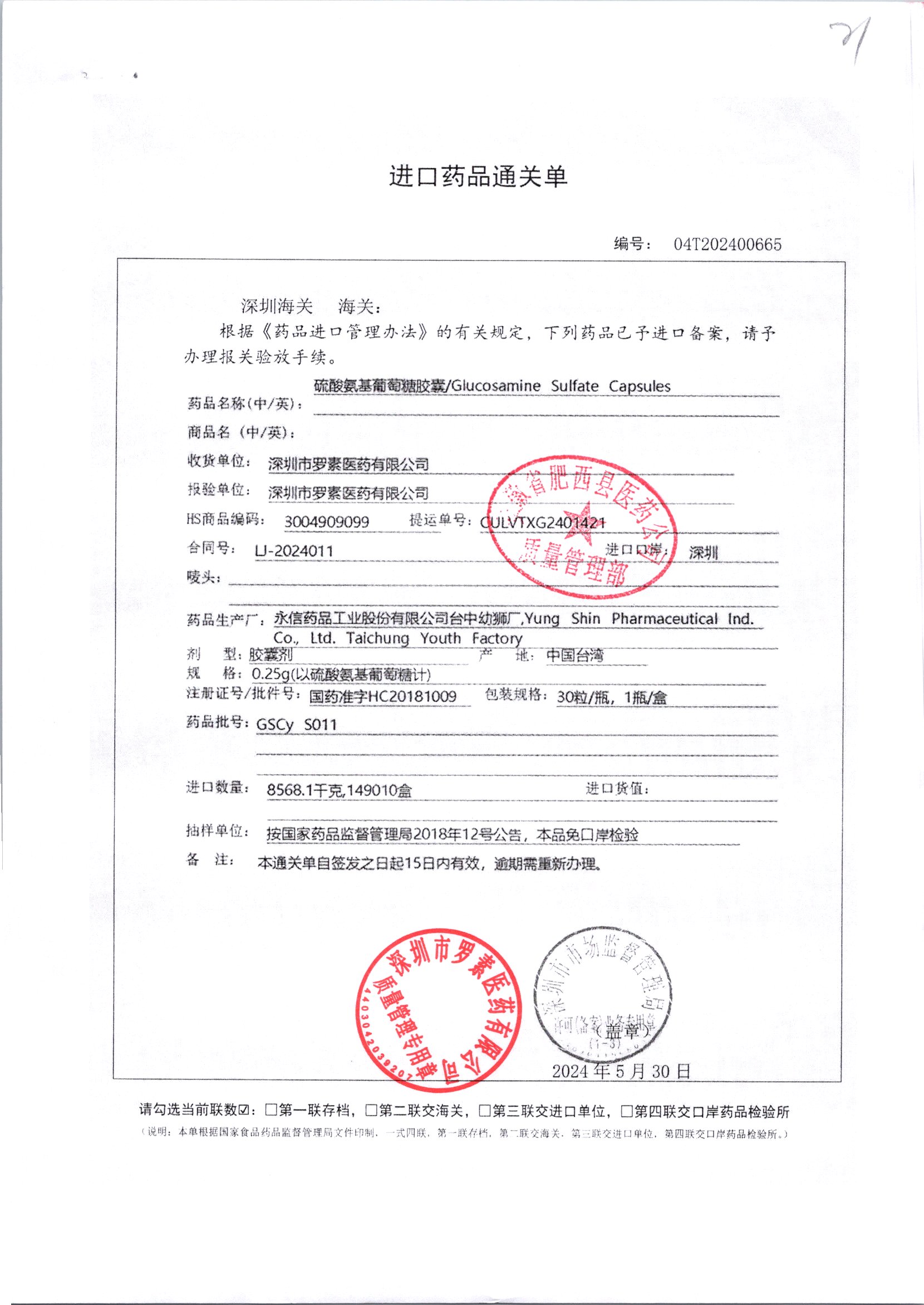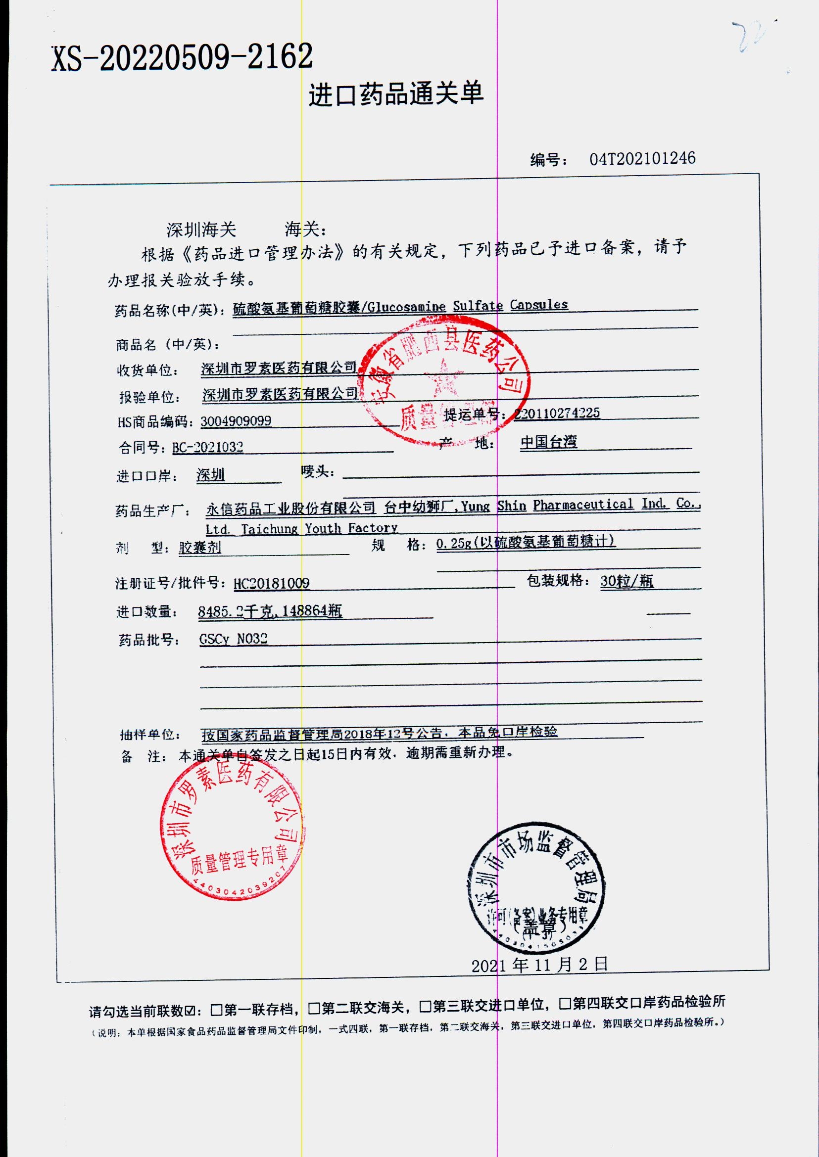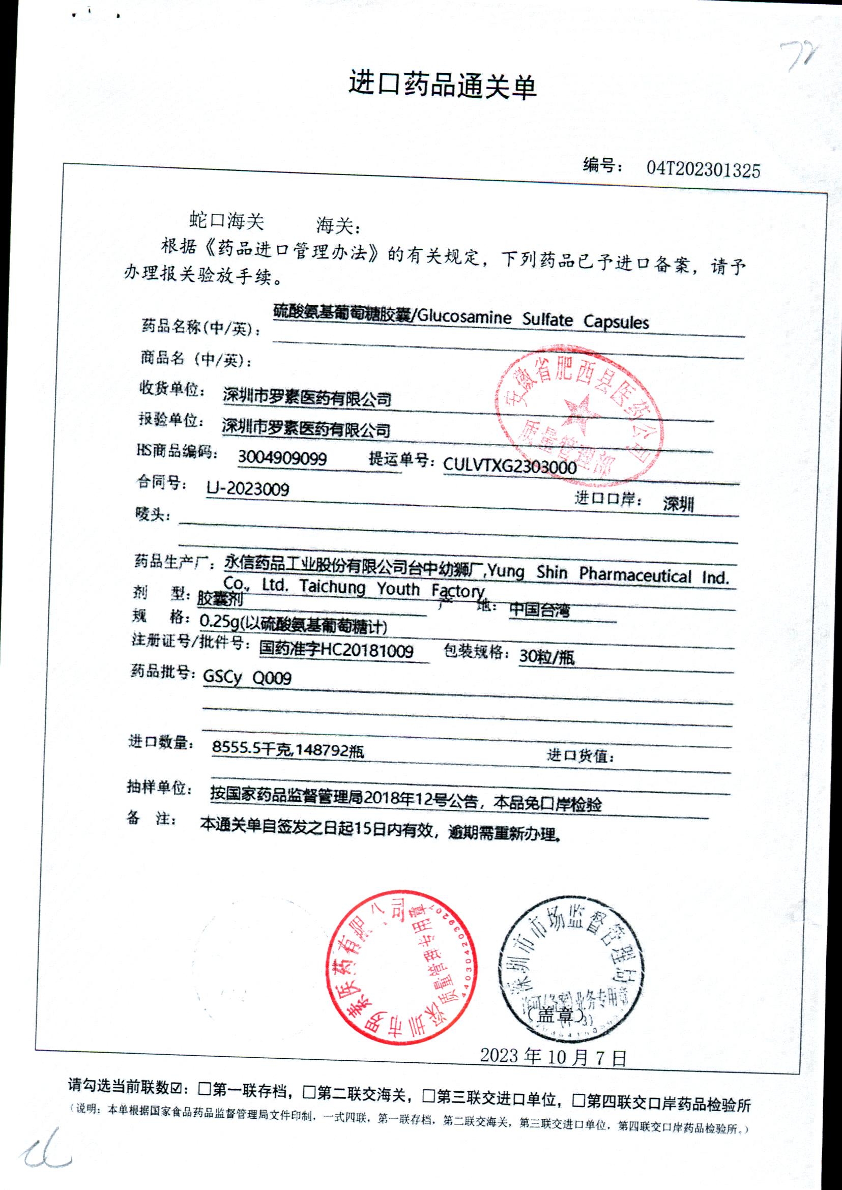 硫酸氨基葡萄糖胶囊 | 0.25g | GSCY Q011/4 | 查看详情 |