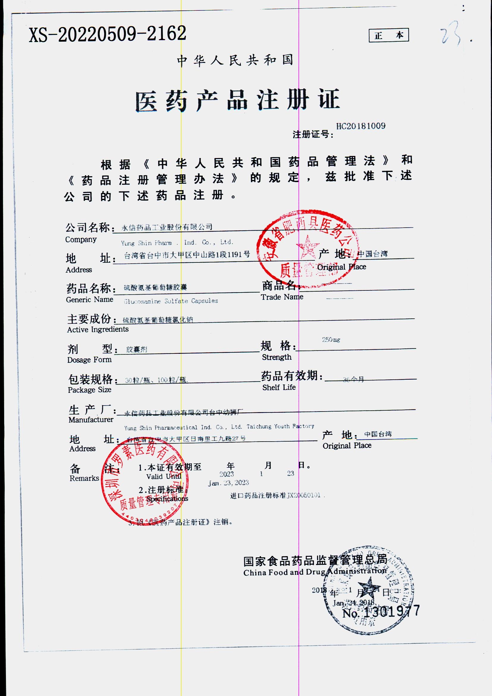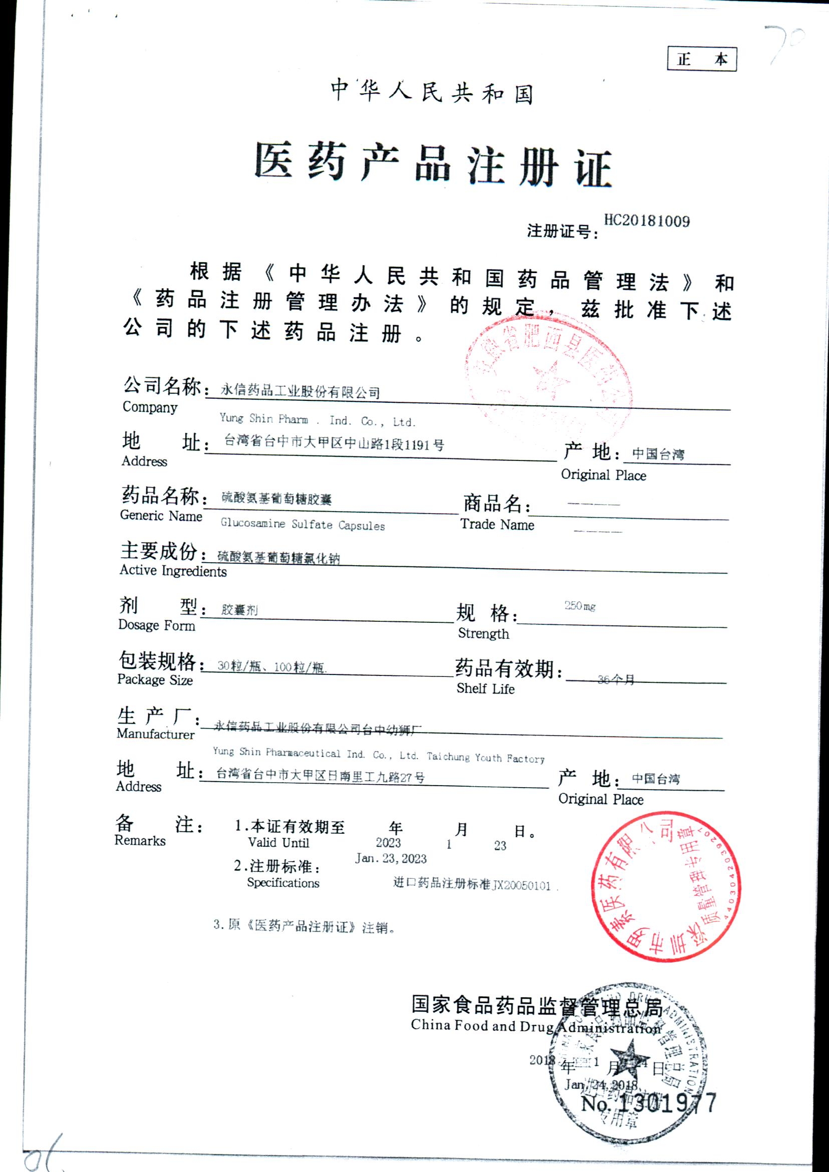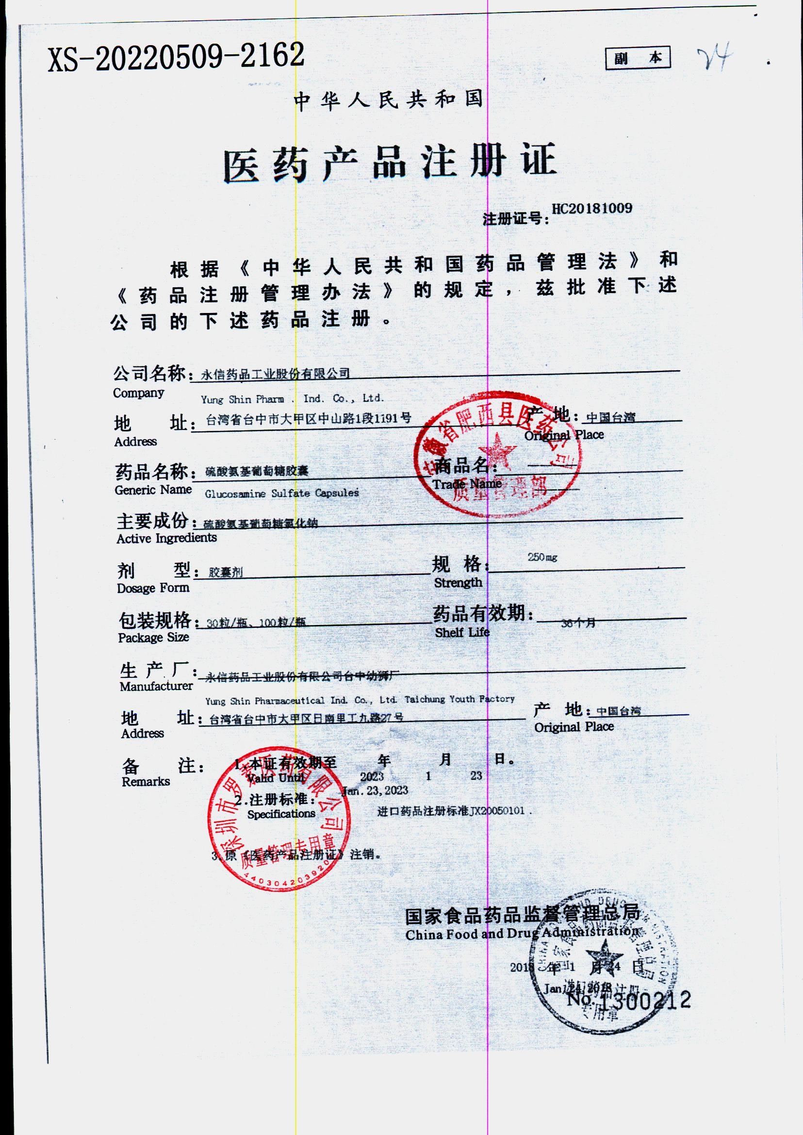 硫酸氨基葡萄糖胶囊 | 0.25g | GSCY Q009/3 | 查看详情 |