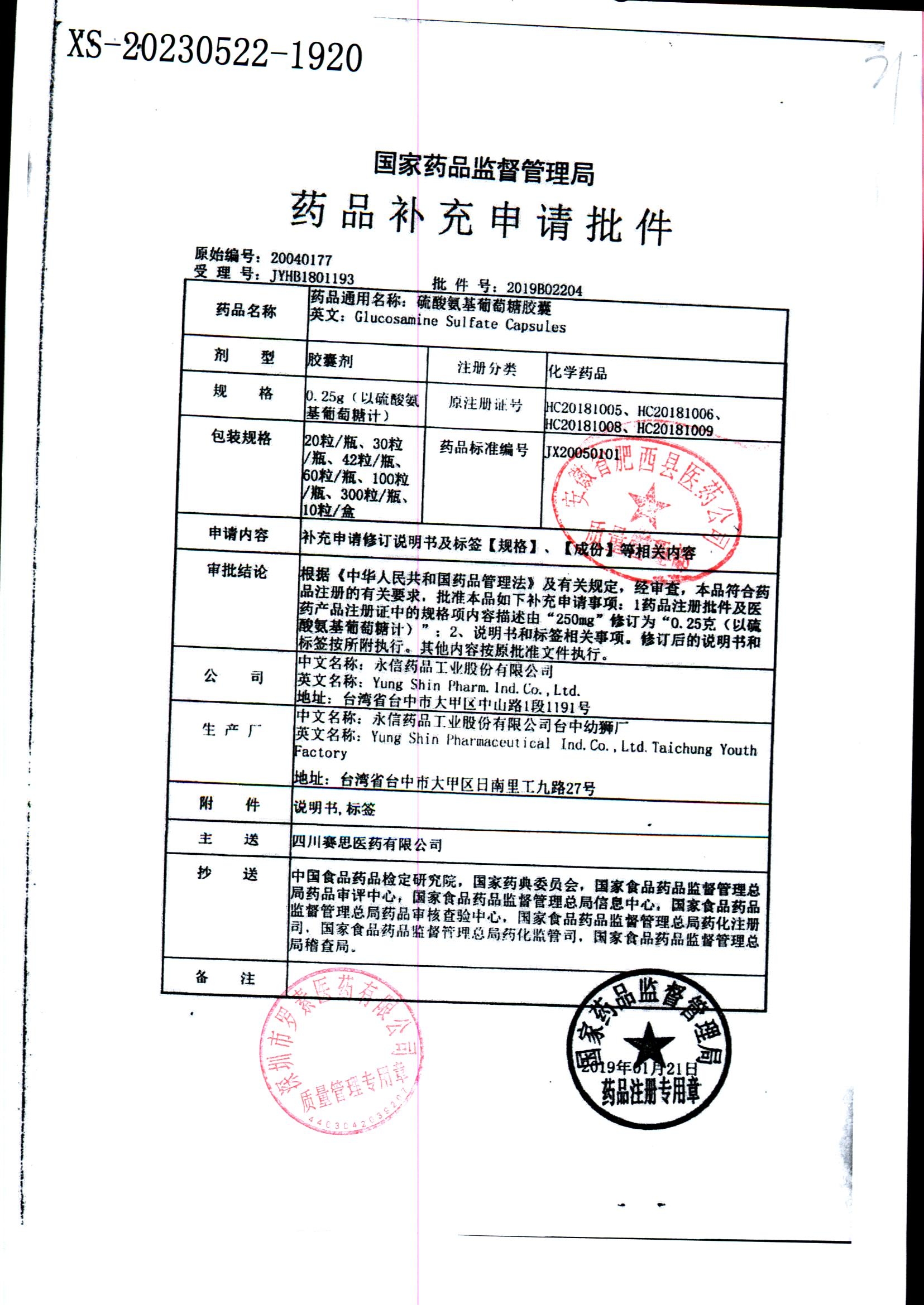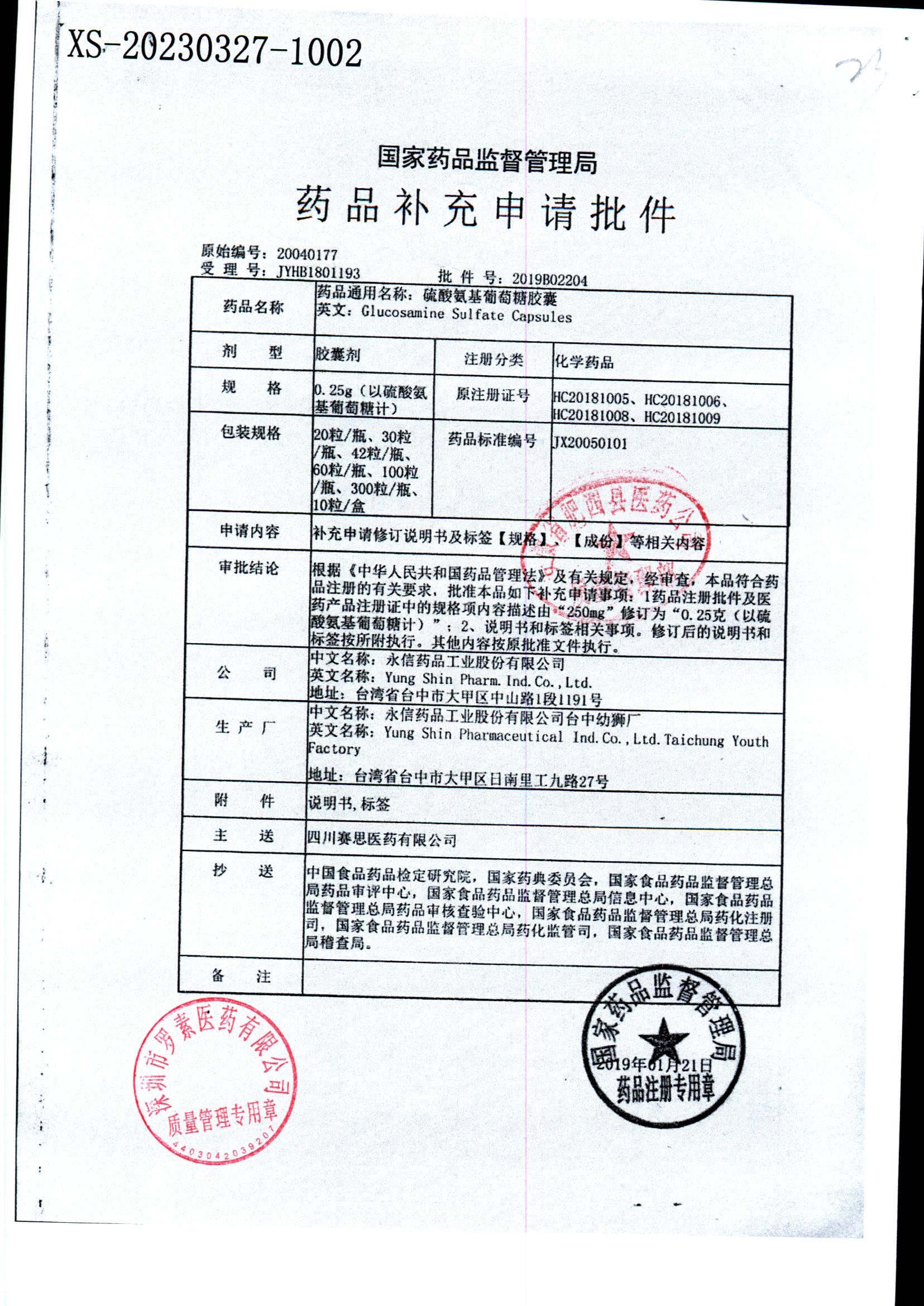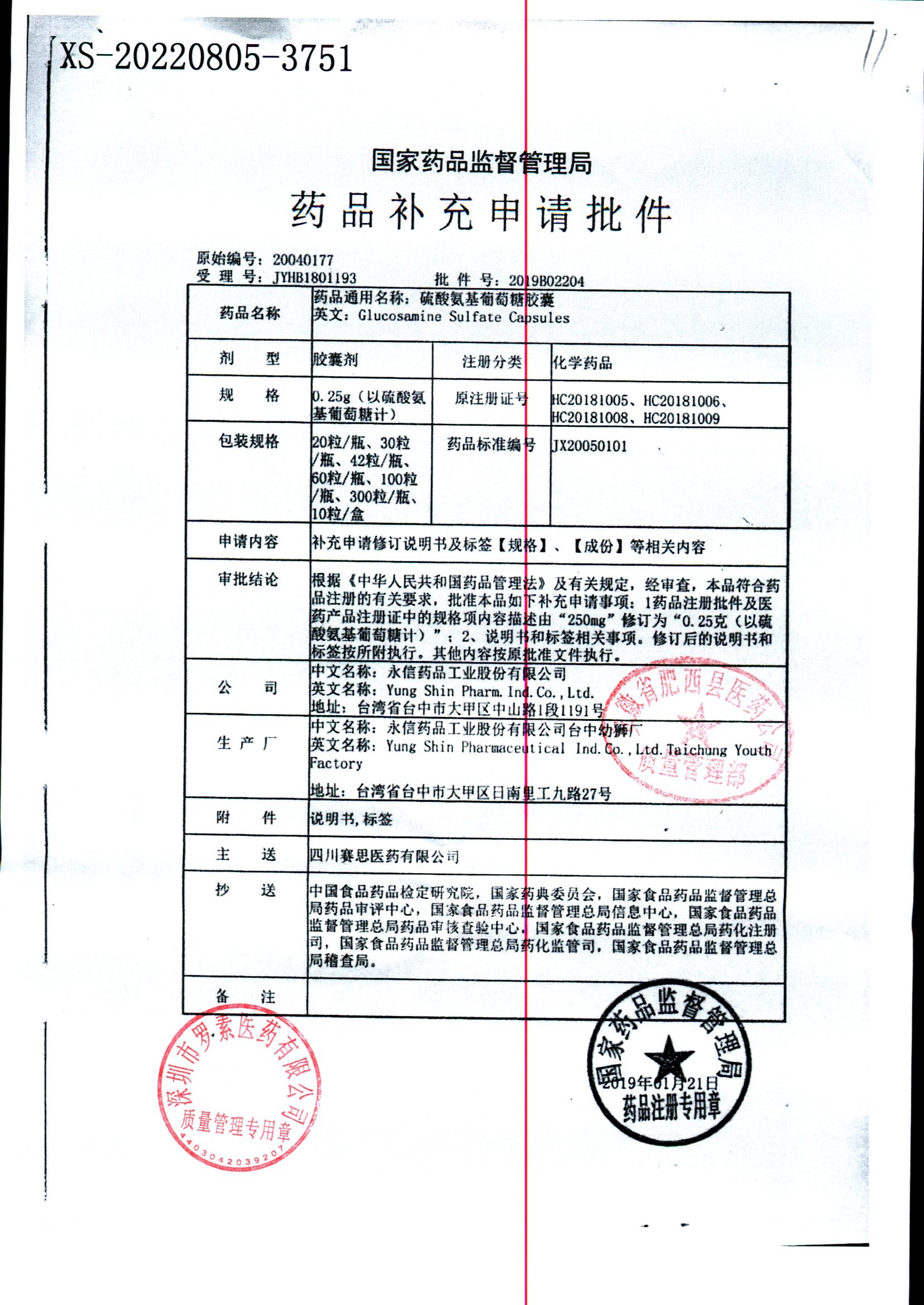 硫酸氨基葡萄糖胶囊 | 0.25g | GSCY Q011/3 | 查看详情 |