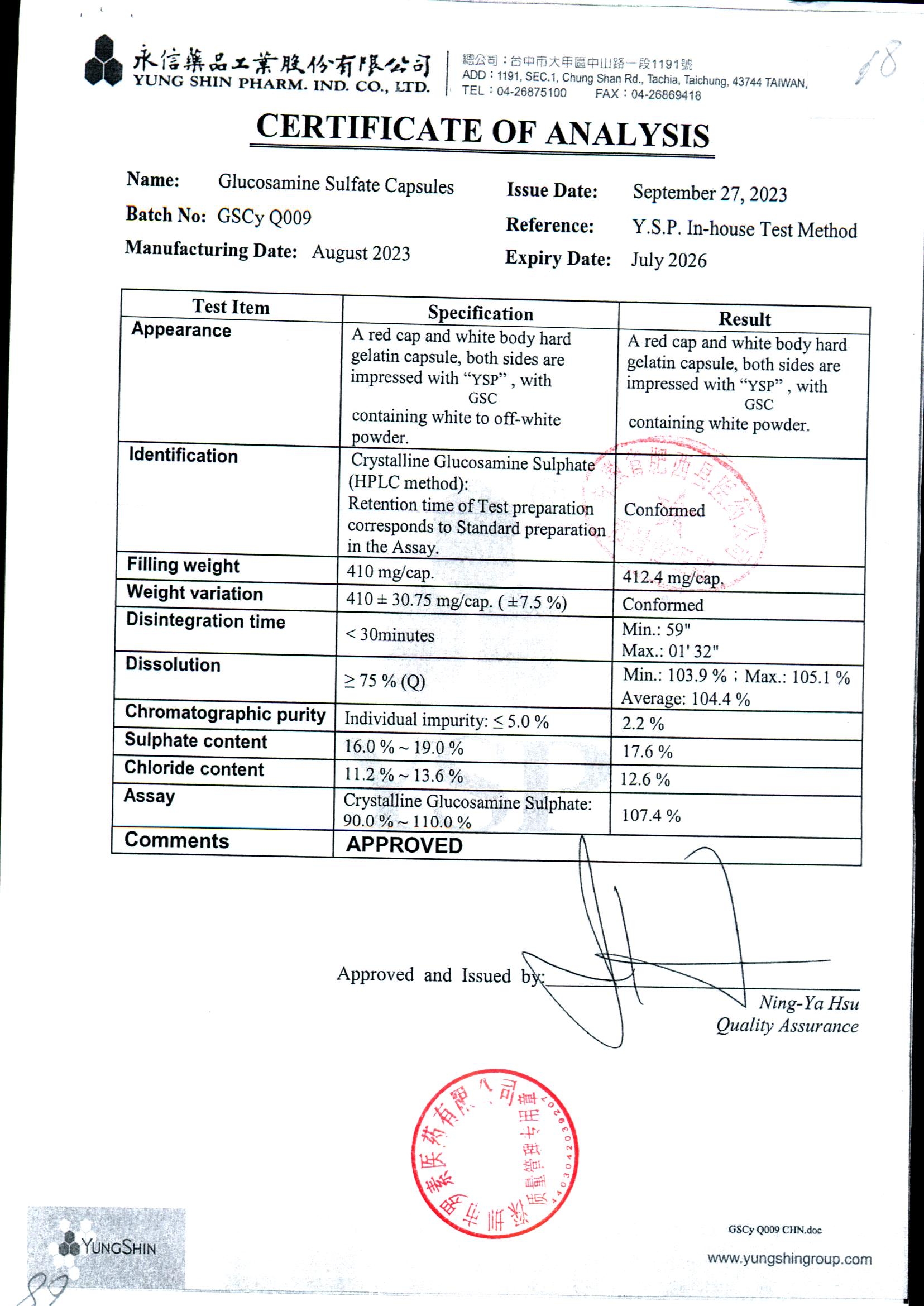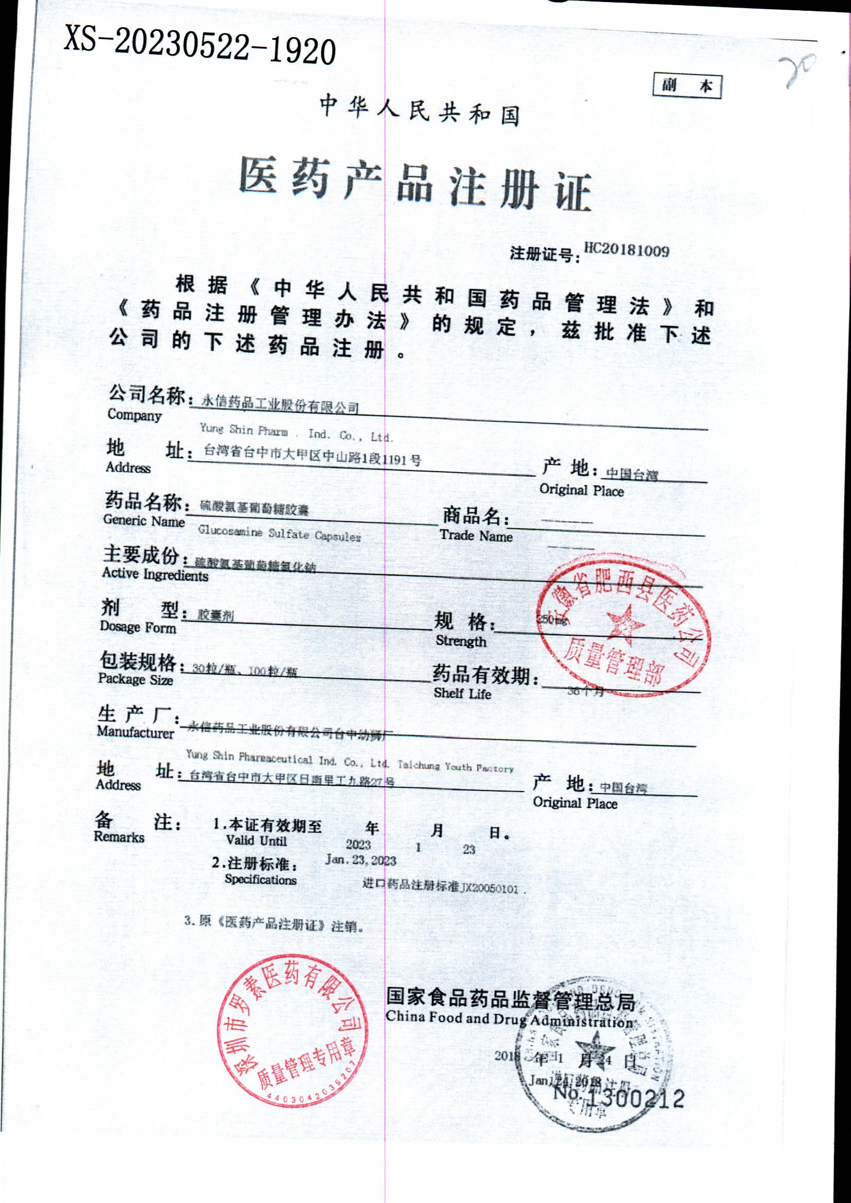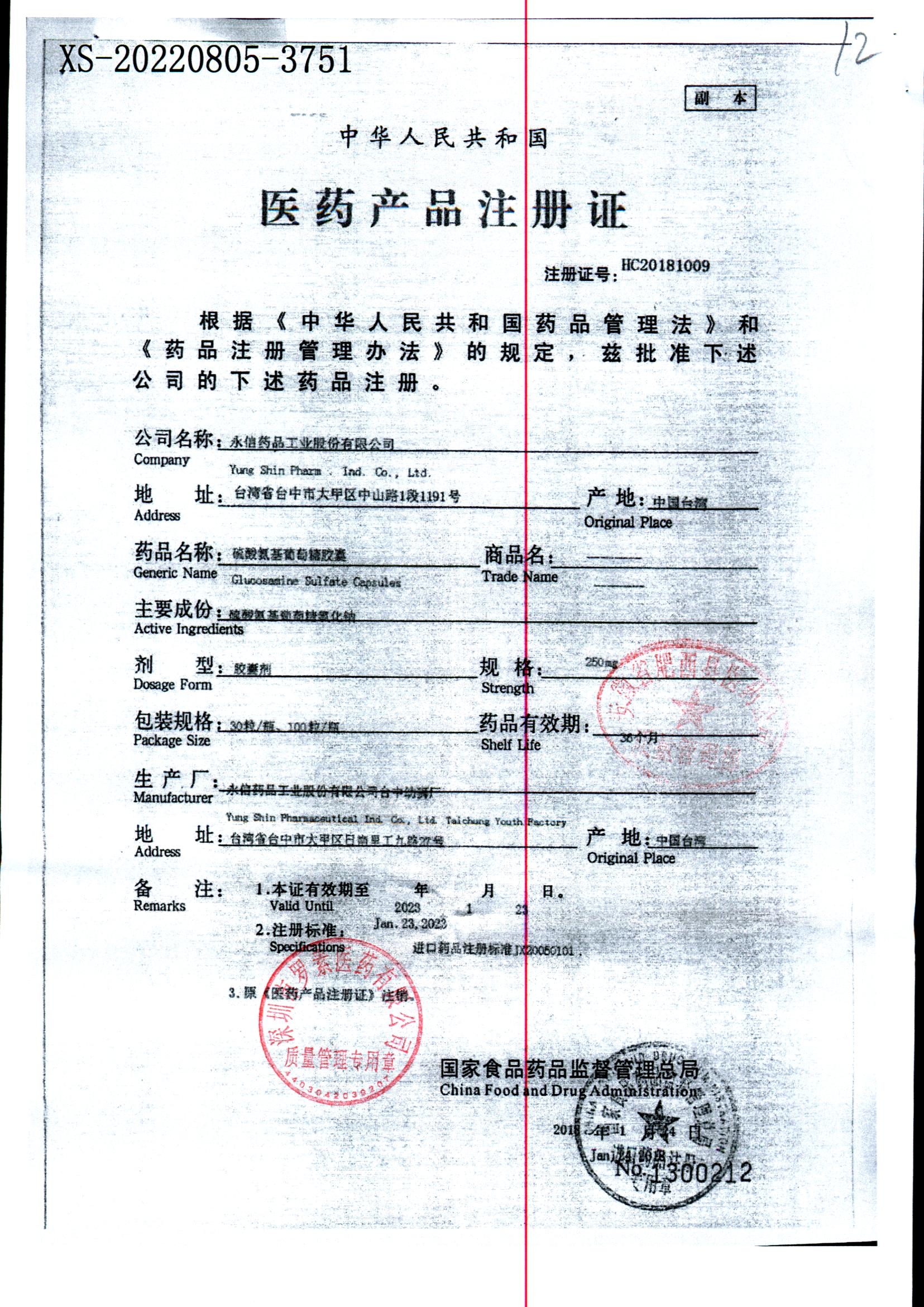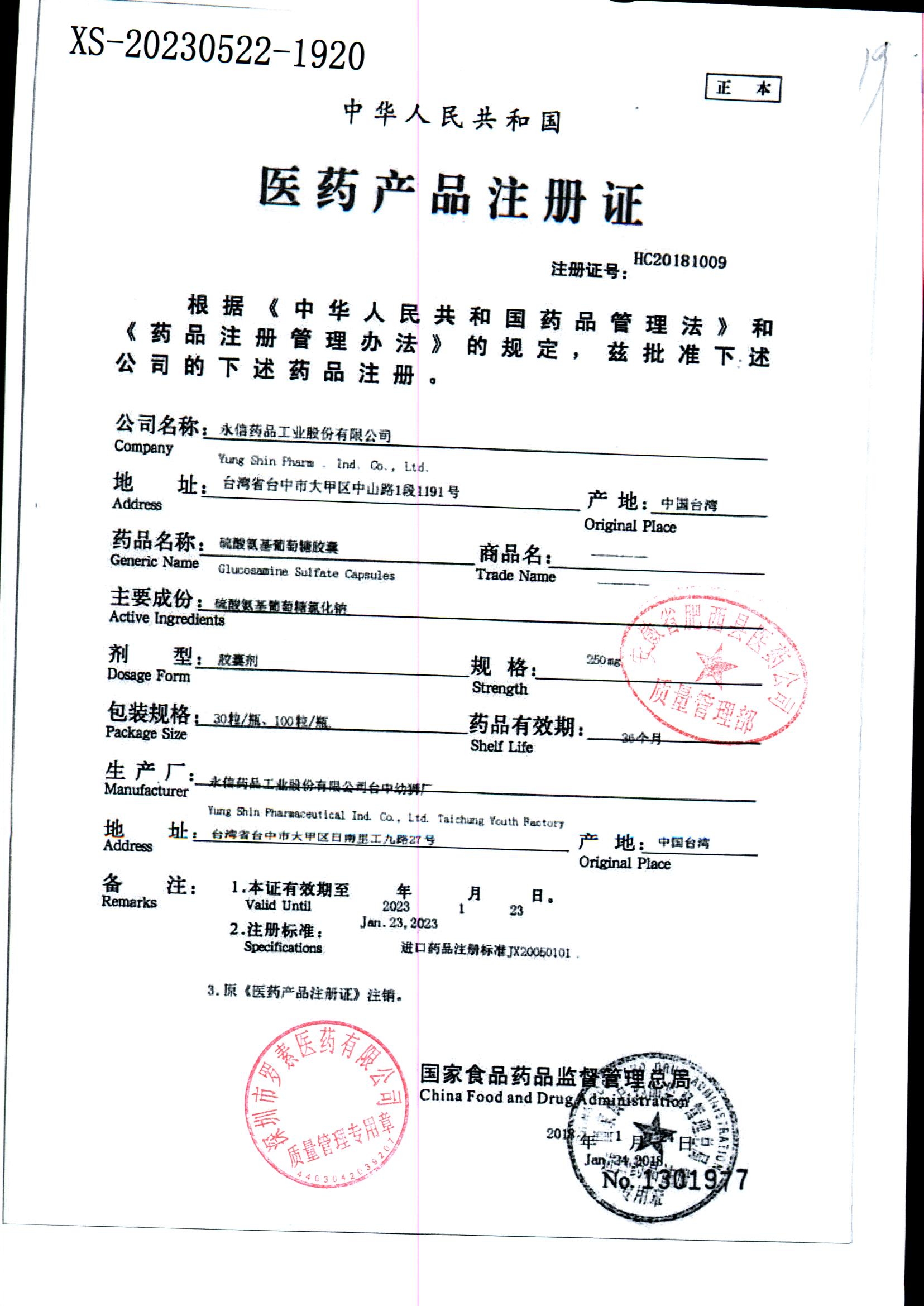 硫酸氨基葡萄糖胶囊 | 0.25g | GSCY Q009/8 | 查看详情 |