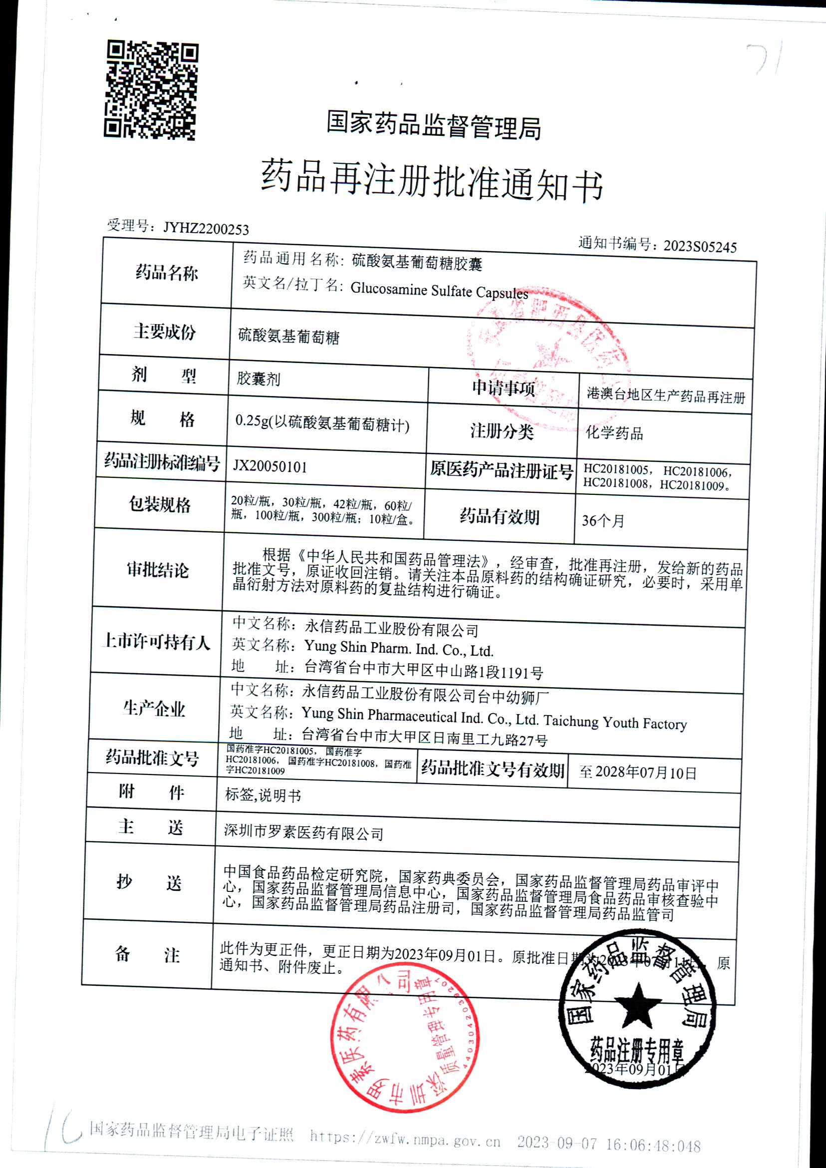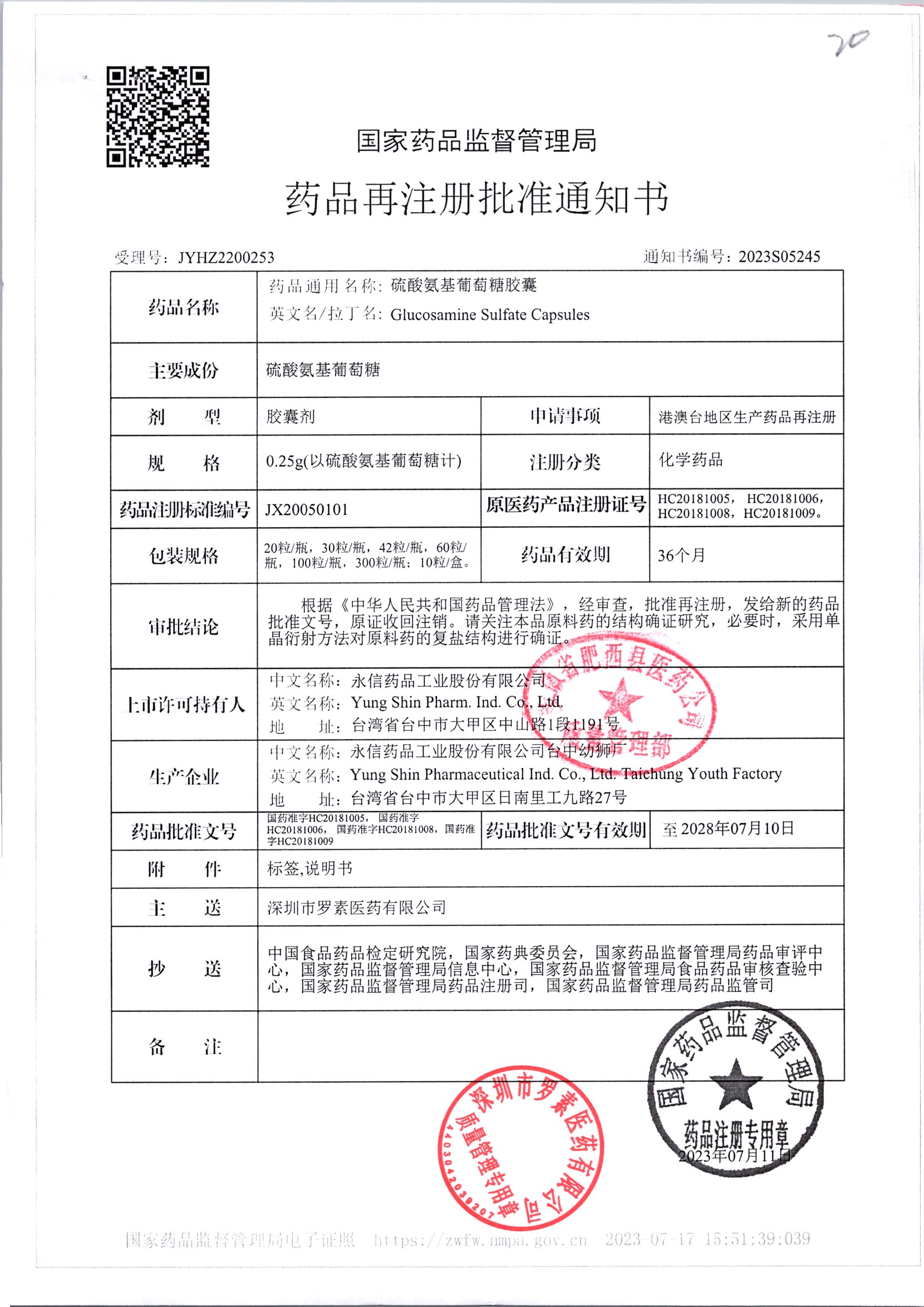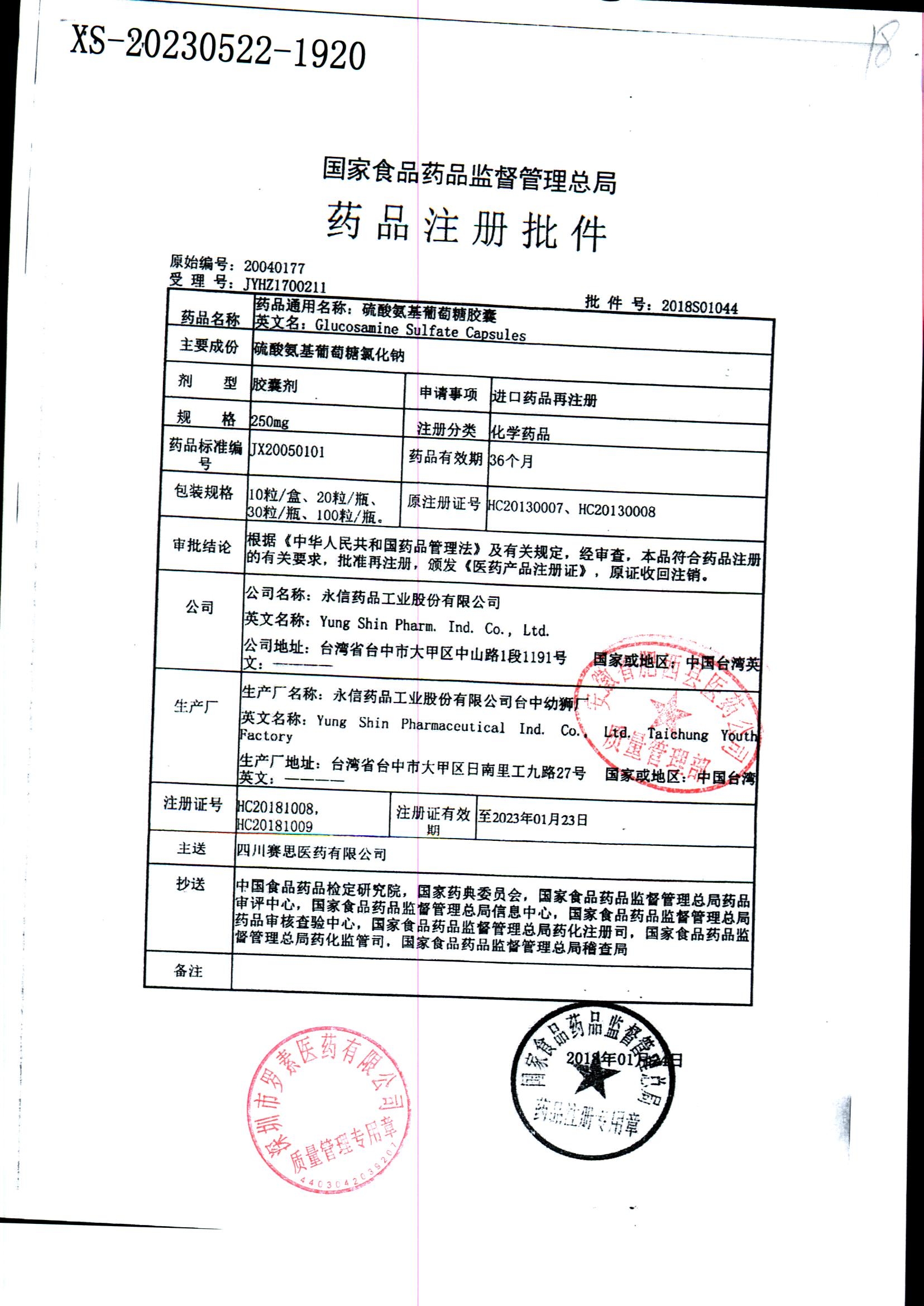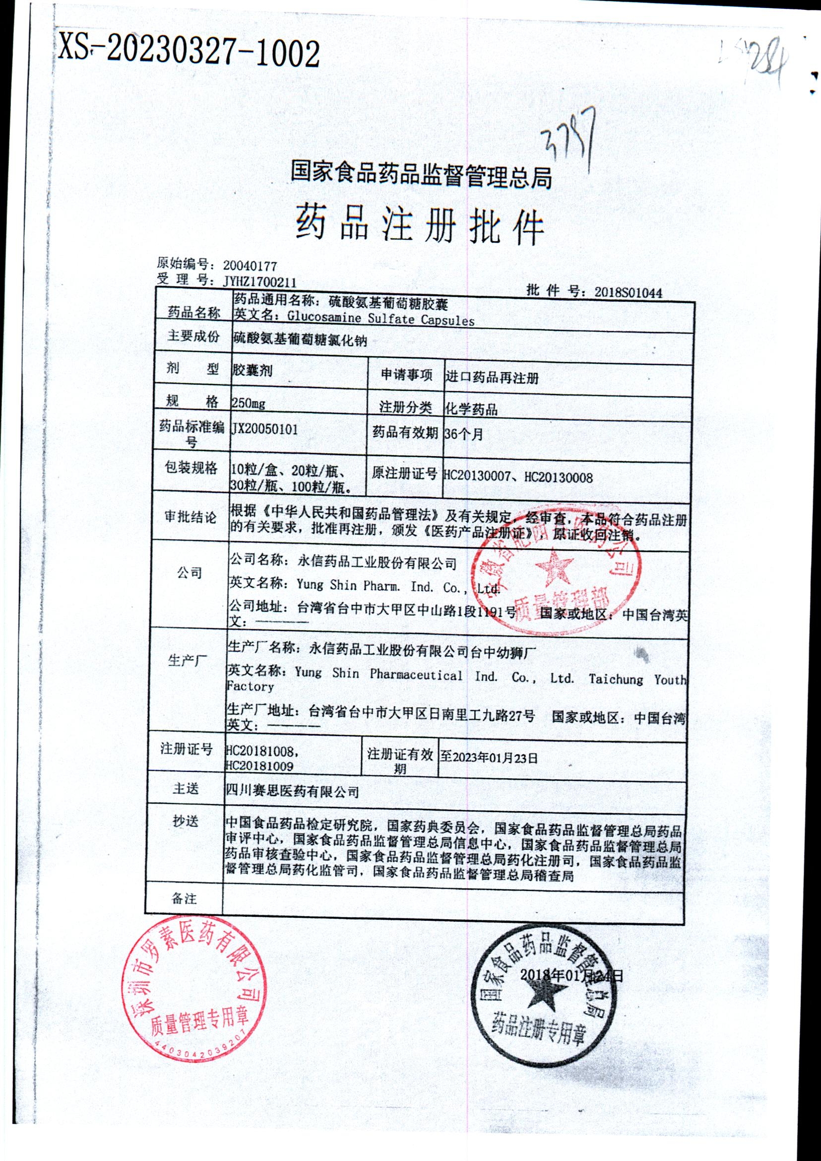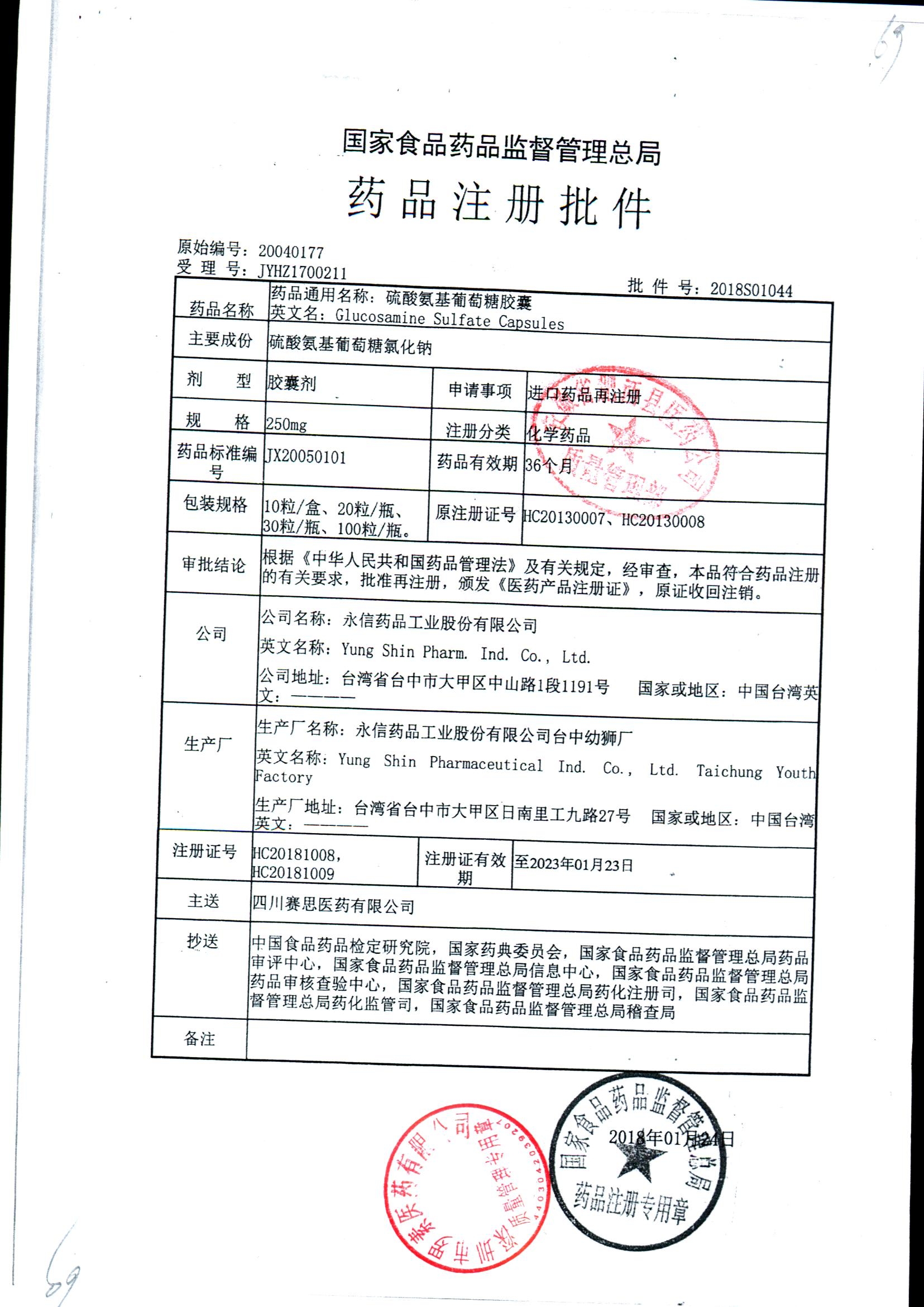 硫酸氨基葡萄糖胶囊 | 0.25g | GSCY S015/7 | 查看详情 |