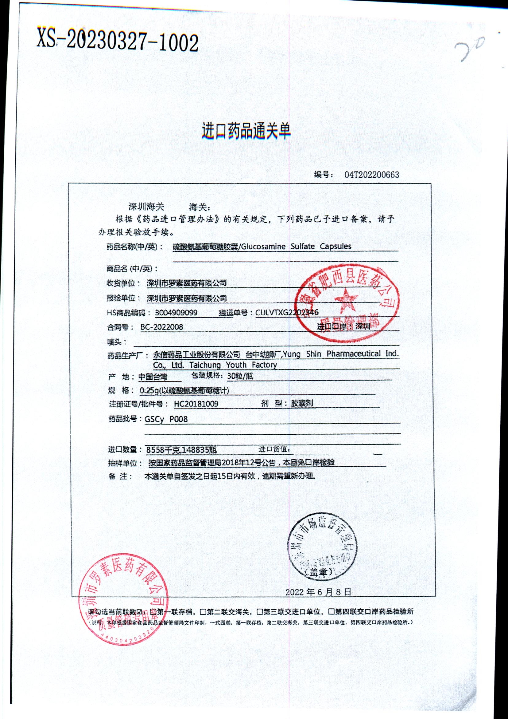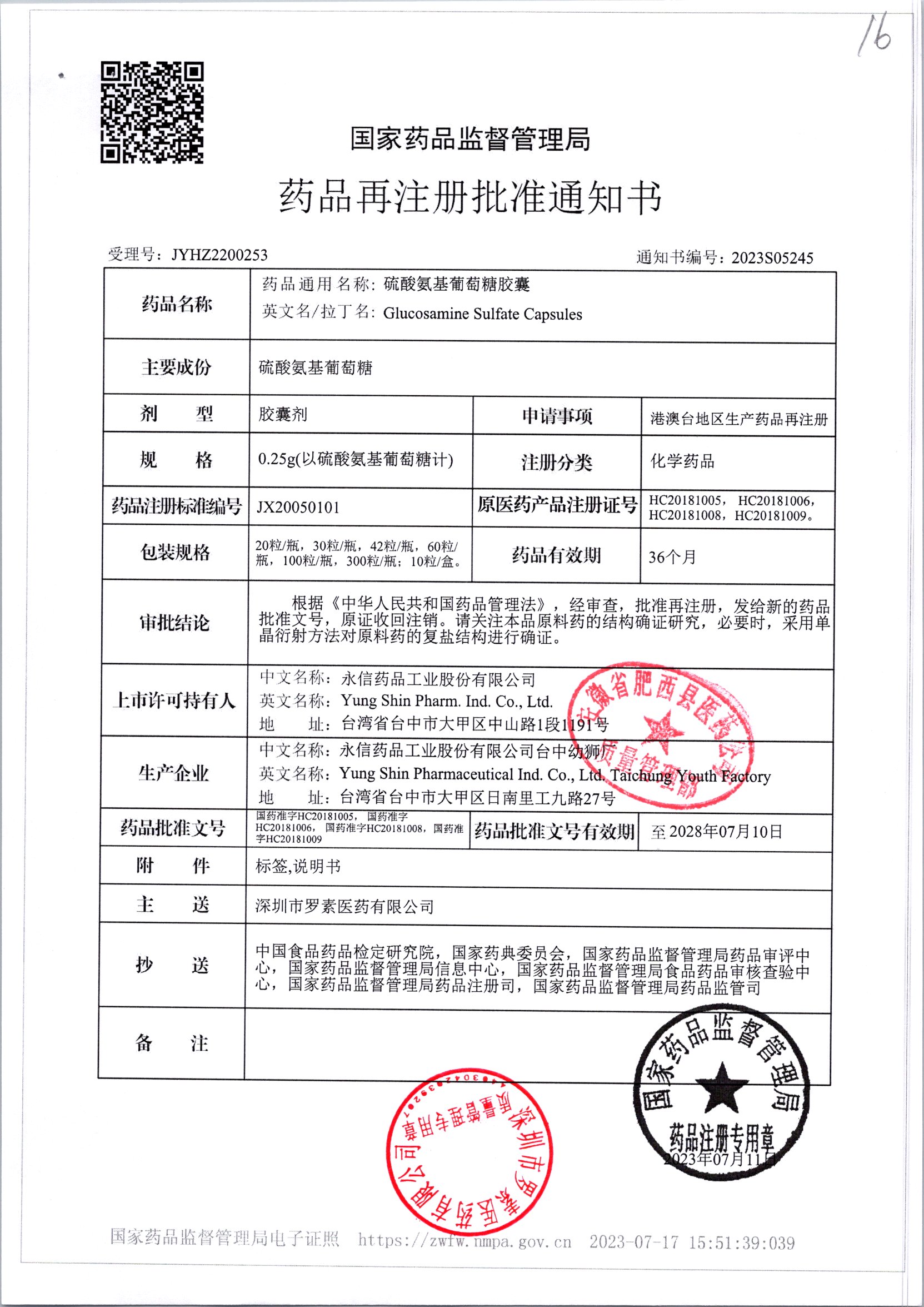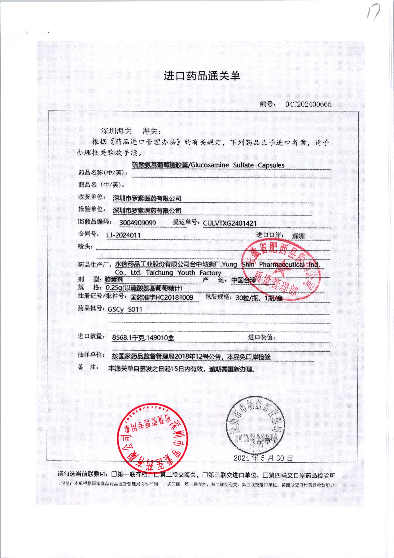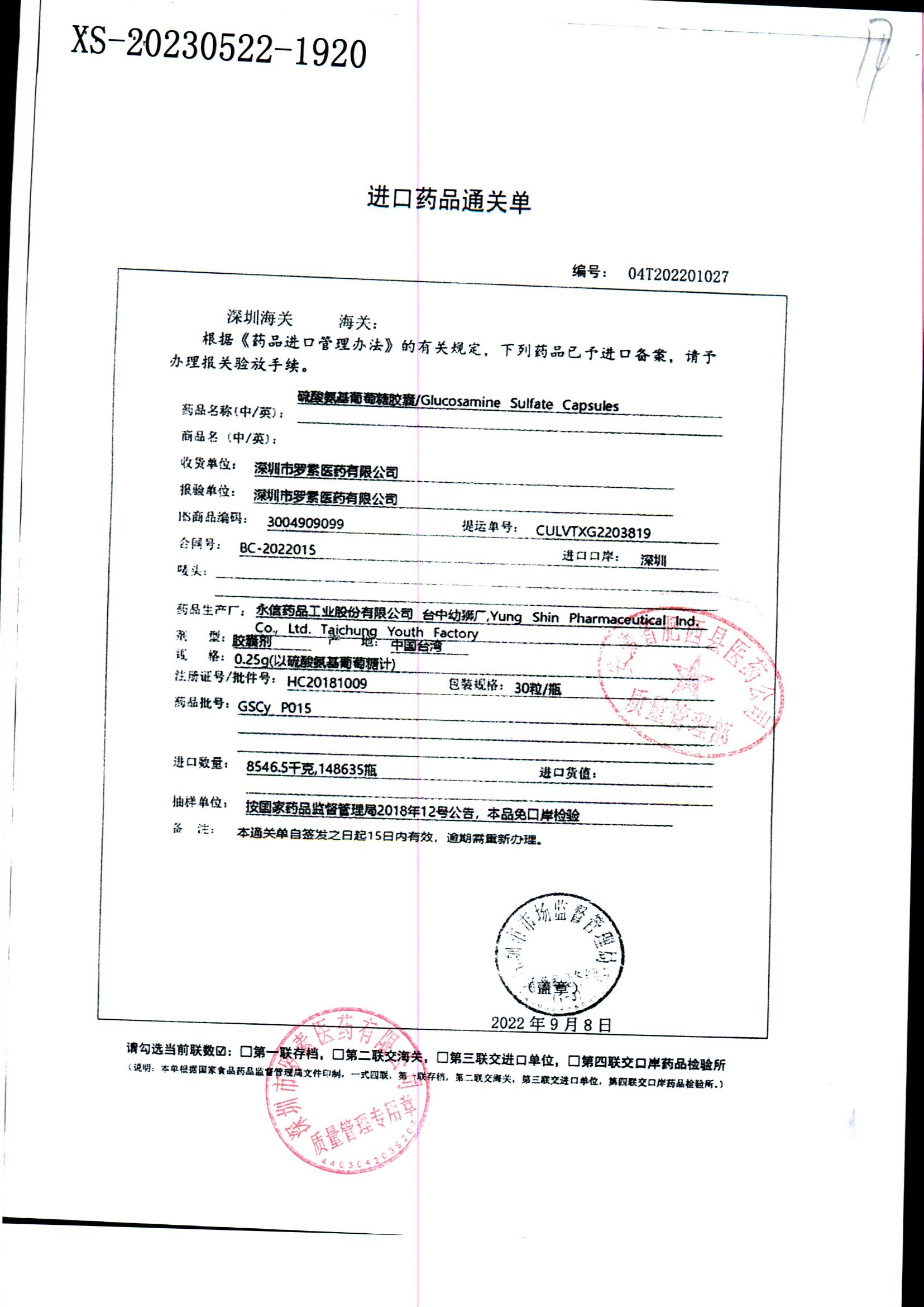 硫酸氨基葡萄糖胶囊 | 0.25g | GSCY S015/1 | 查看详情 |