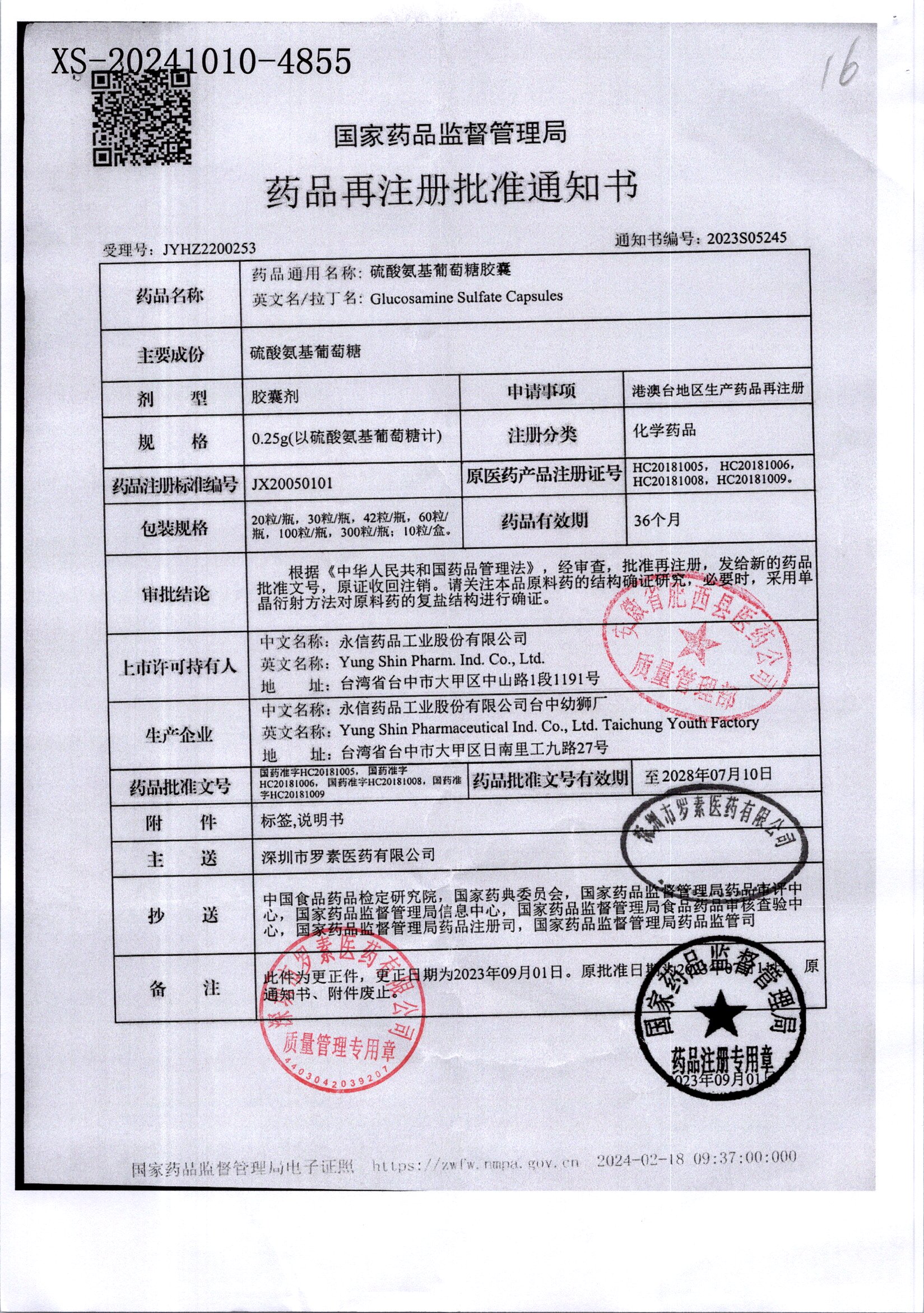 硫酸氨基葡萄糖胶囊 | 0.25g | GSCY S015/5 | 查看详情 |