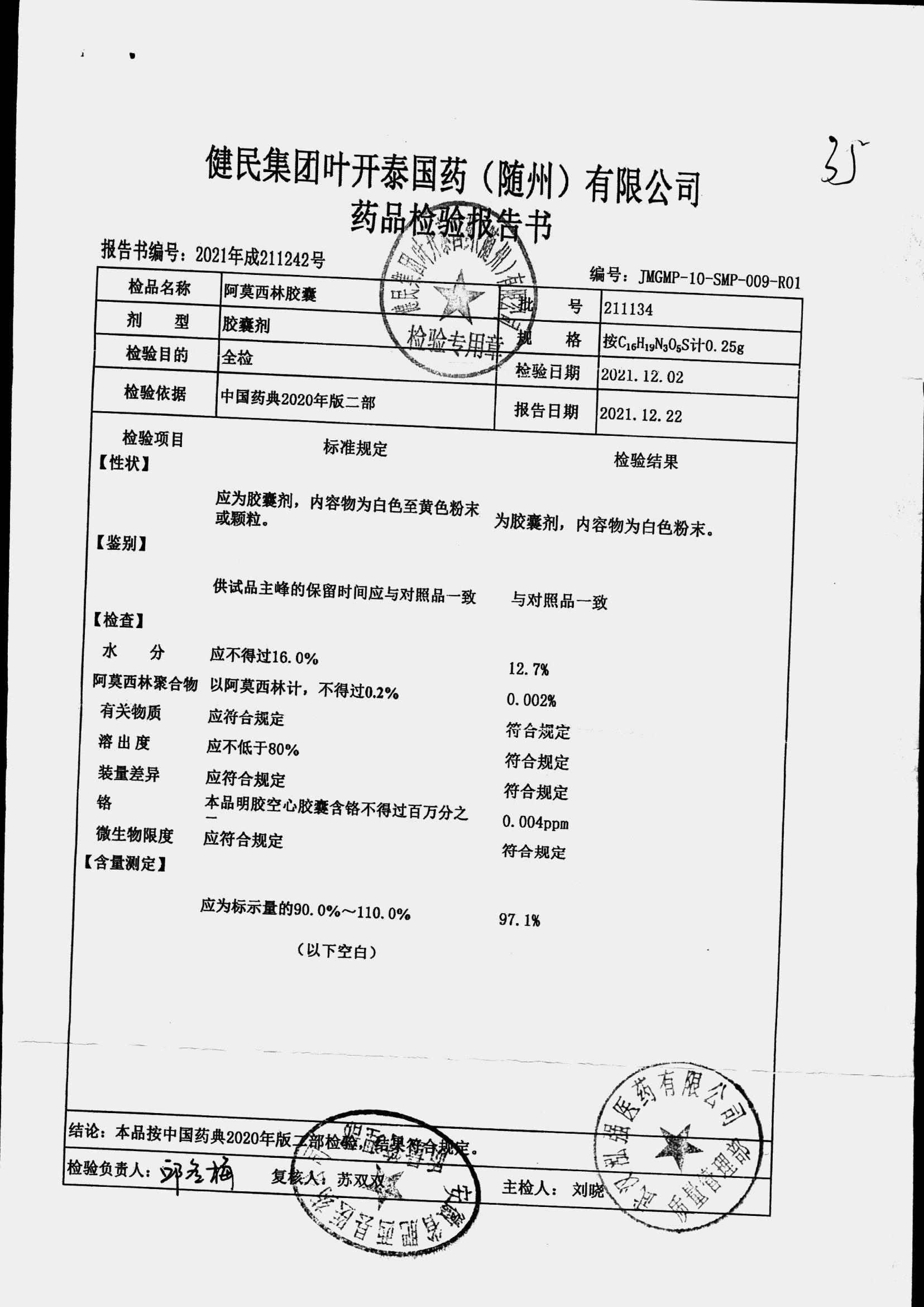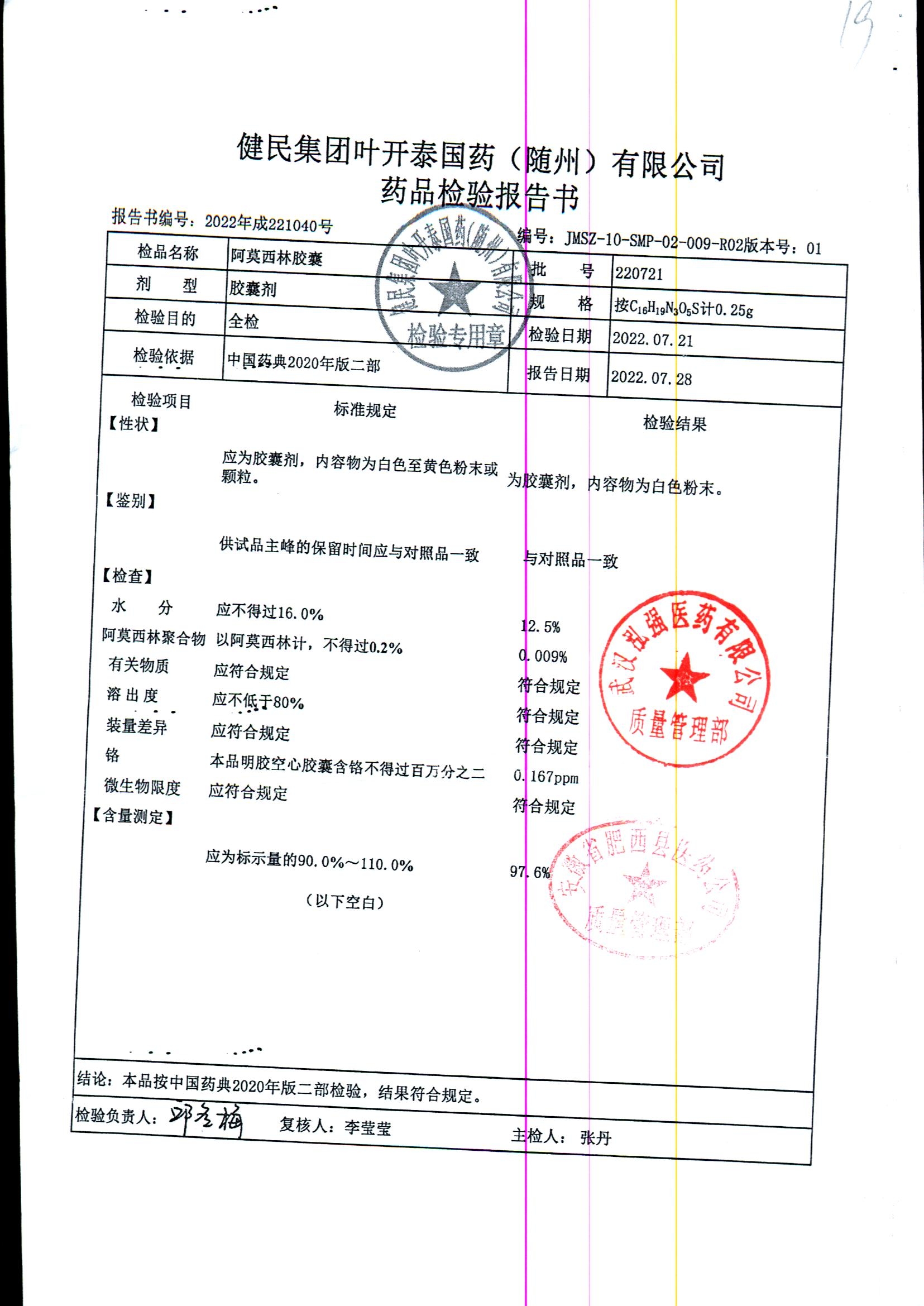 阿莫西林胶囊 | 0.25g | 220721 | 查看详情 |