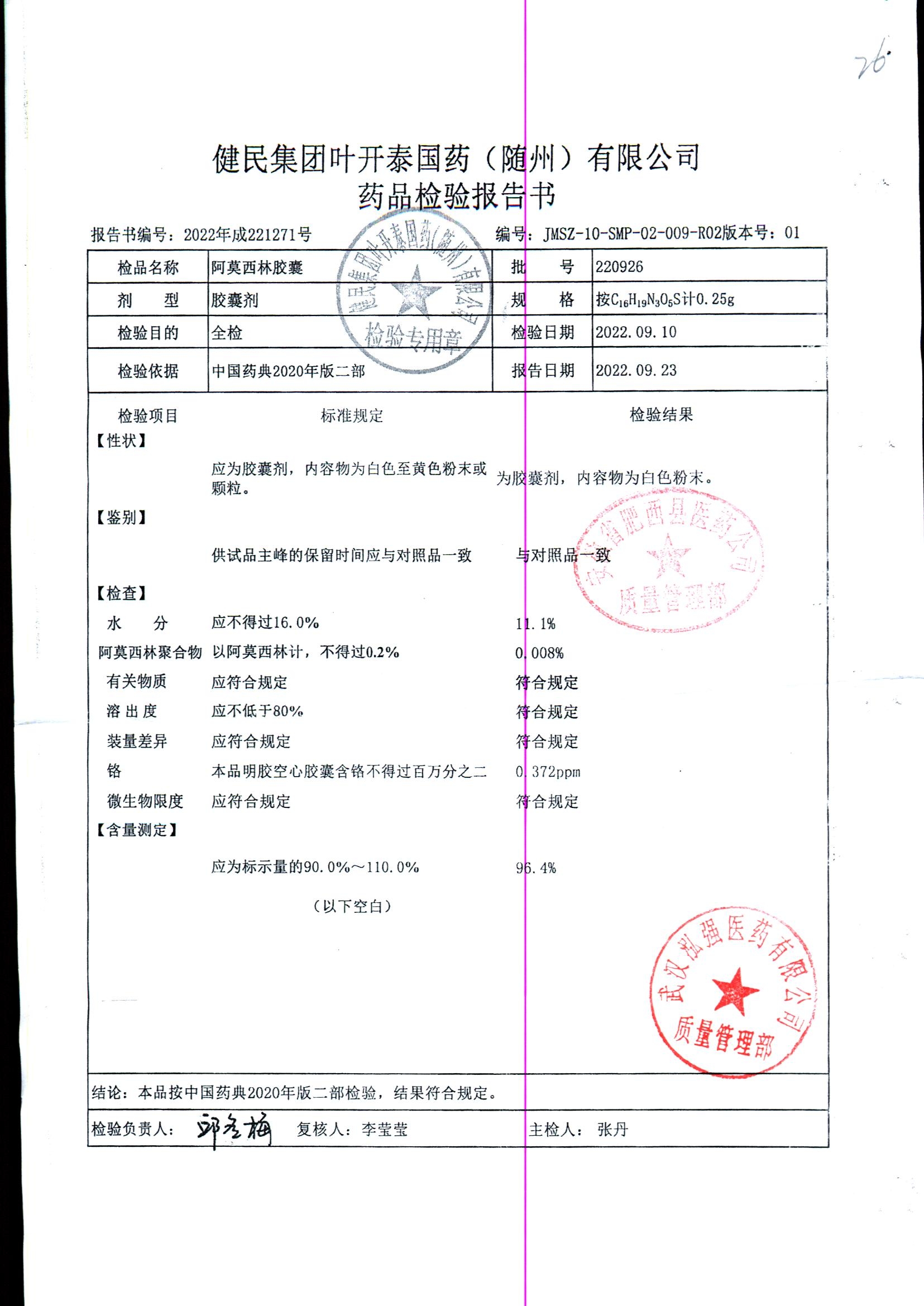 阿莫西林胶囊 | 0.25g | 220926 | 查看详情 |