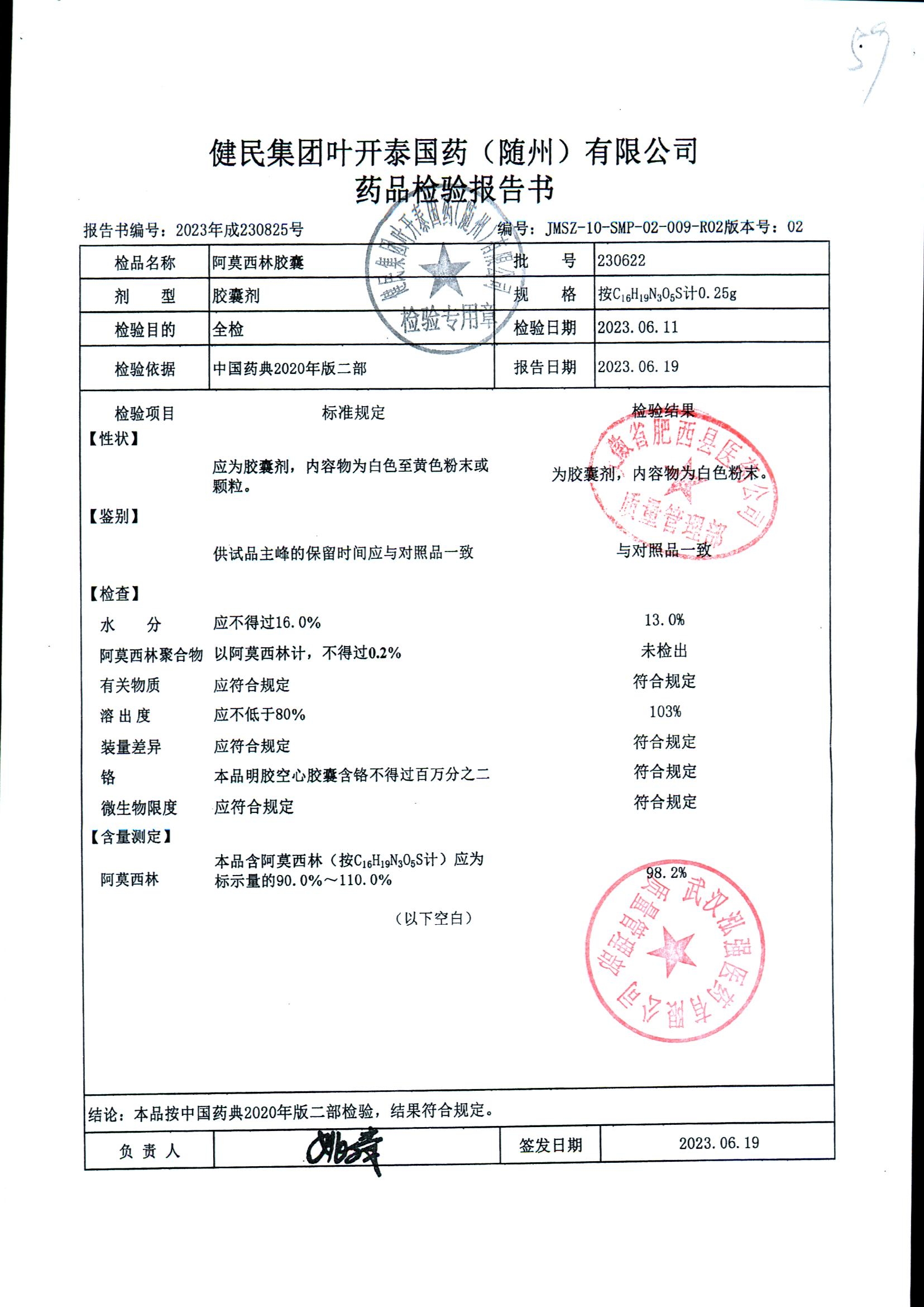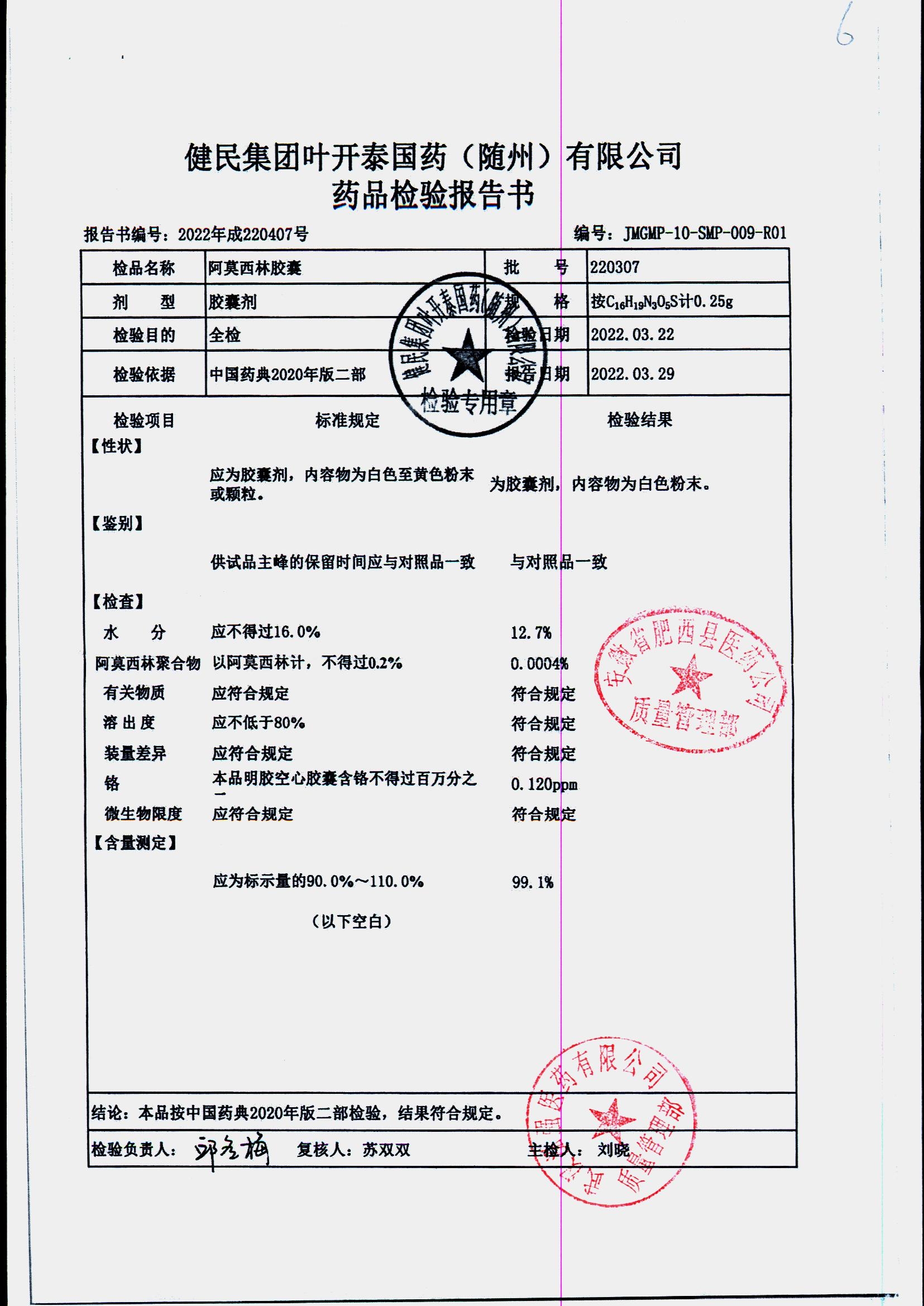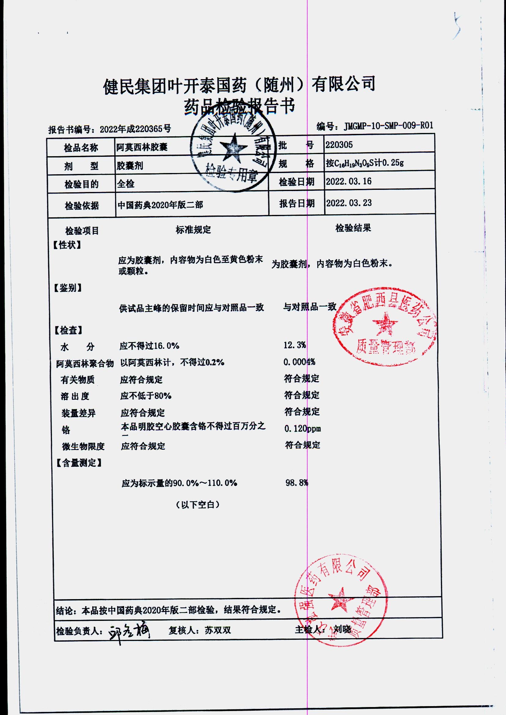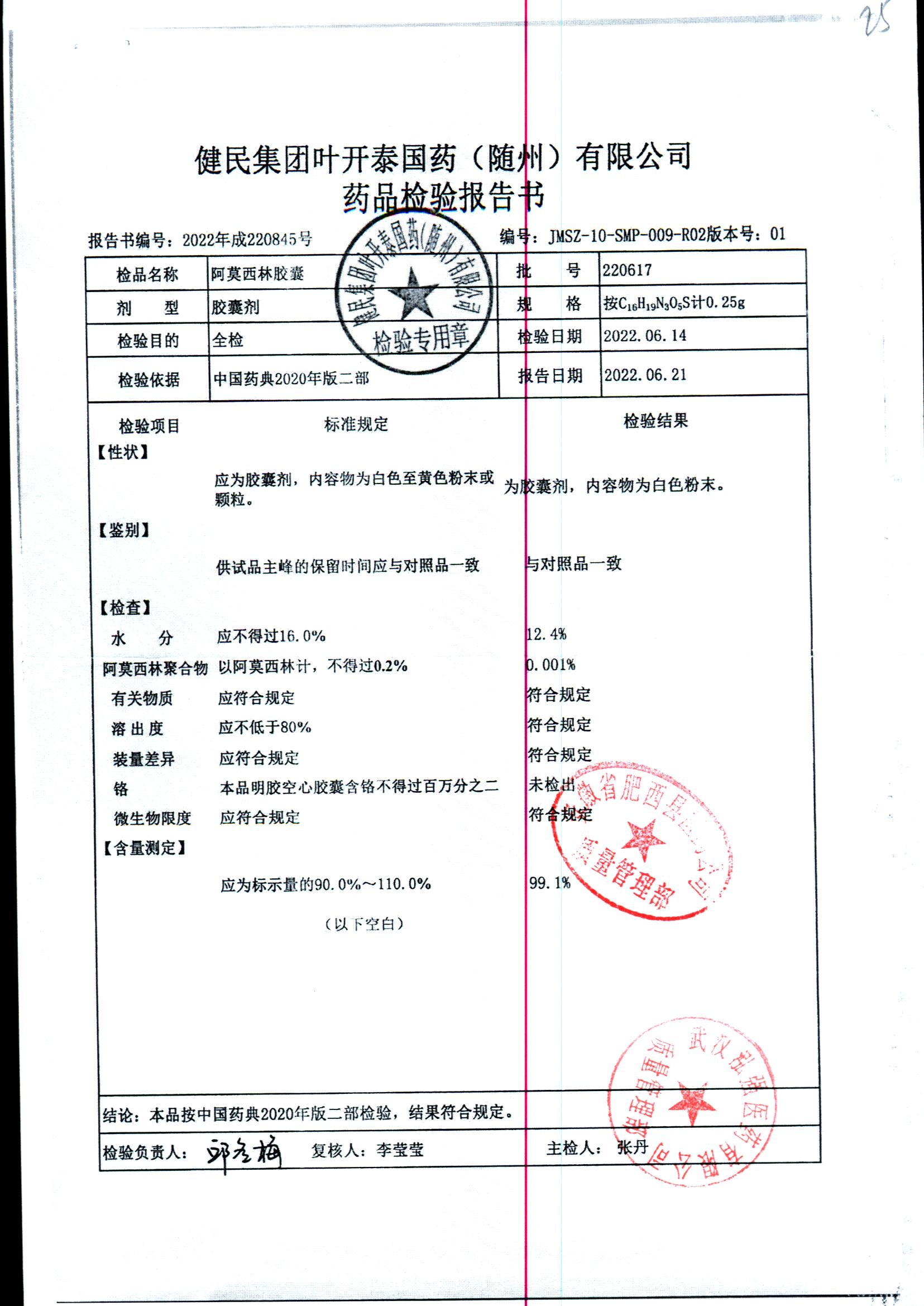 阿莫西林胶囊 | 0.25g | 220619 | 查看详情 |