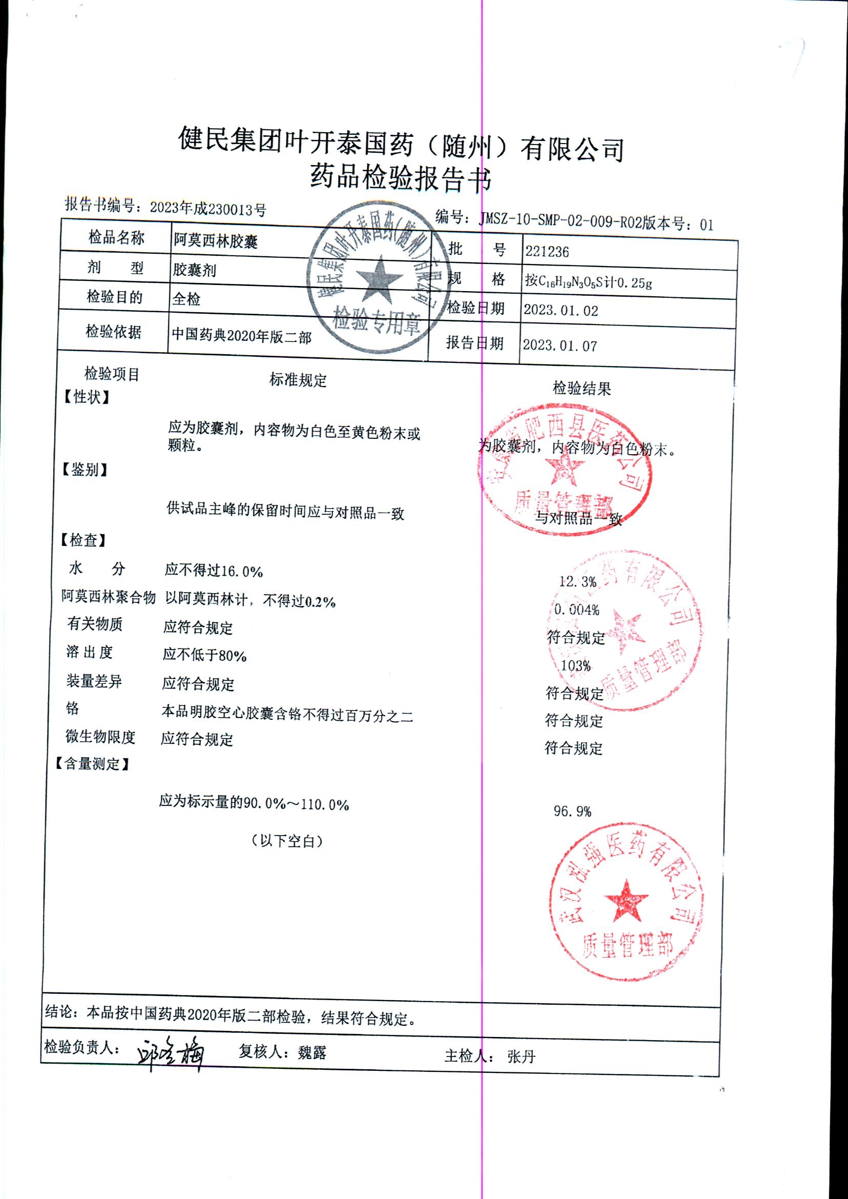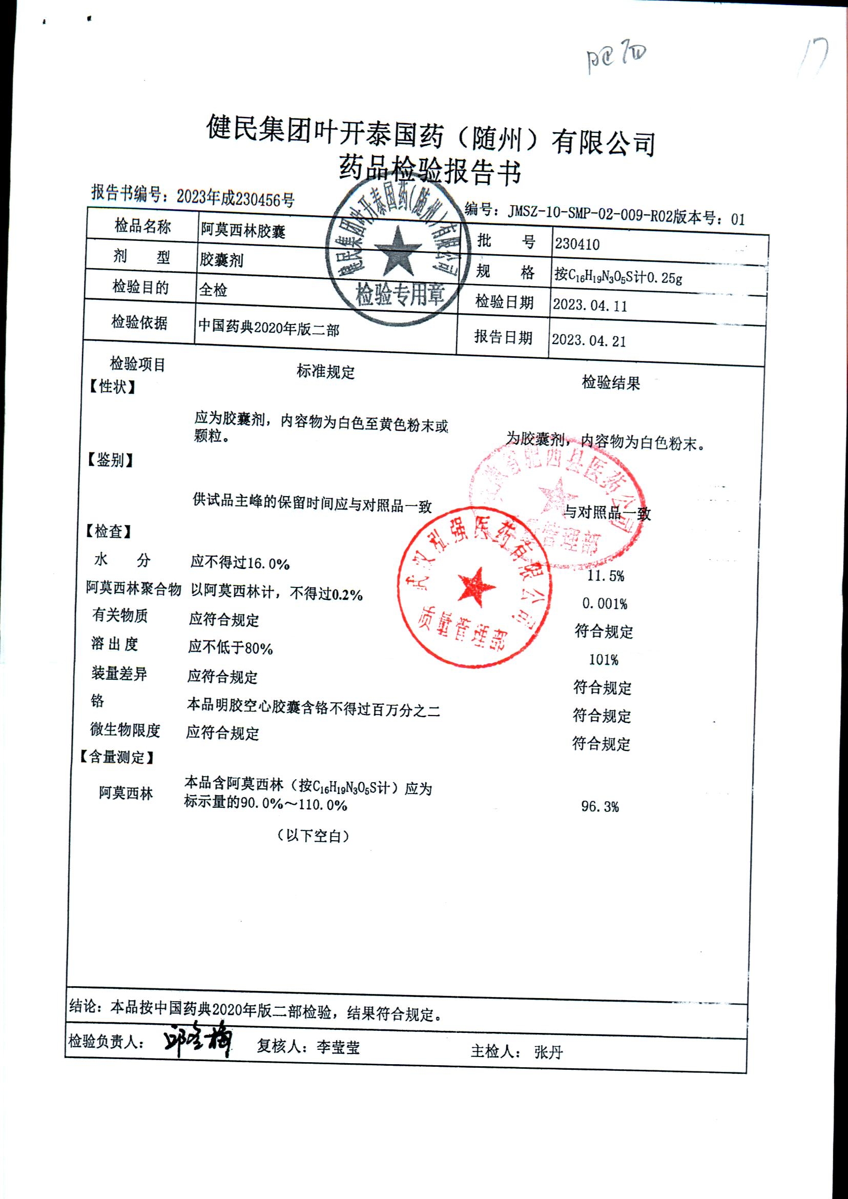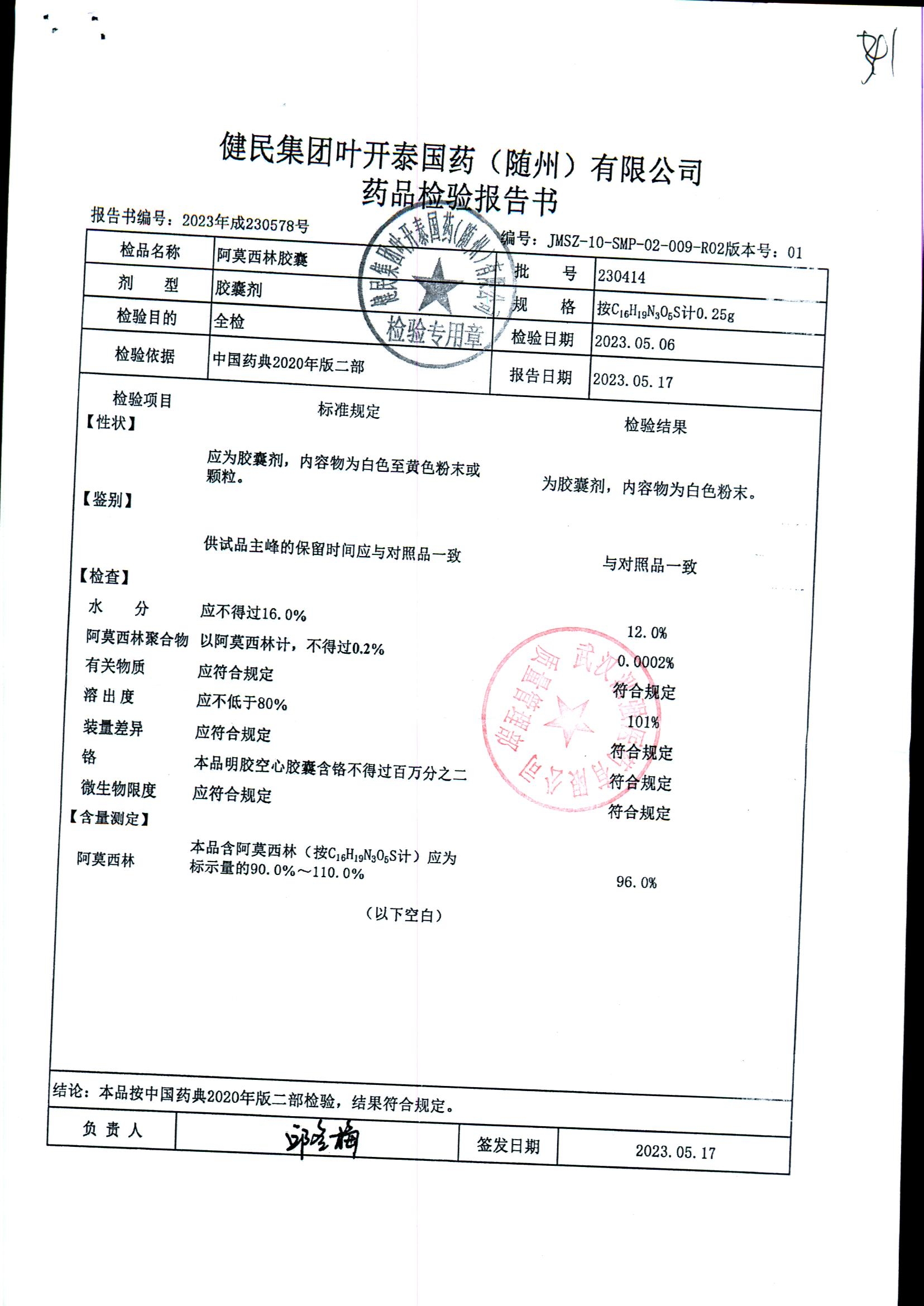 阿莫西林胶囊 | 0.25g | 230414 | 查看详情 |