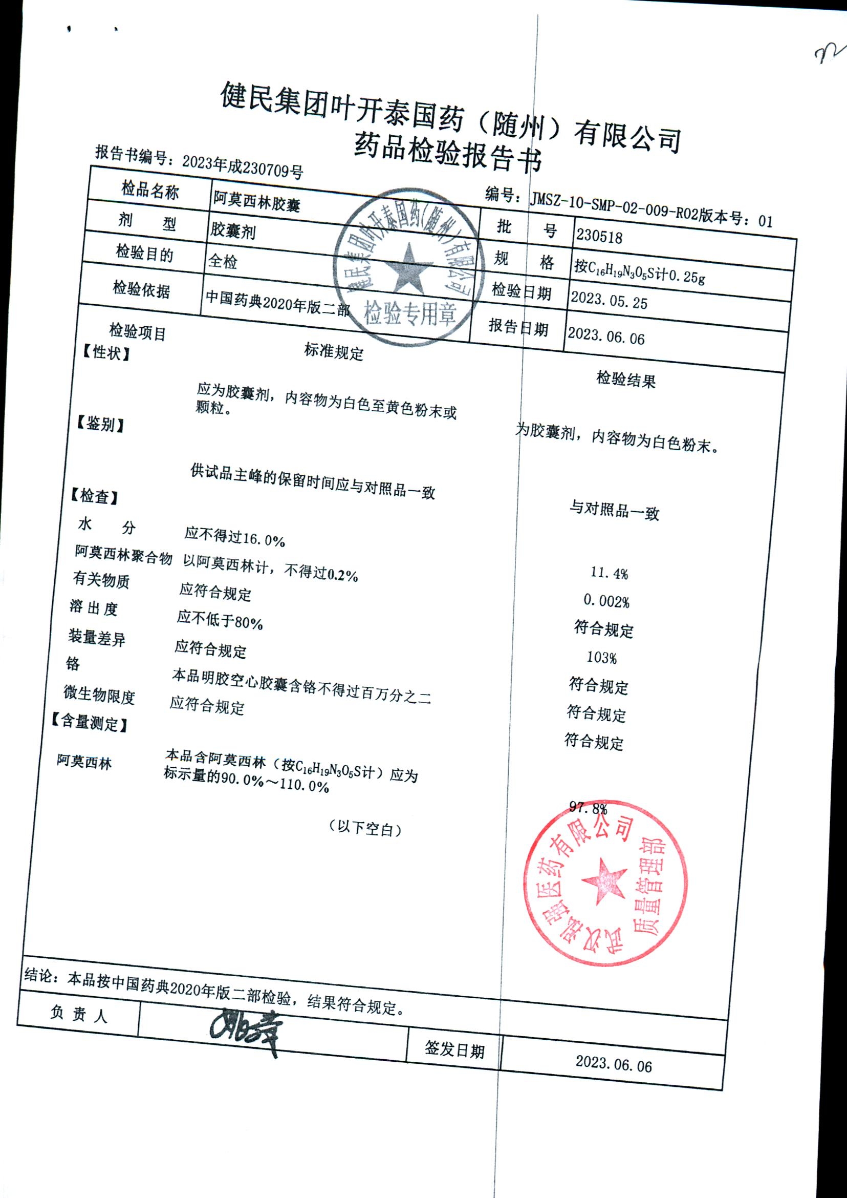 阿莫西林胶囊 | 0.25g | 230518 | 查看详情 |