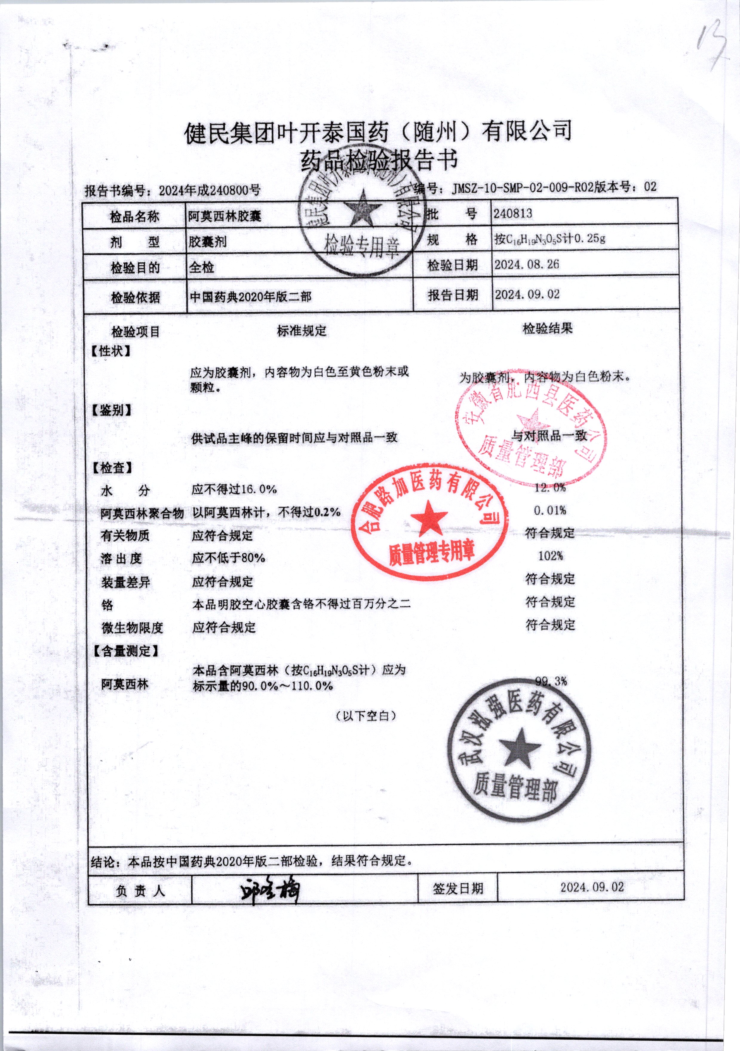 阿莫西林胶囊 | 0.25g | 240813 | 查看详情 |