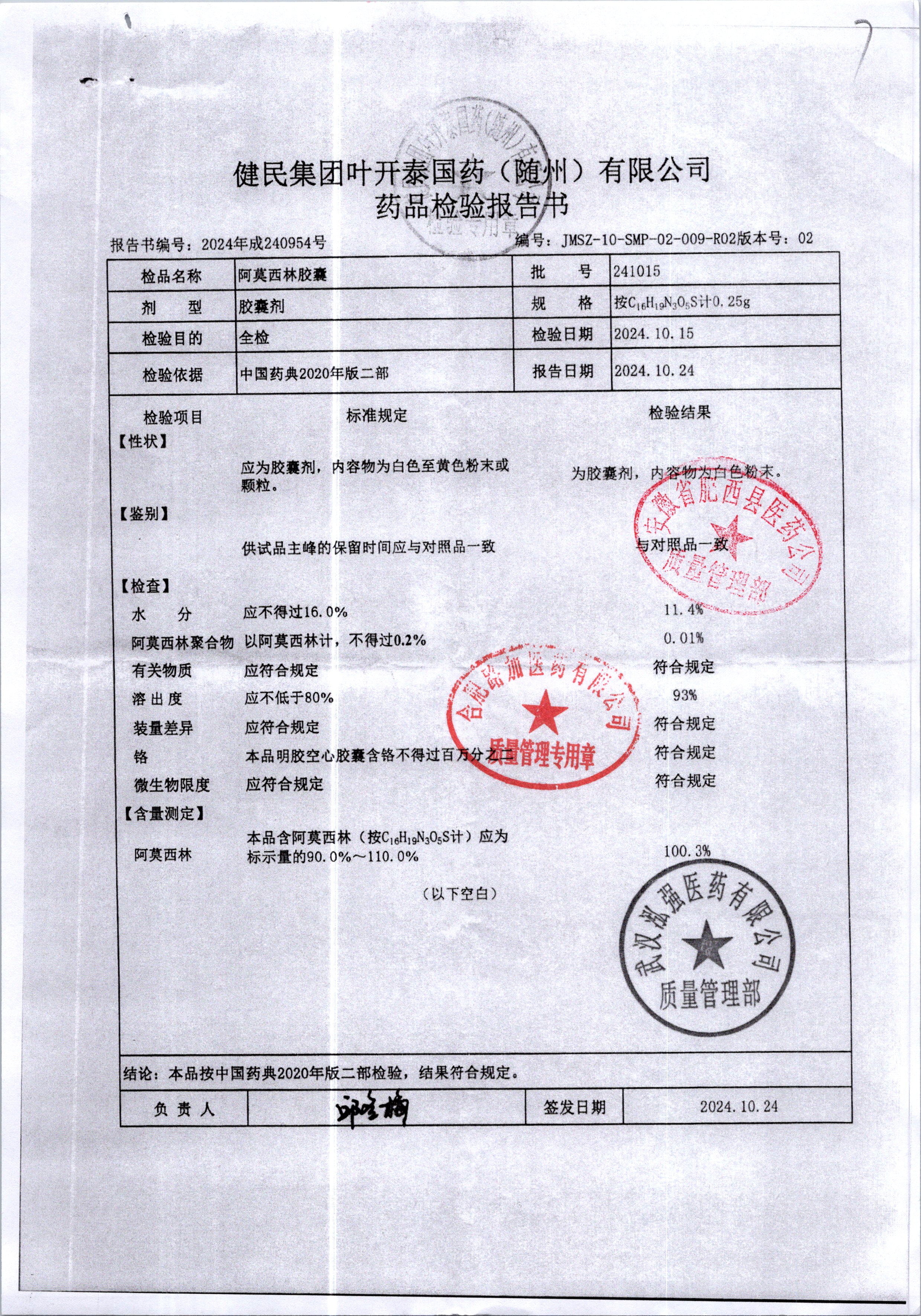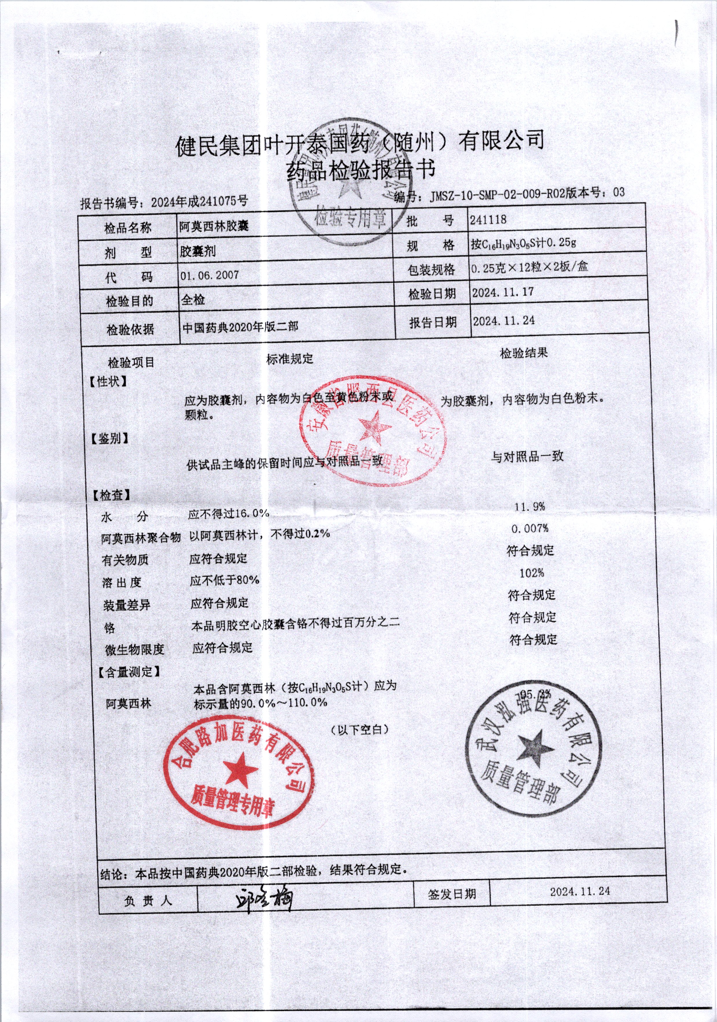 阿莫西林胶囊 | 0.25g | 241118 | 查看详情 |