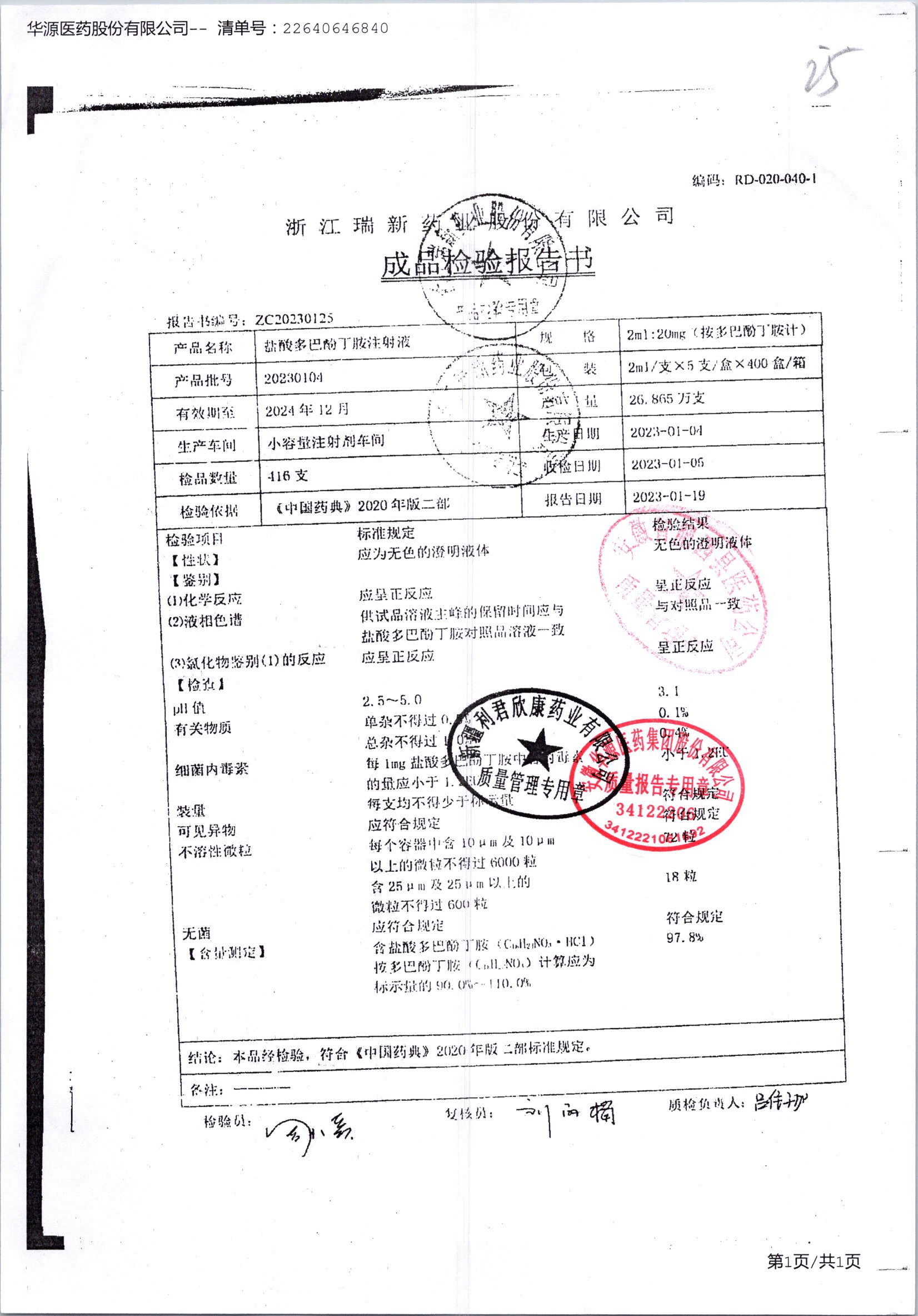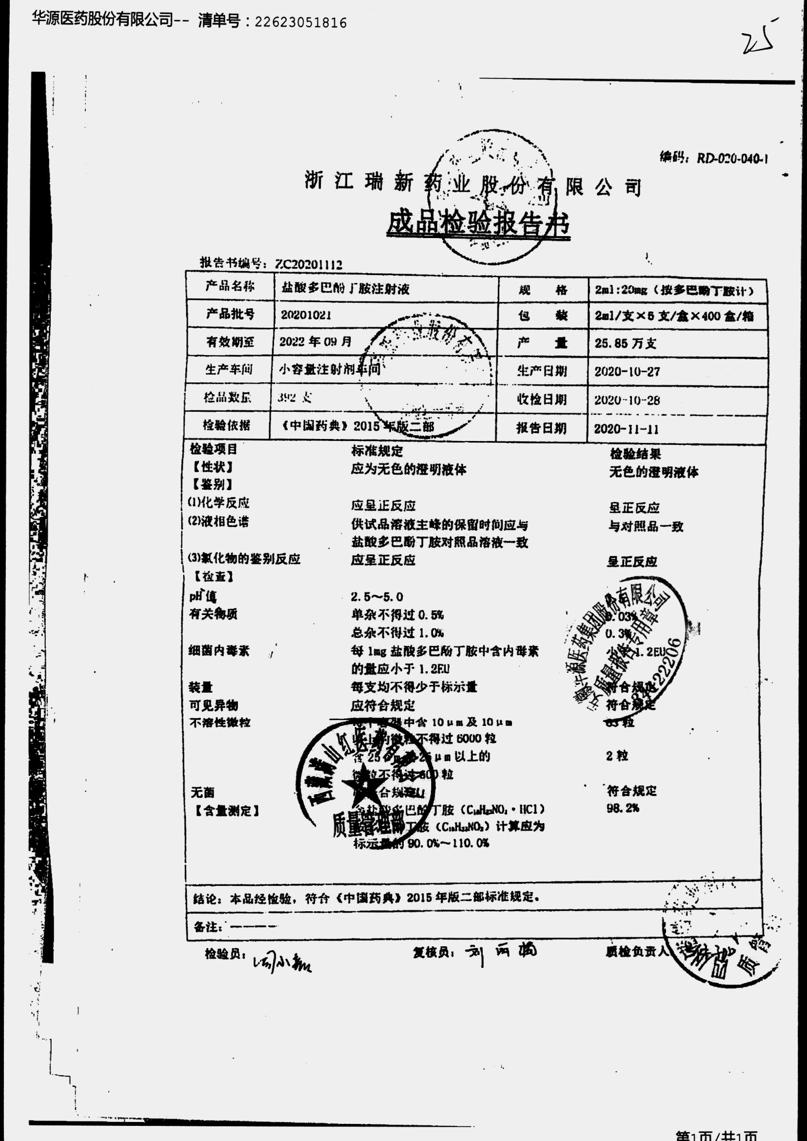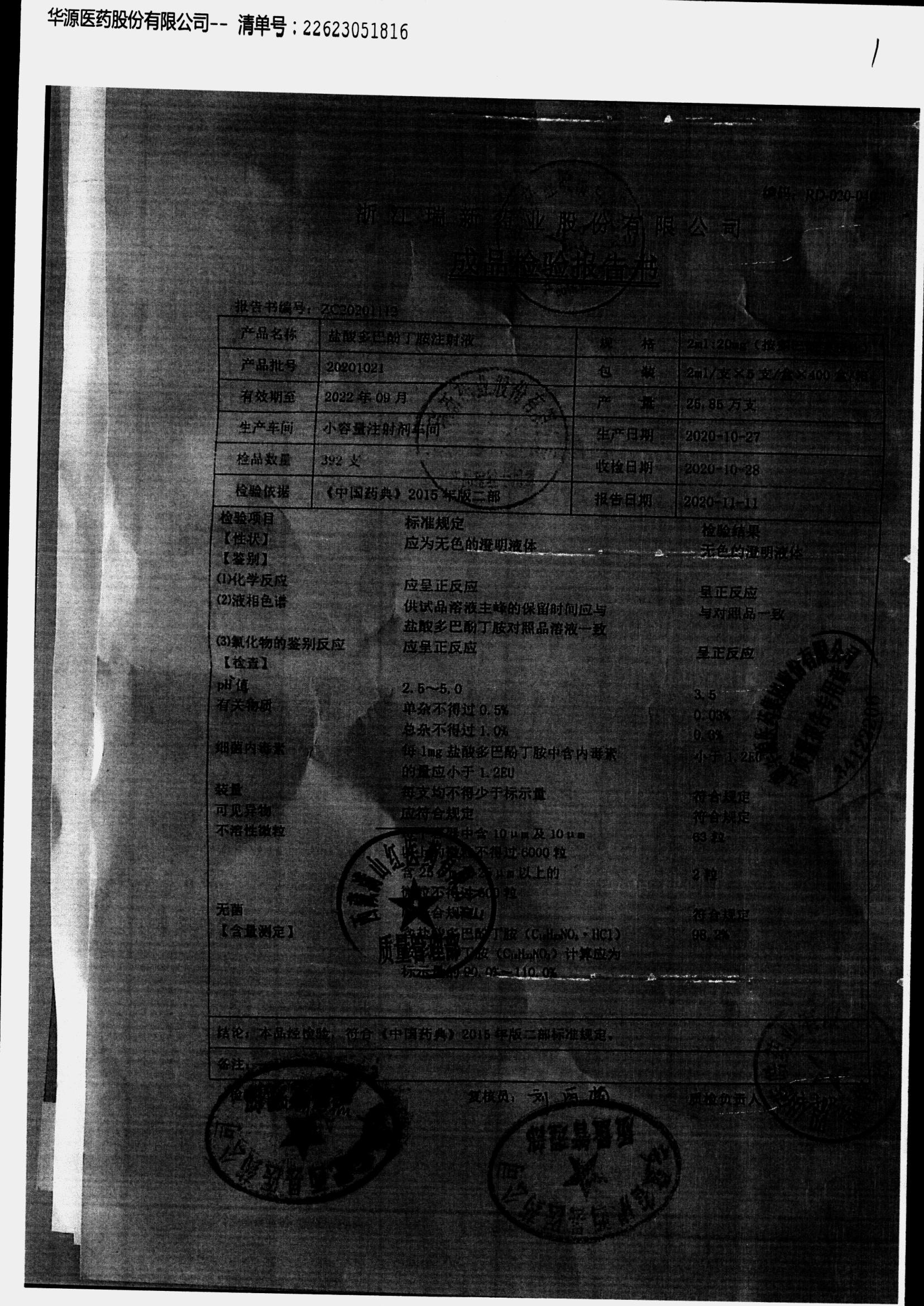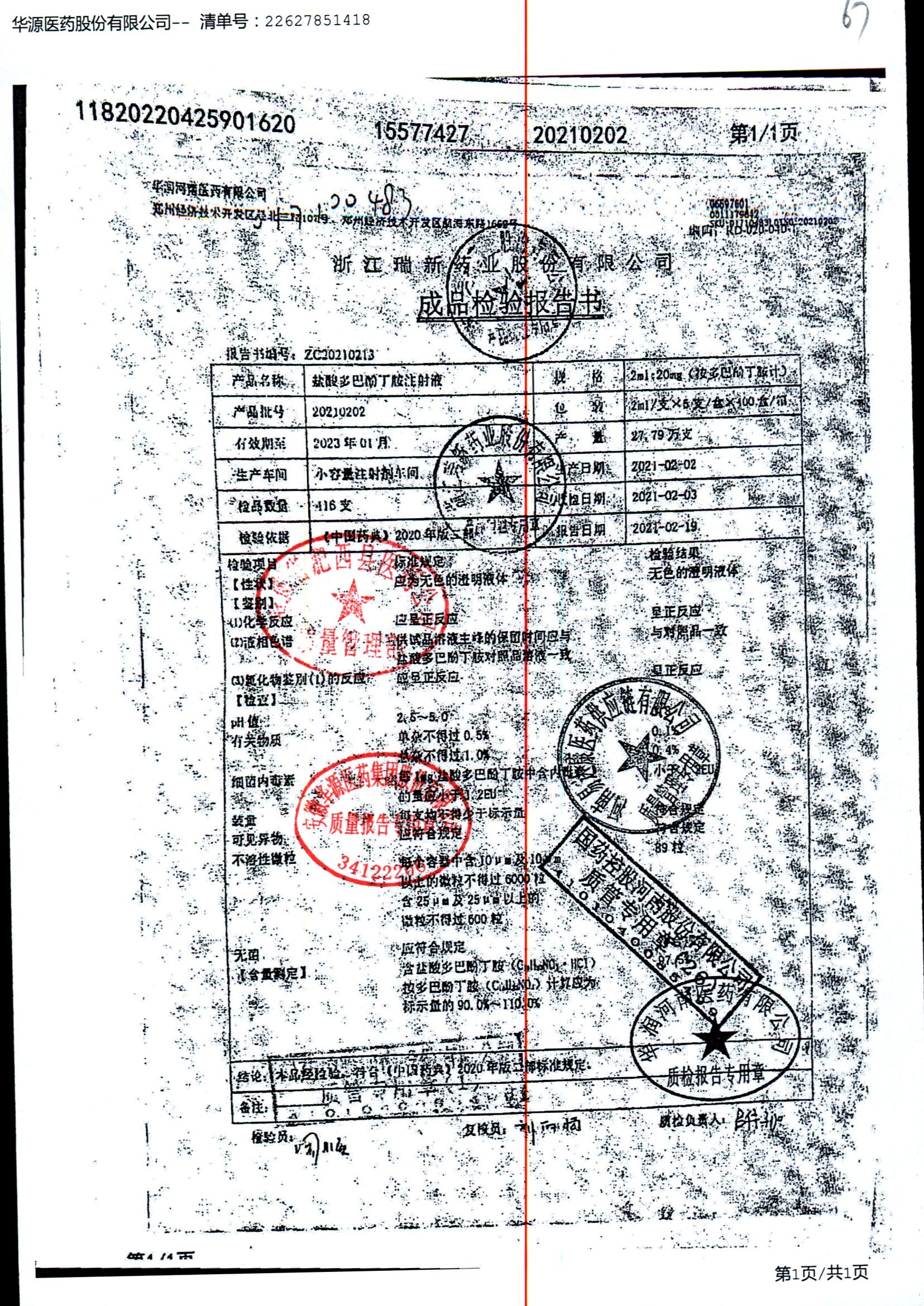 盐酸多巴酚丁胺注射液 | 2ml | 20201021/2 | 查看详情 |