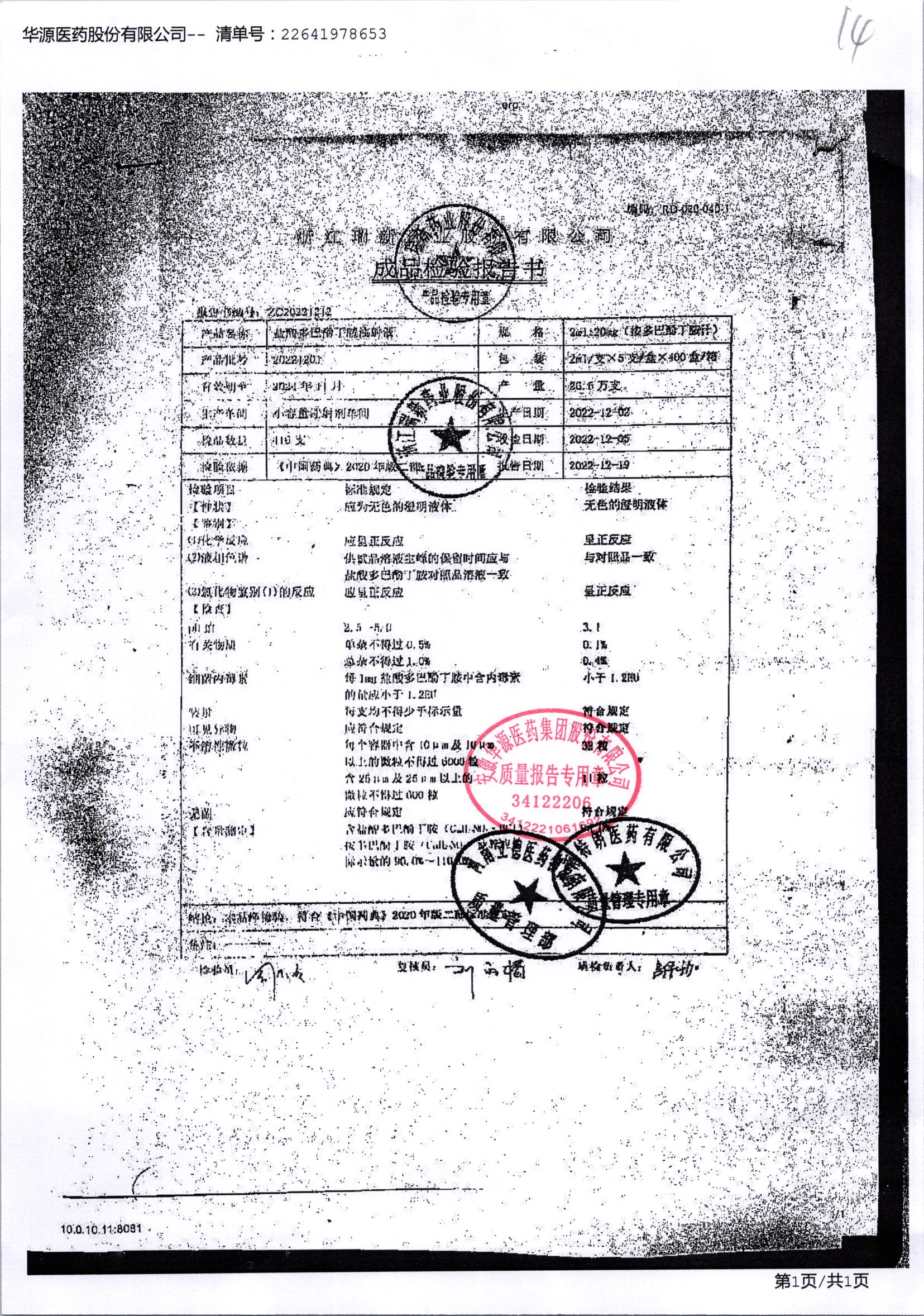 盐酸多巴酚丁胺注射液 | 2ml | 20221201 | 查看详情 |