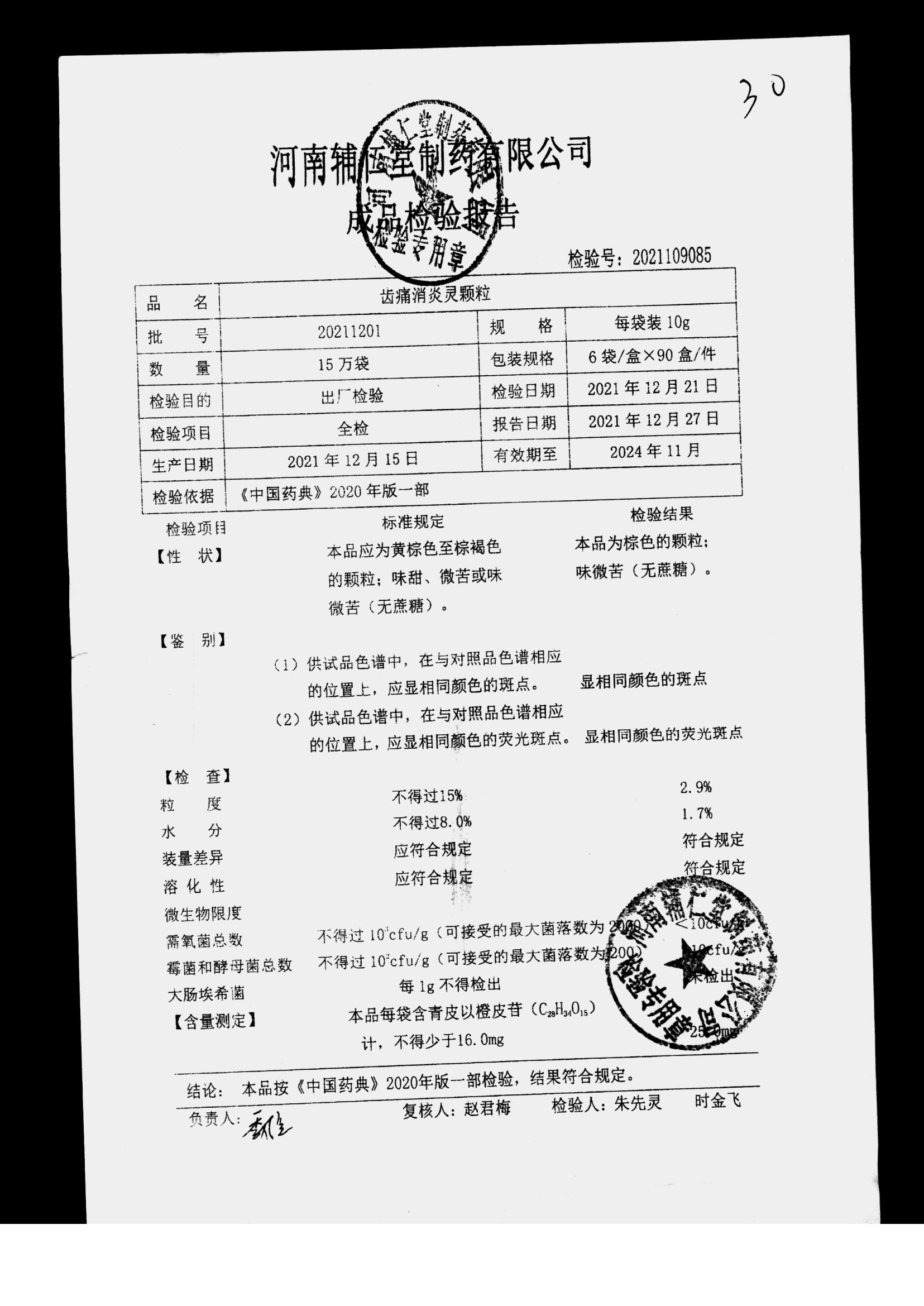 药检报告