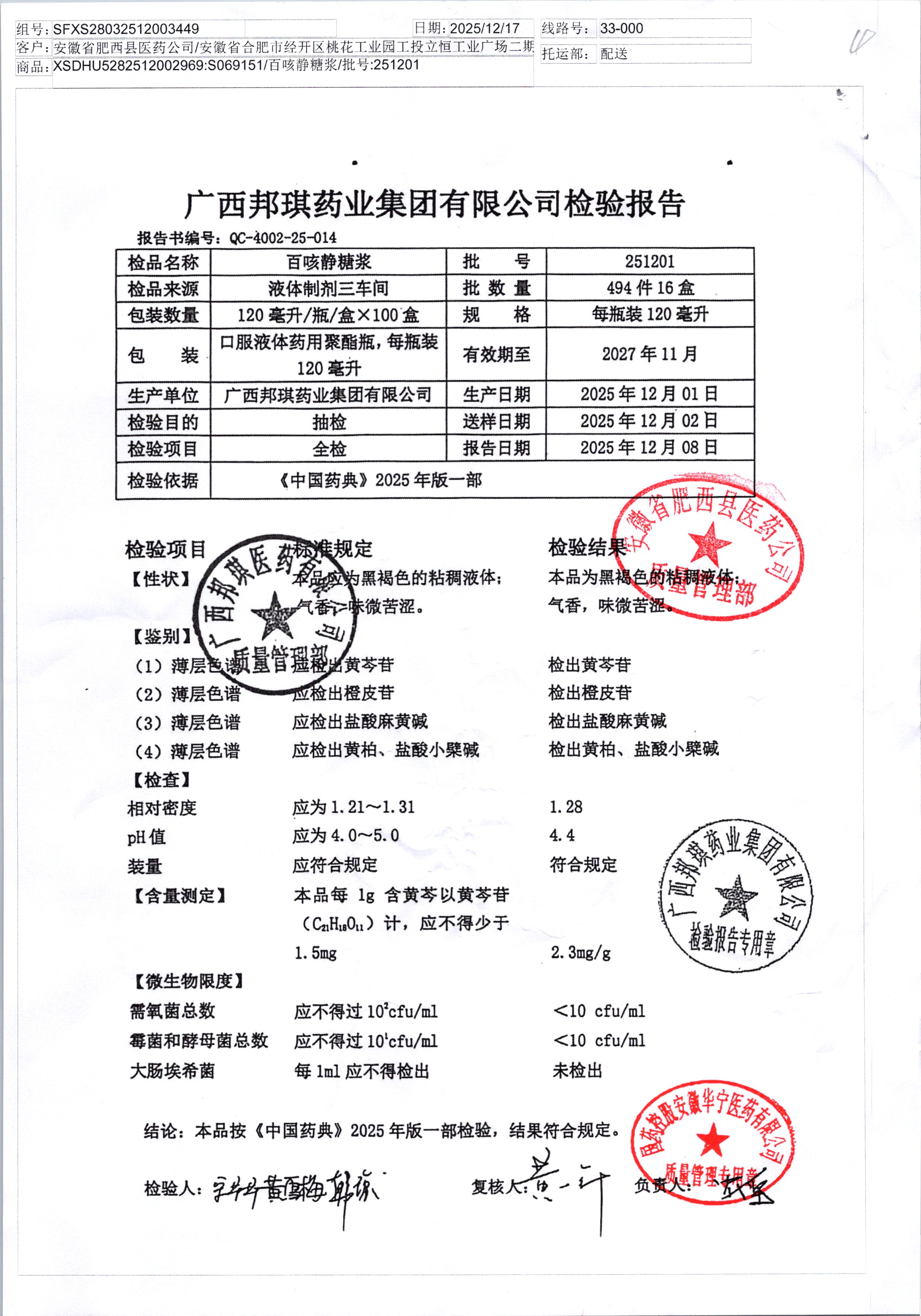药检报告