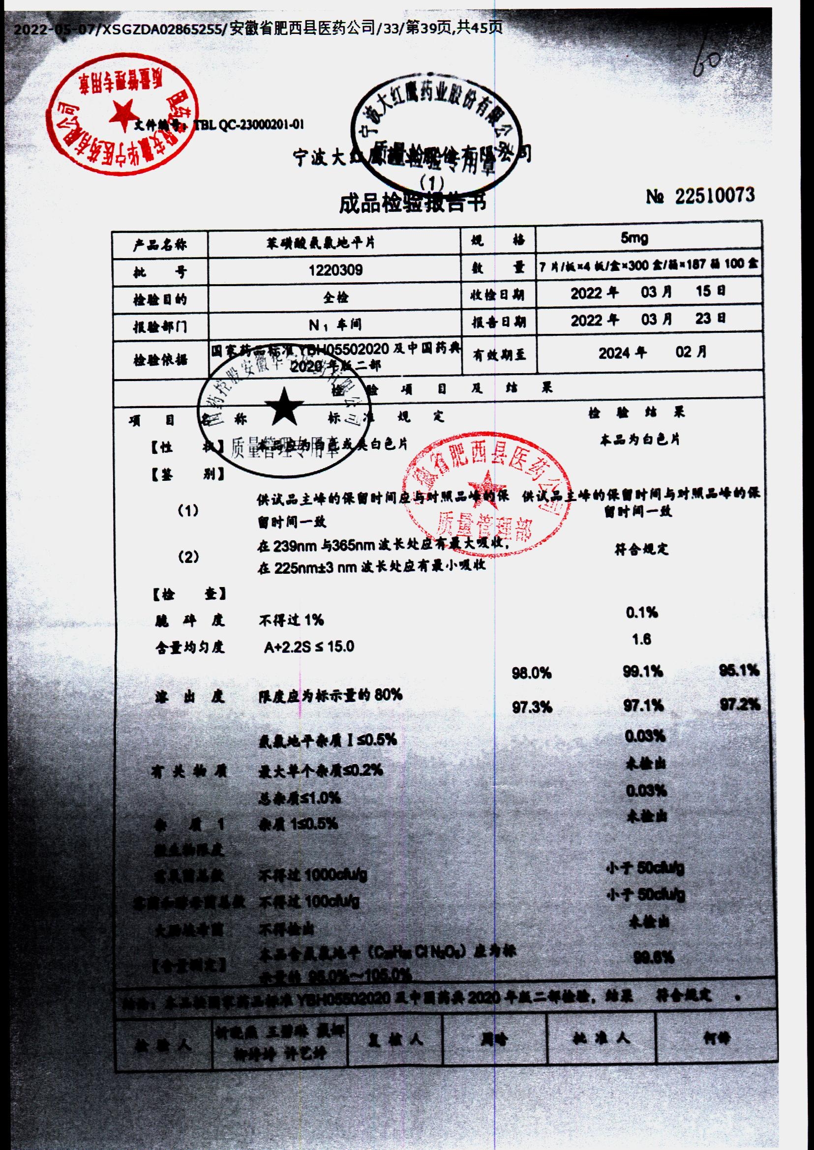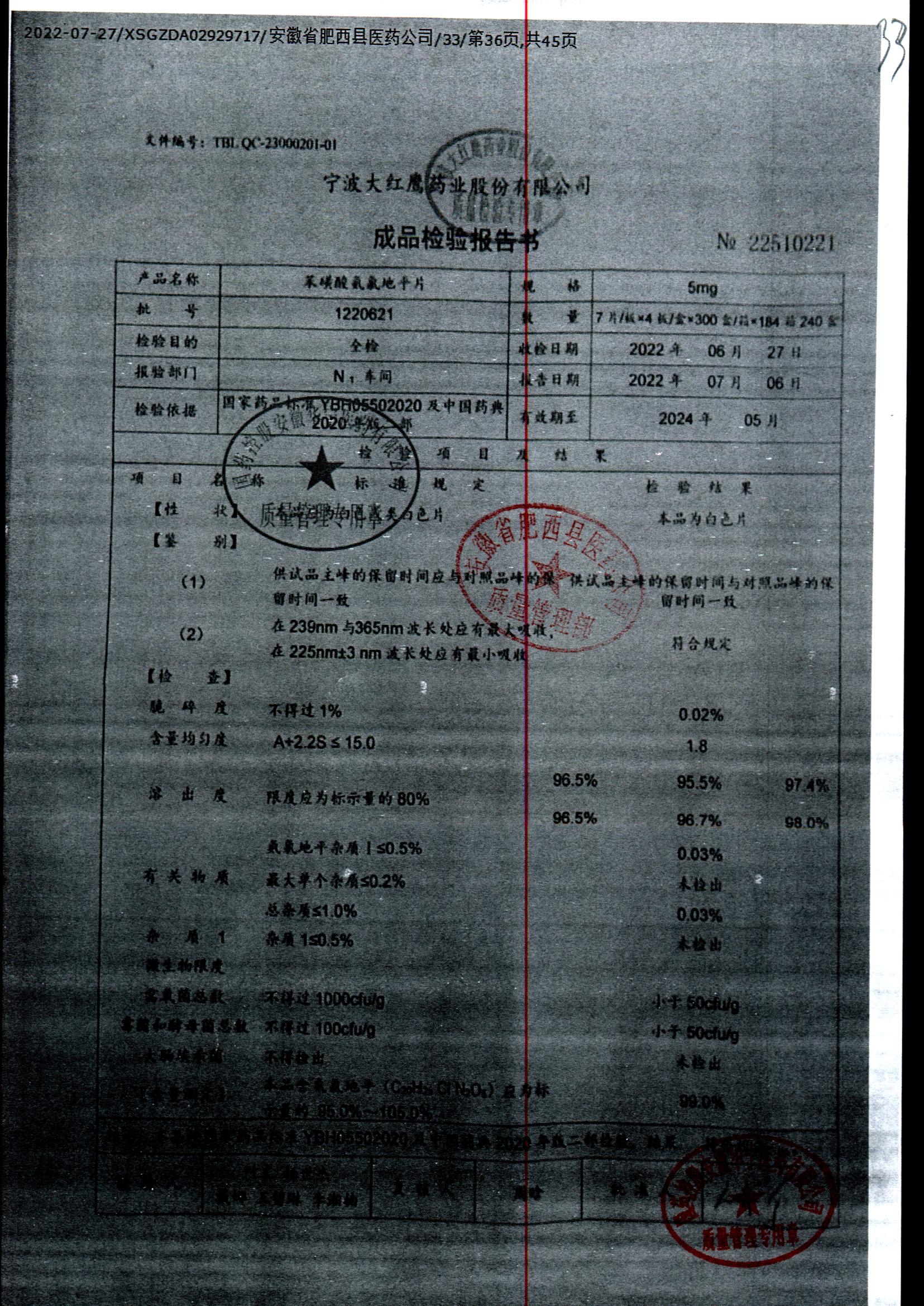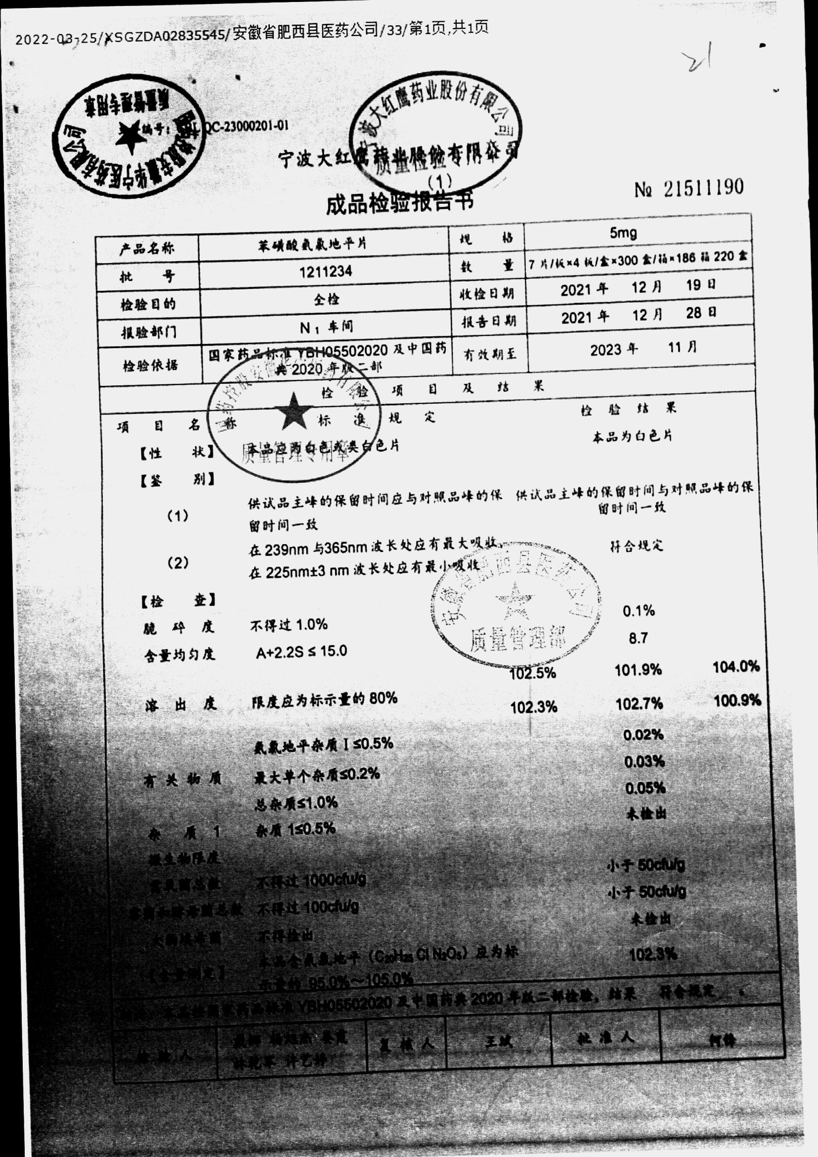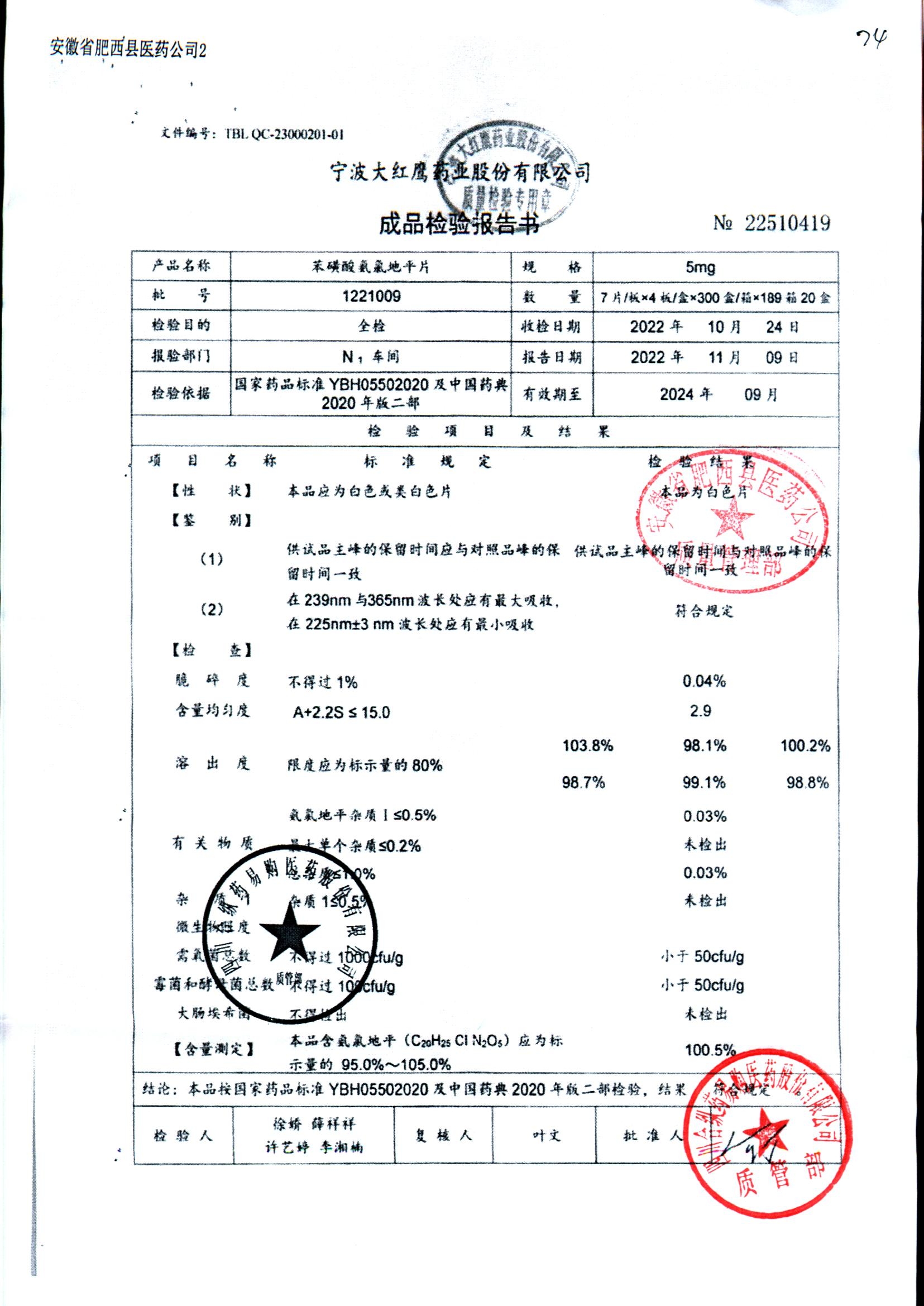 苯磺酸氨氯地平片 | 5mg | 1220621 | 查看详情 |