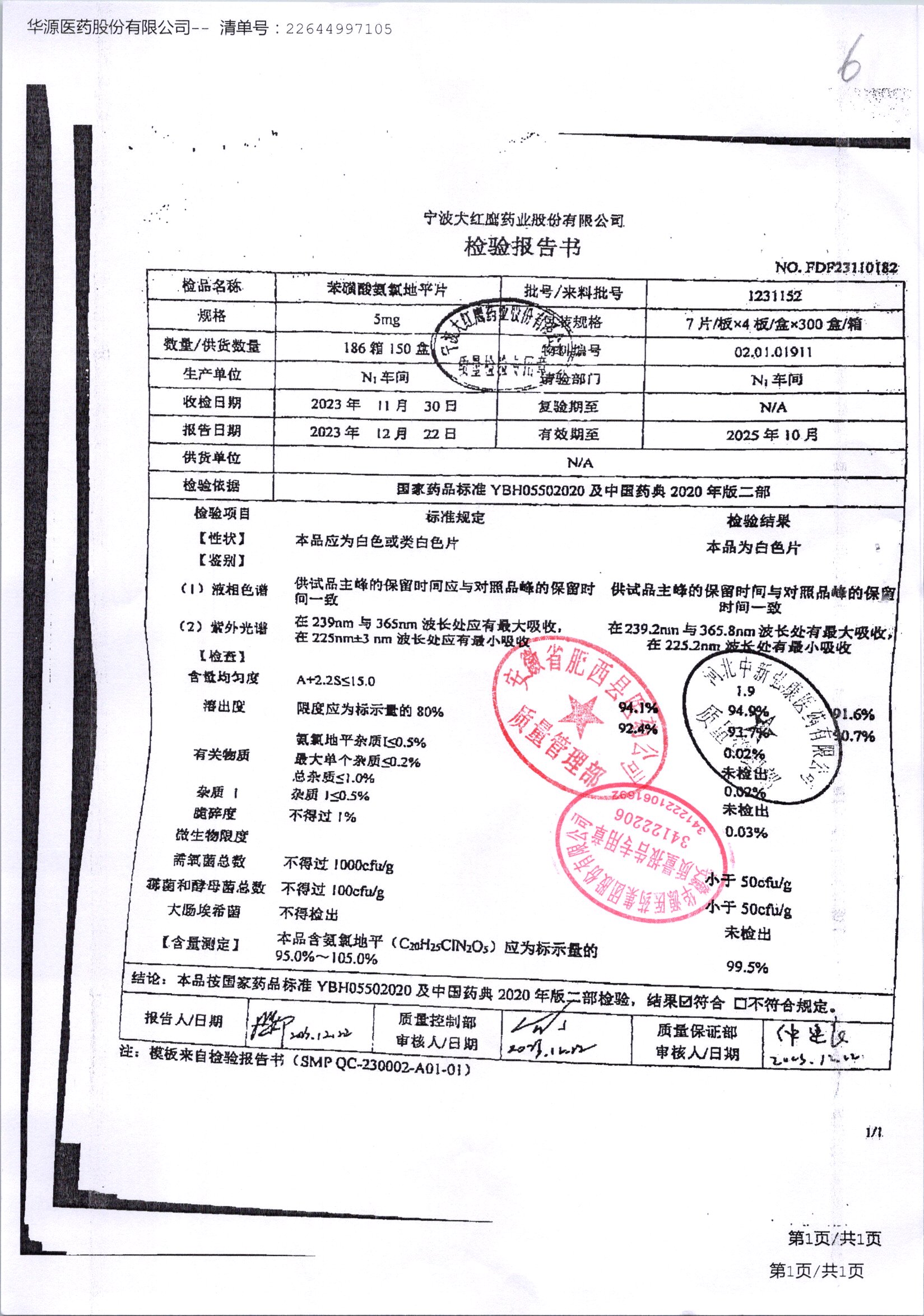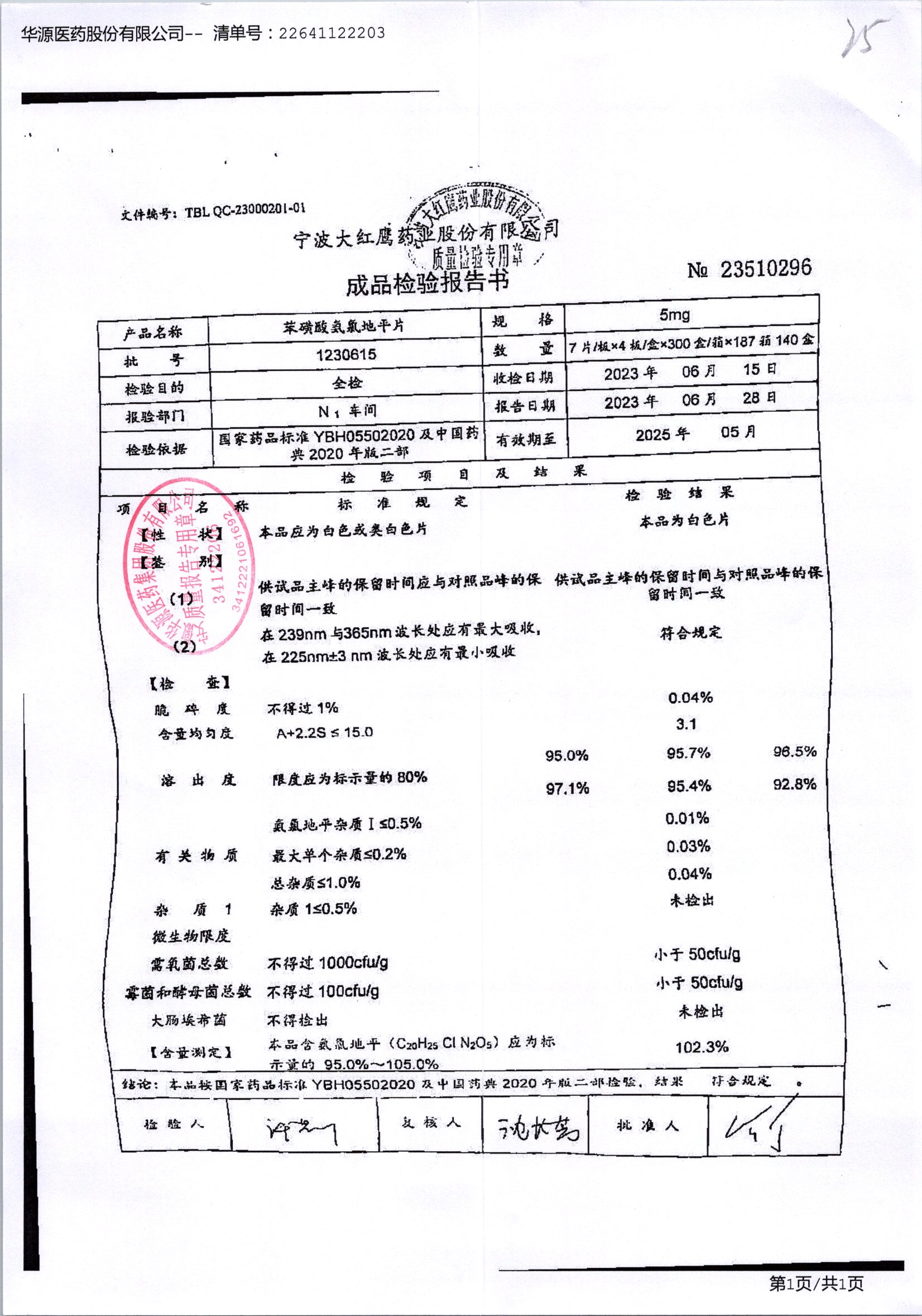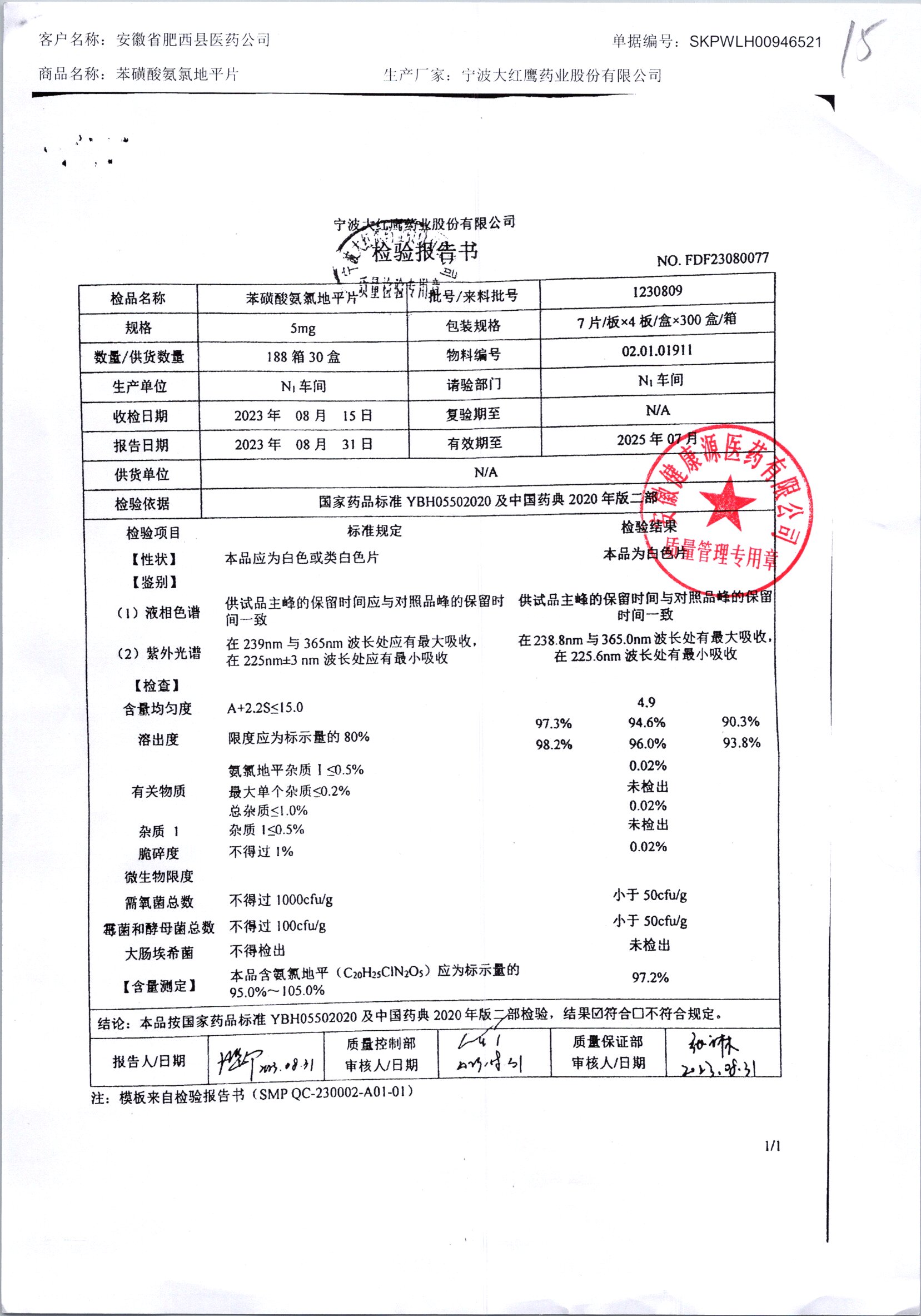 苯磺酸氨氯地平片 | 5mg | 1230809 | 查看详情 |