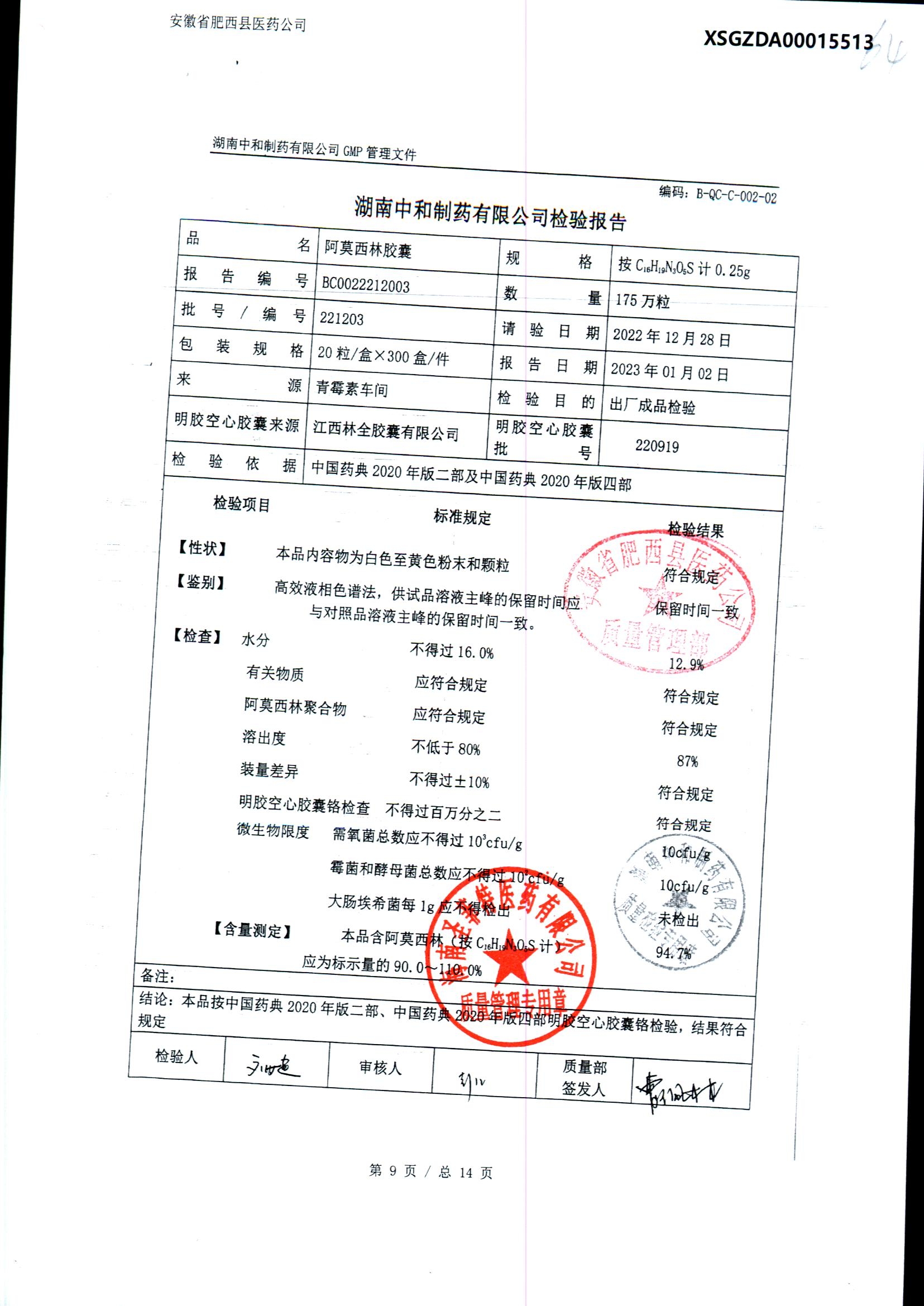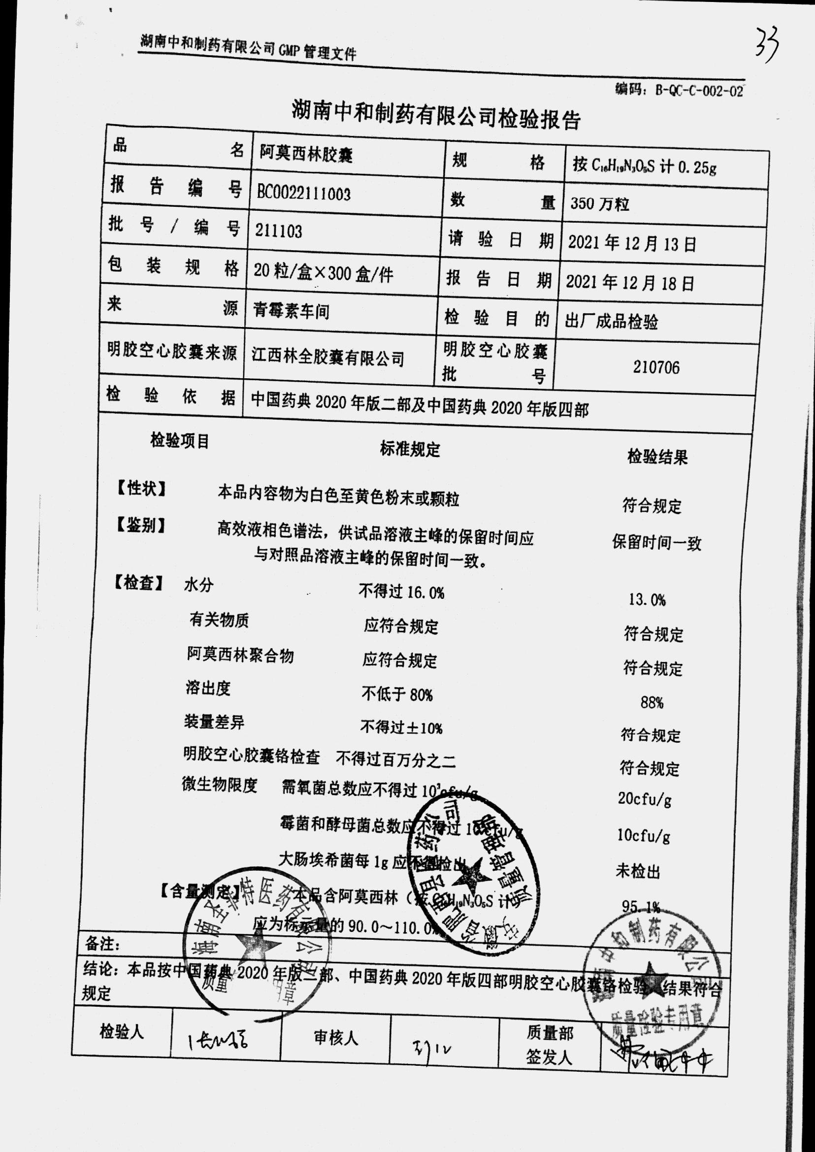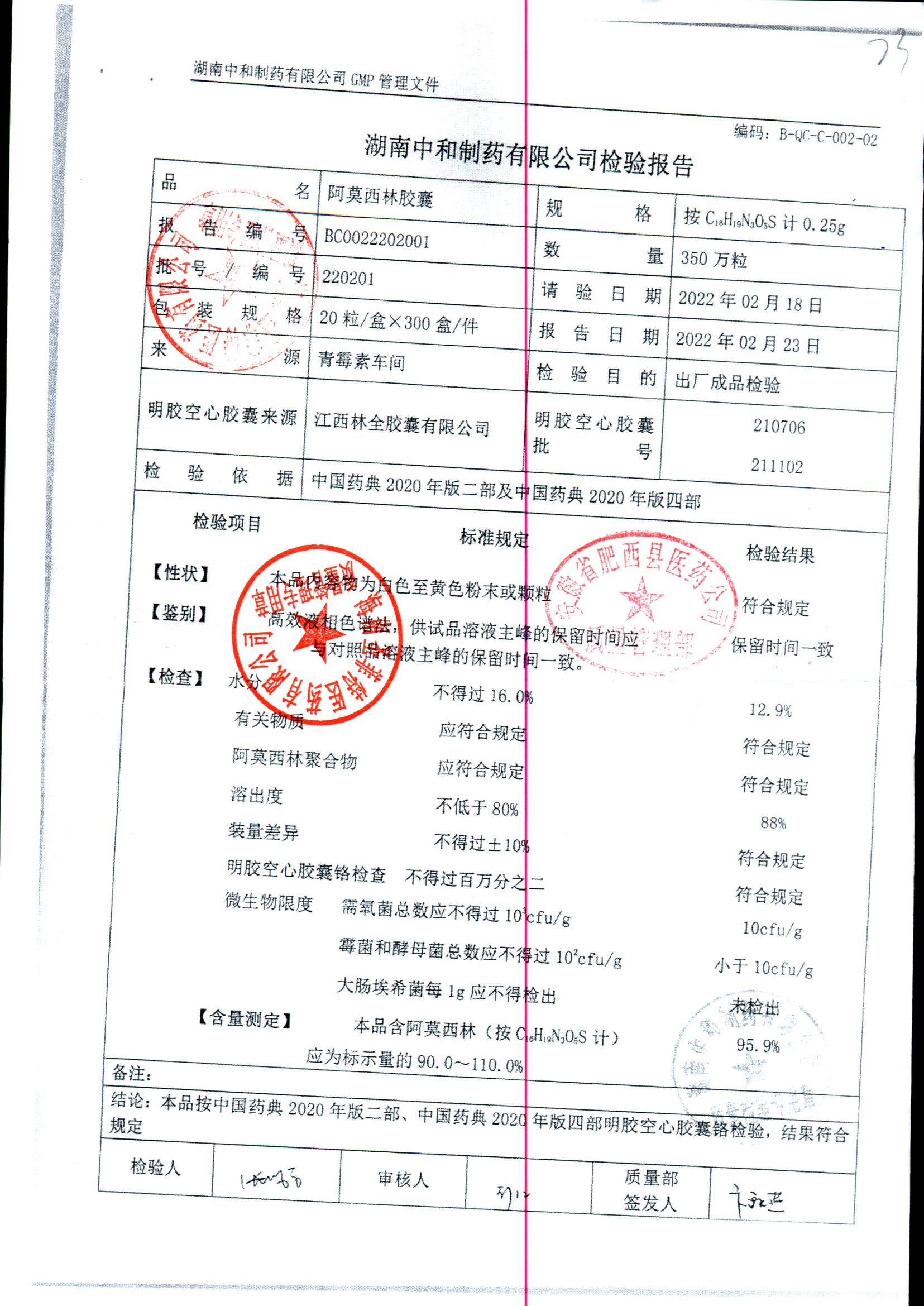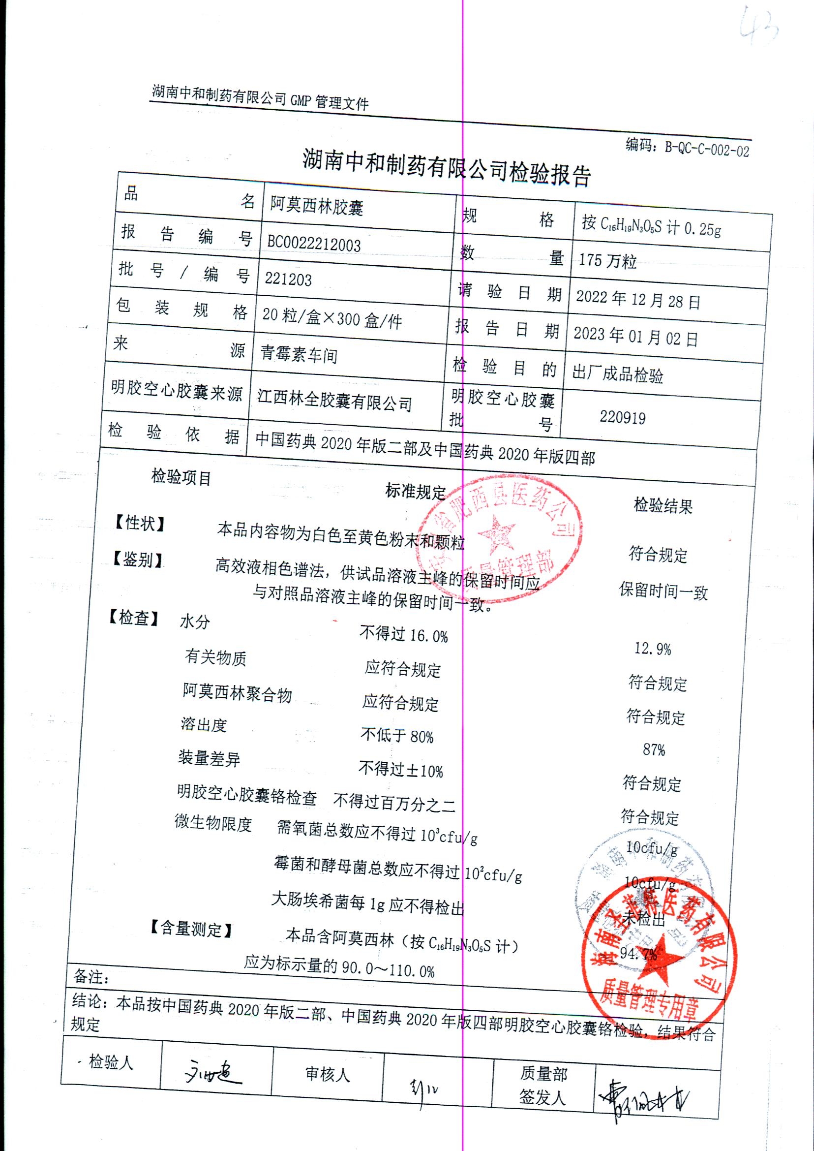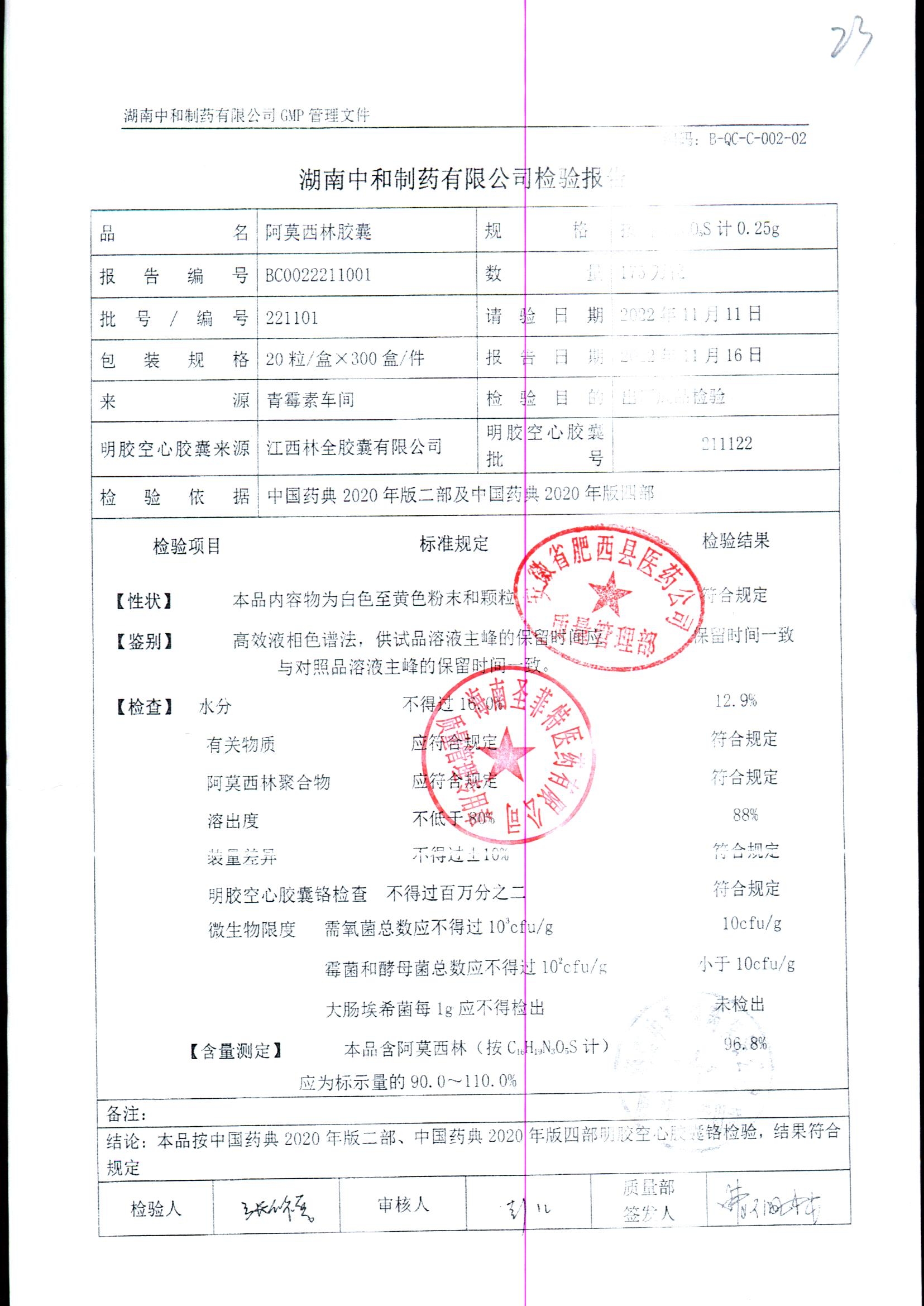 阿莫西林胶囊 | 0.25x20粒 | 221203/2 | 查看详情 |