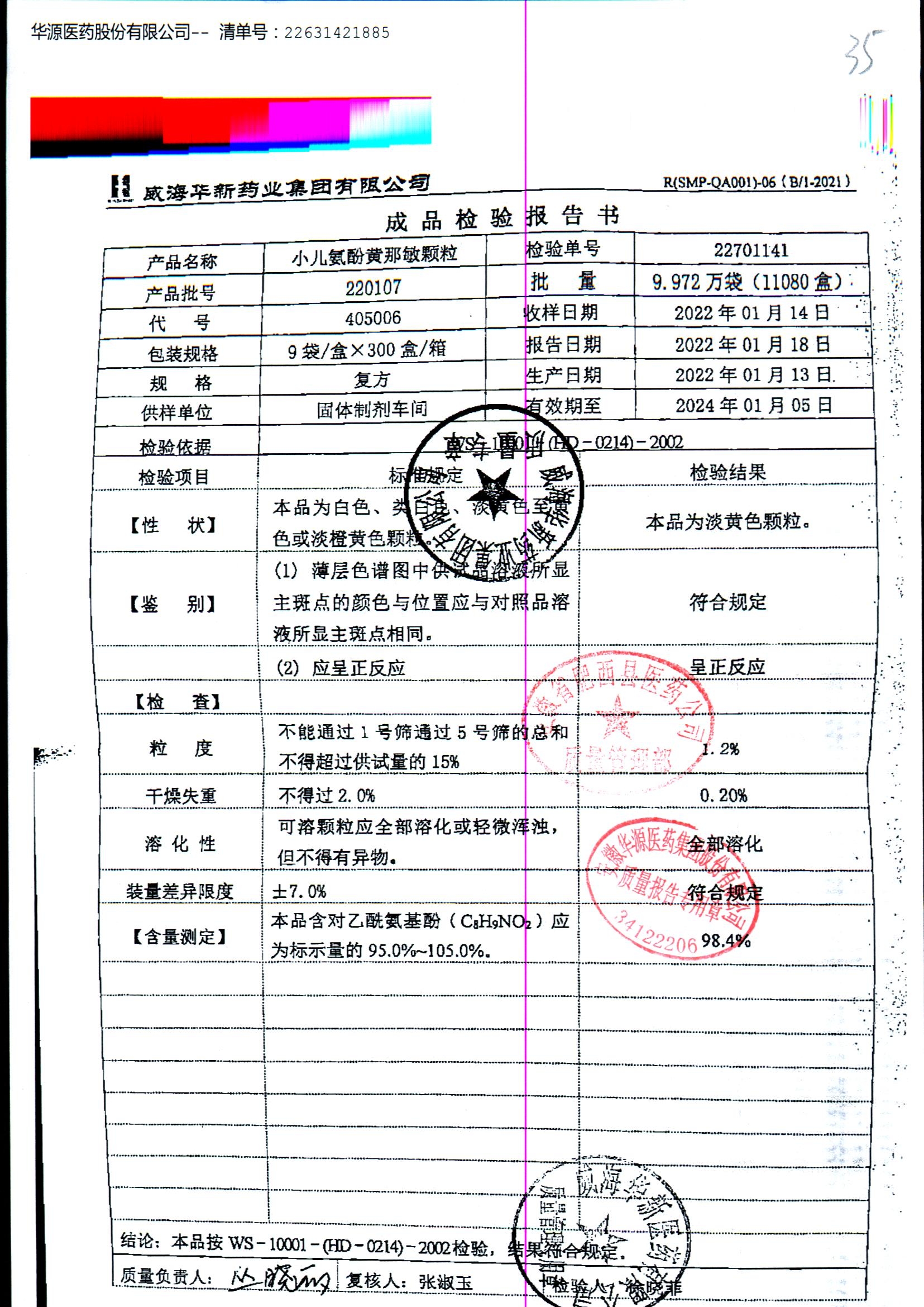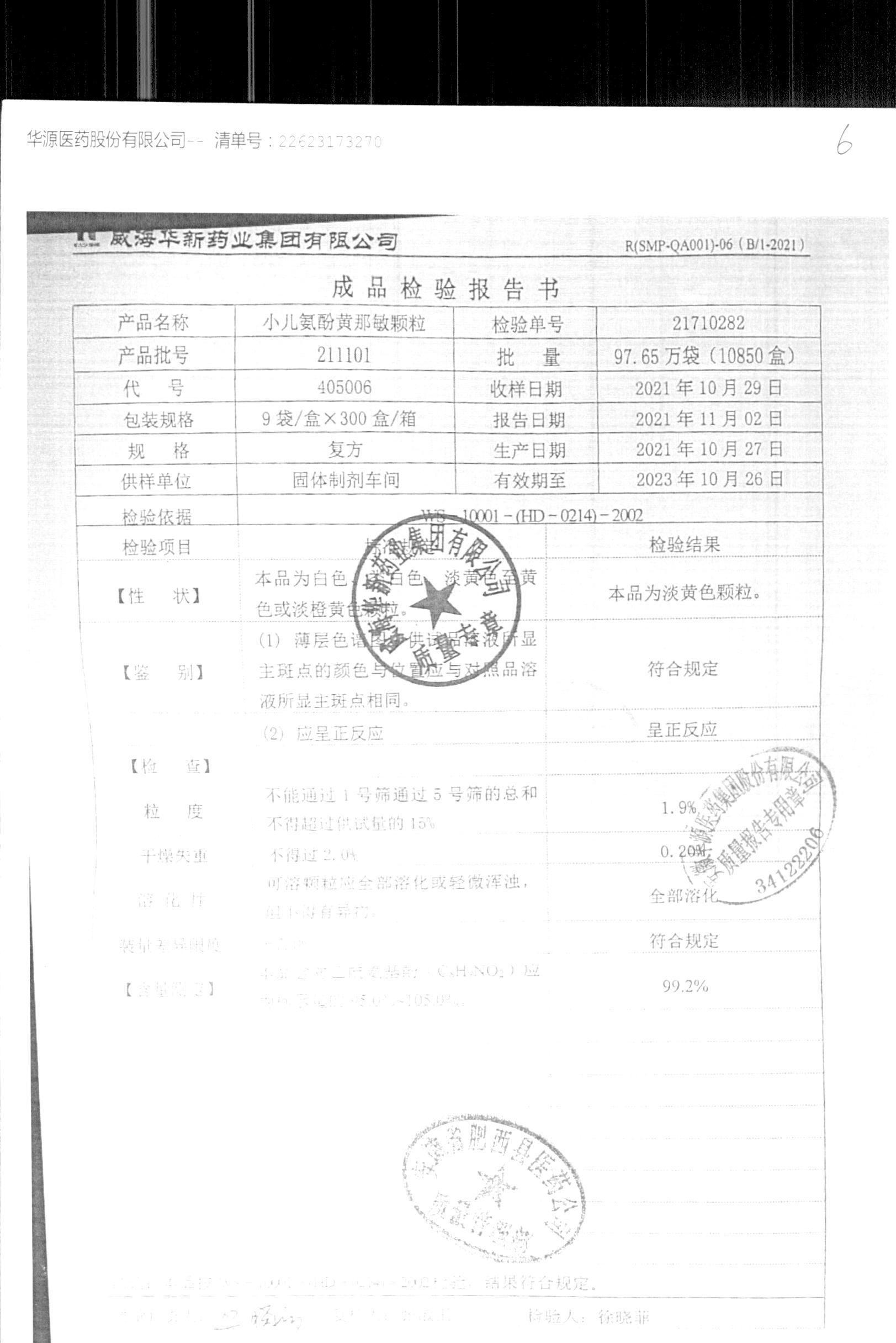 小儿氨酚黄那敏颗粒 | 9袋 | 211107 | 查看详情 |