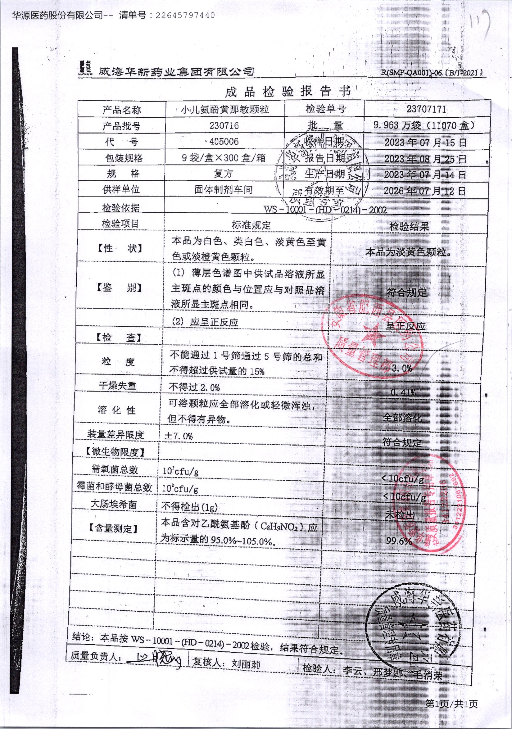 小儿氨酚黄那敏颗粒 | 9袋 | 230716 | 查看详情 |