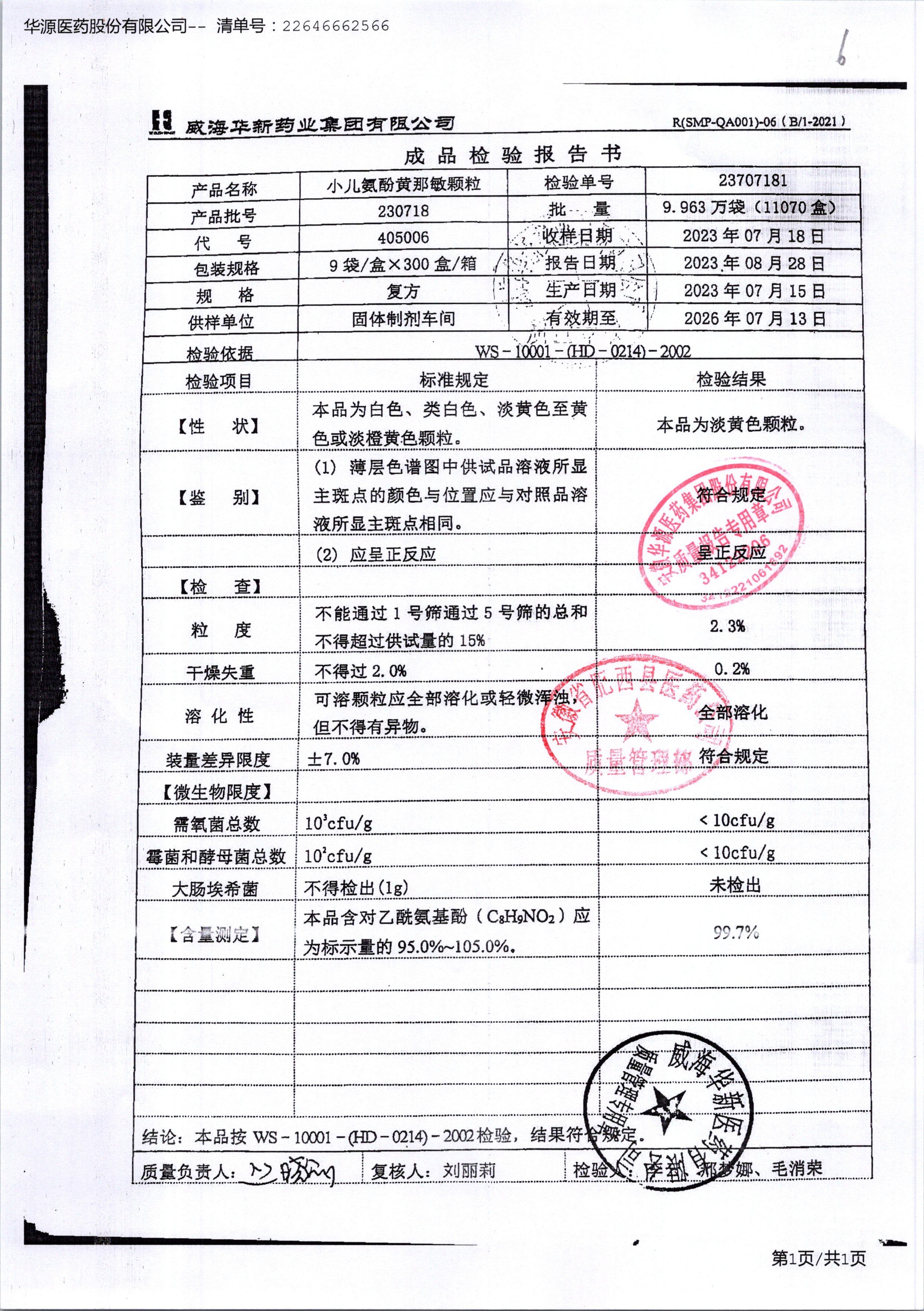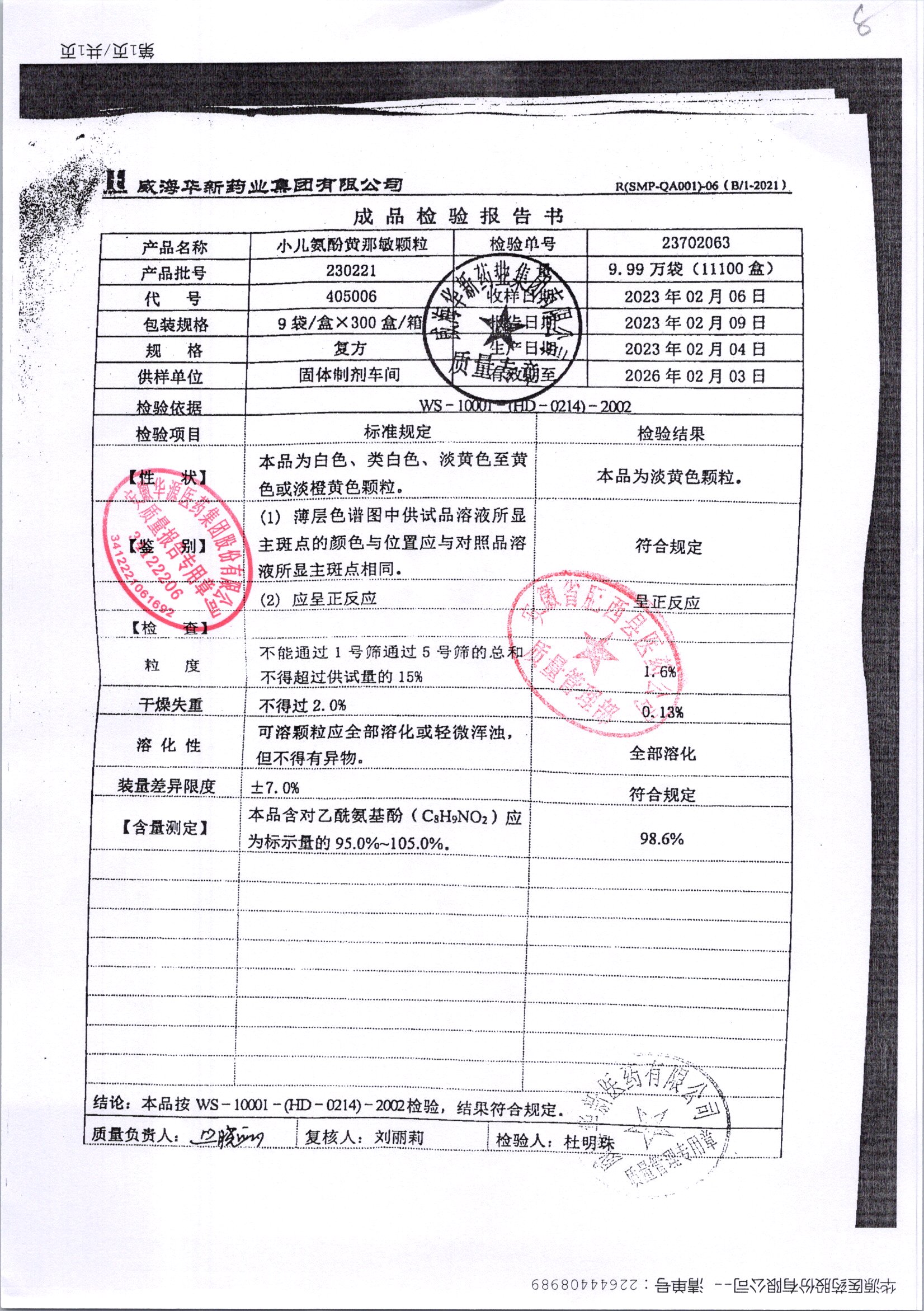小儿氨酚黄那敏颗粒 | 9袋 | 230719 | 查看详情 |