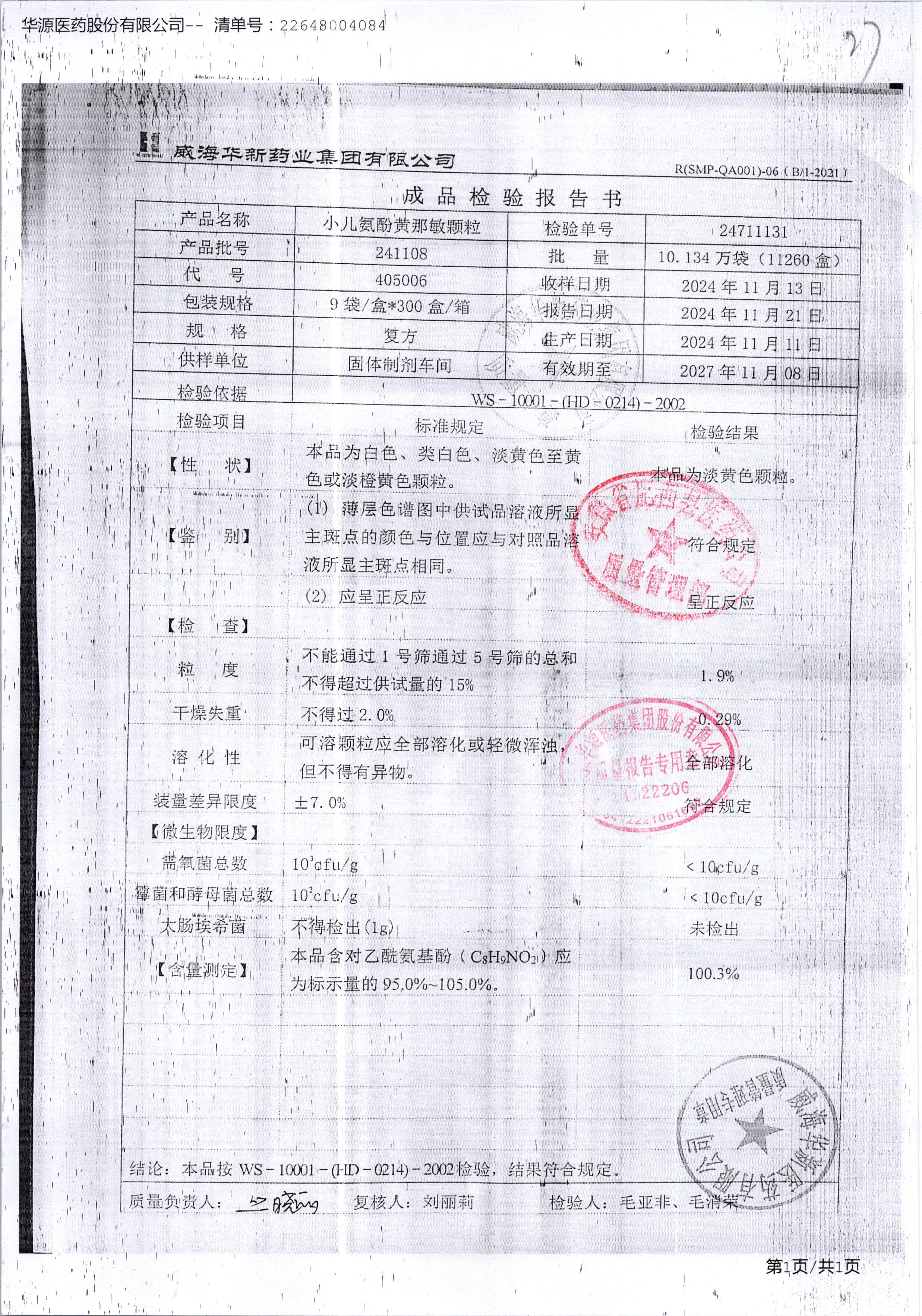 小儿氨酚黄那敏颗粒 | 9袋 | 241108 | 查看详情 |