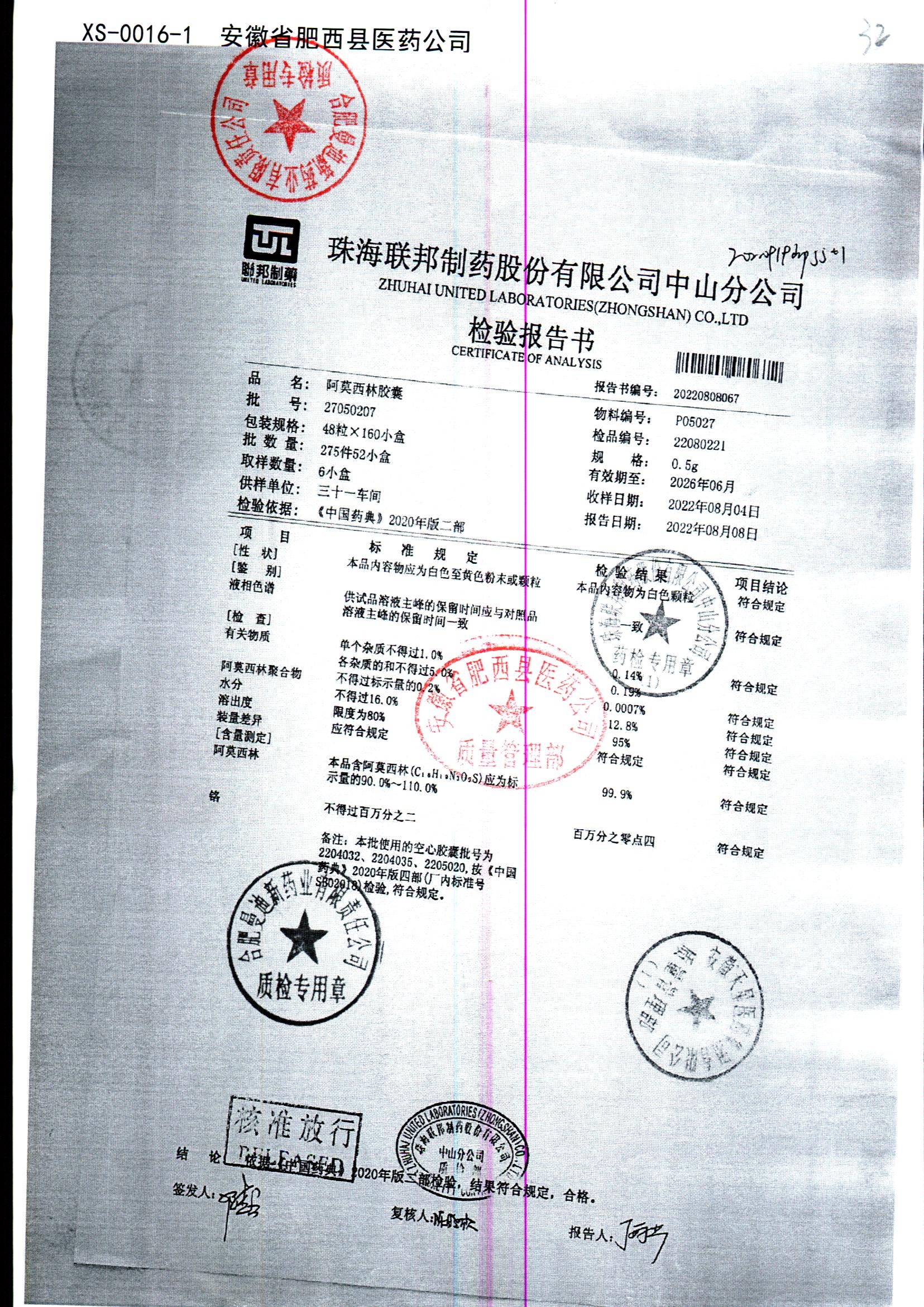 阿莫西林胶囊 | 48粒 | 27050207 | 查看详情 |