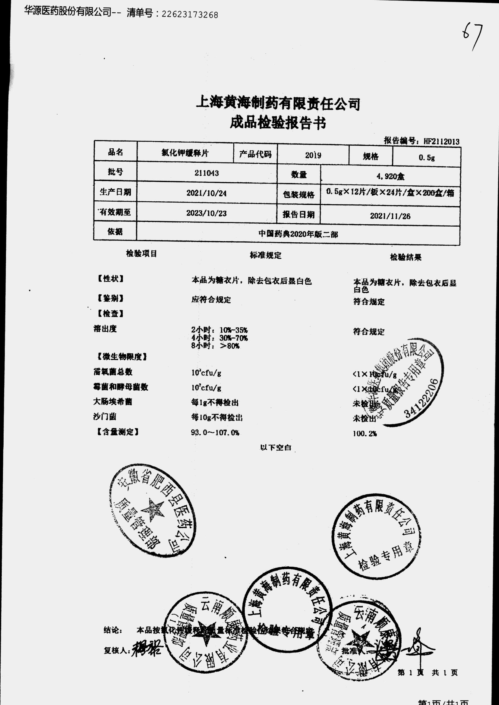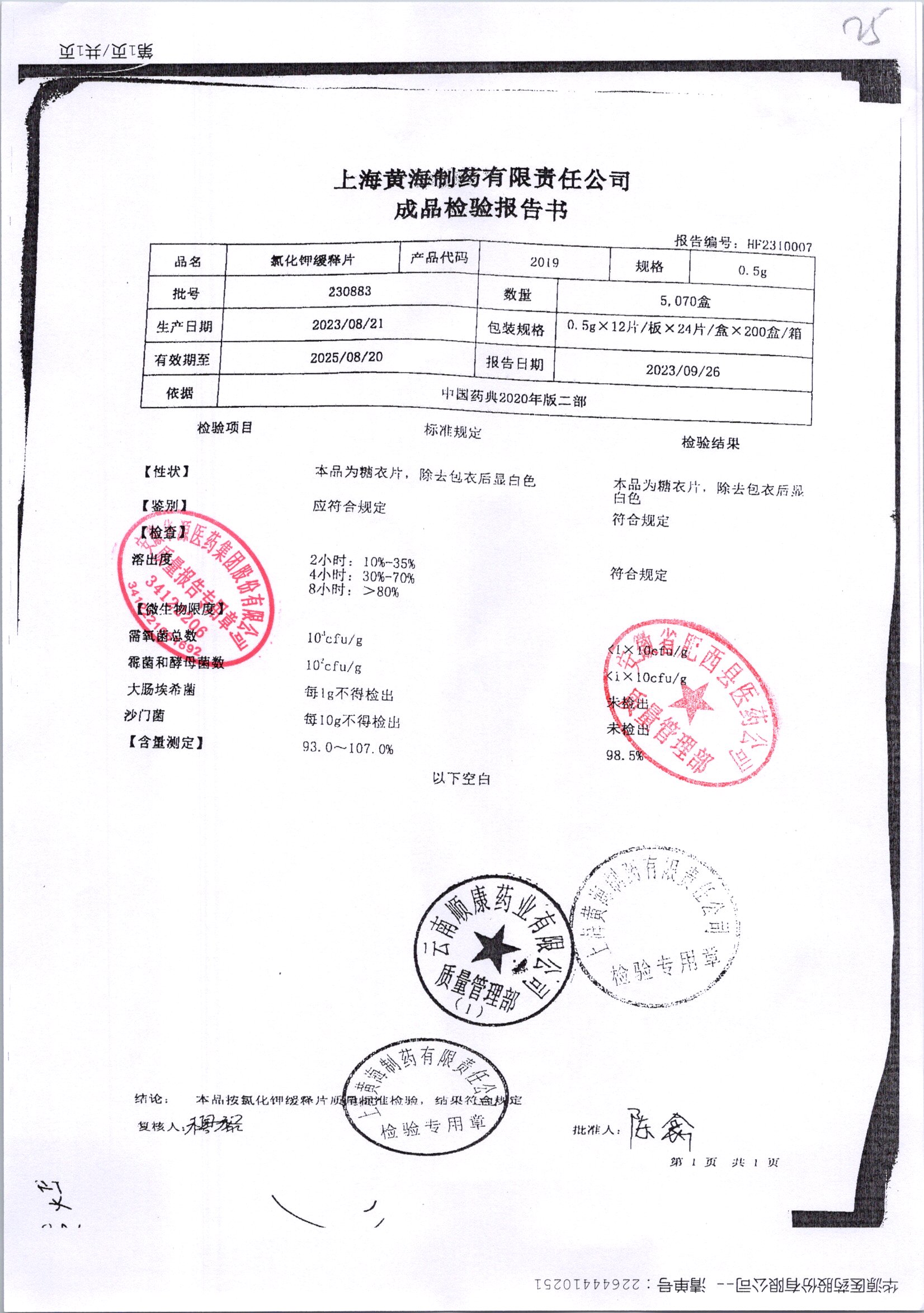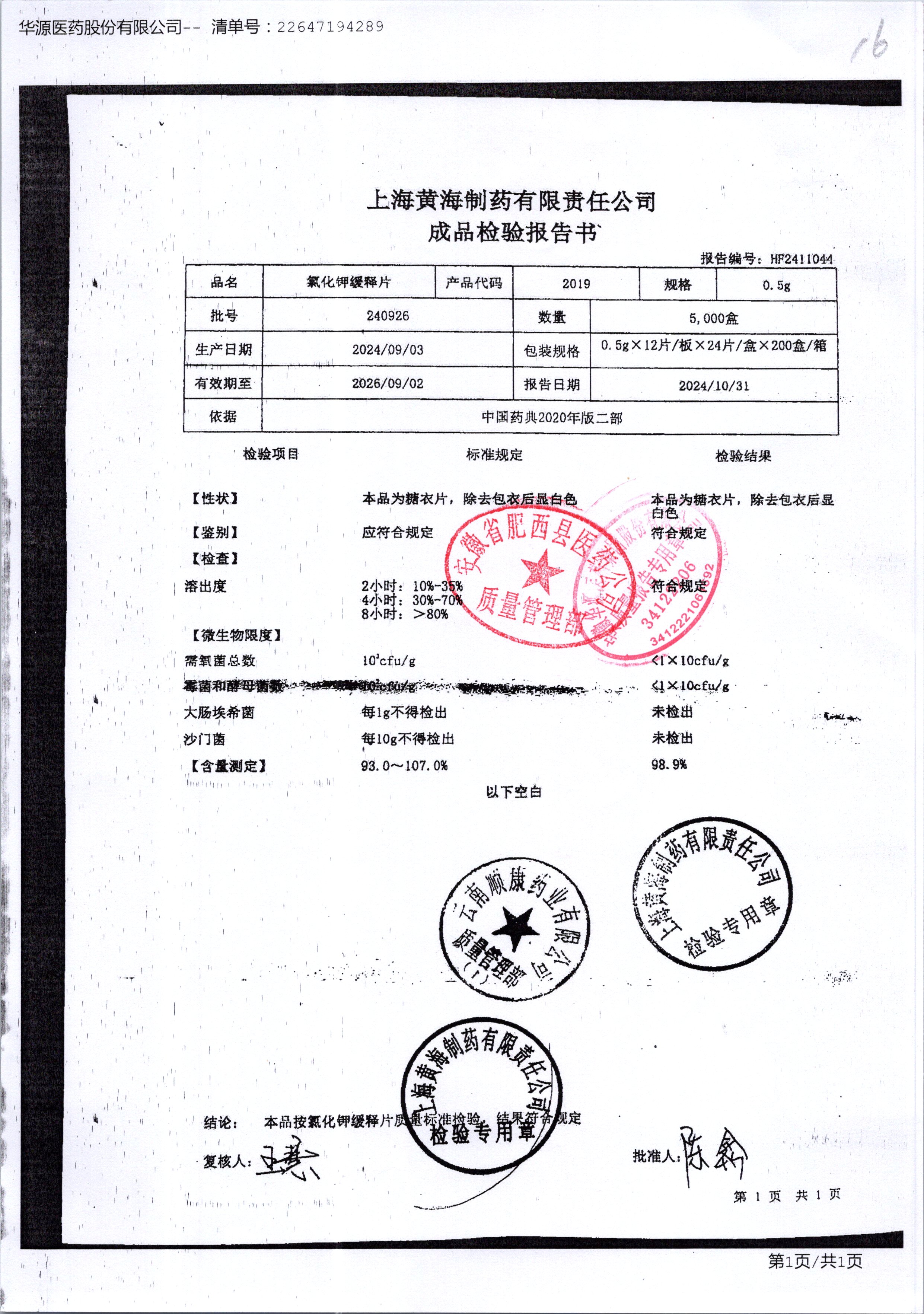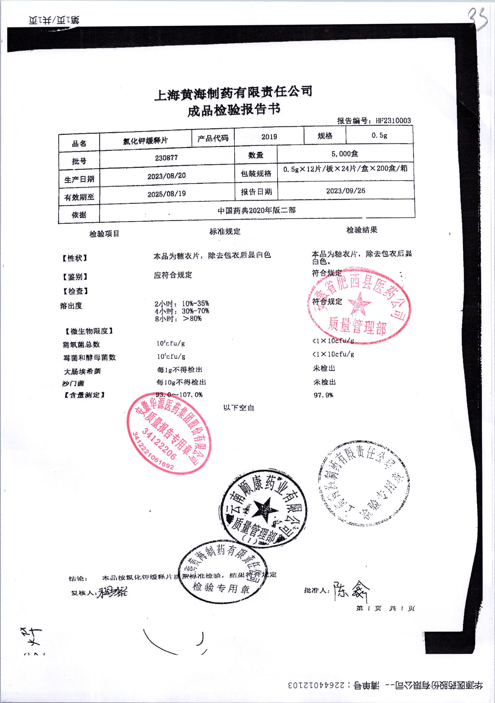 氯化钾缓释片 | 0.5gx12片/板x24片 | 240926 | 查看详情 |