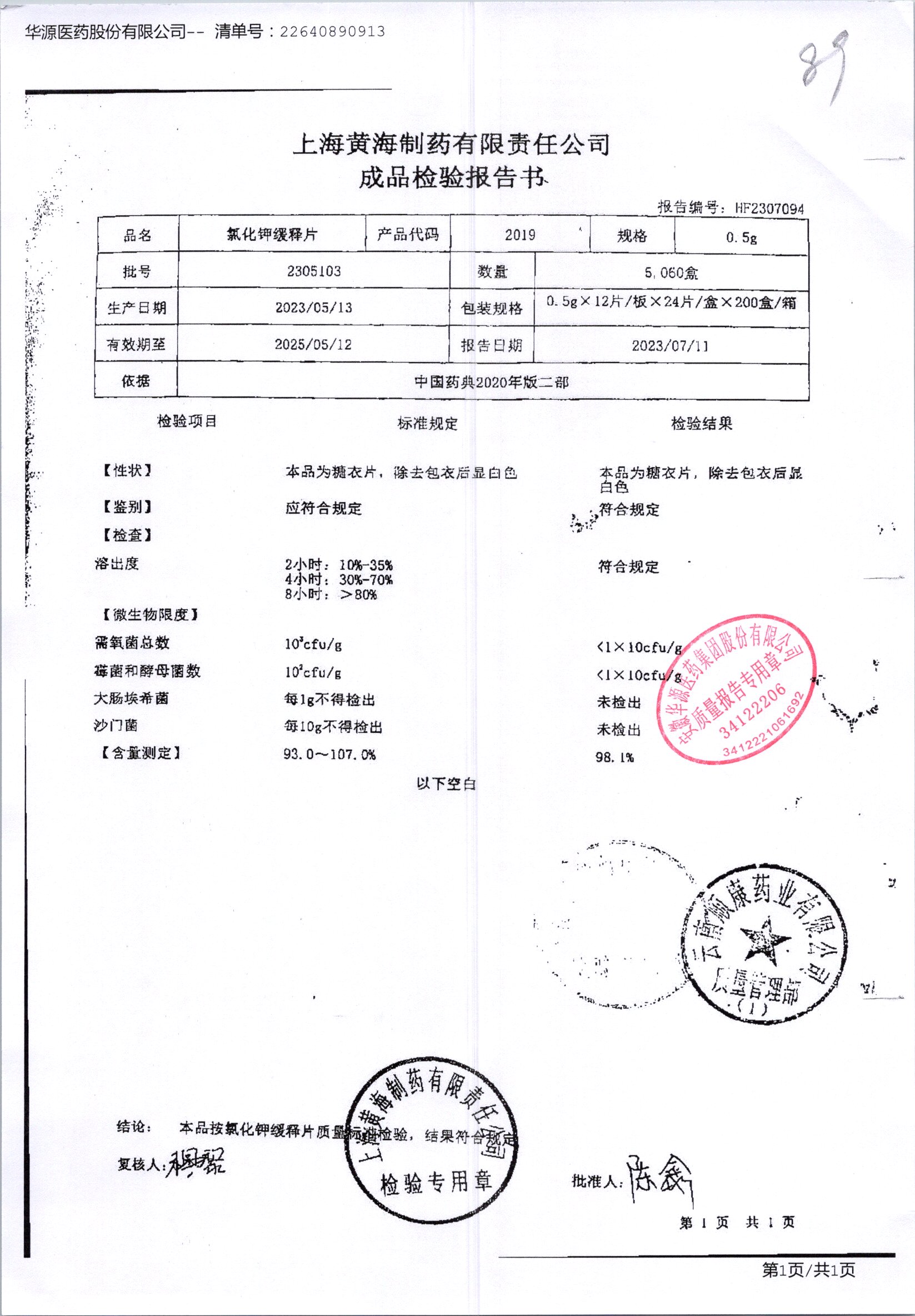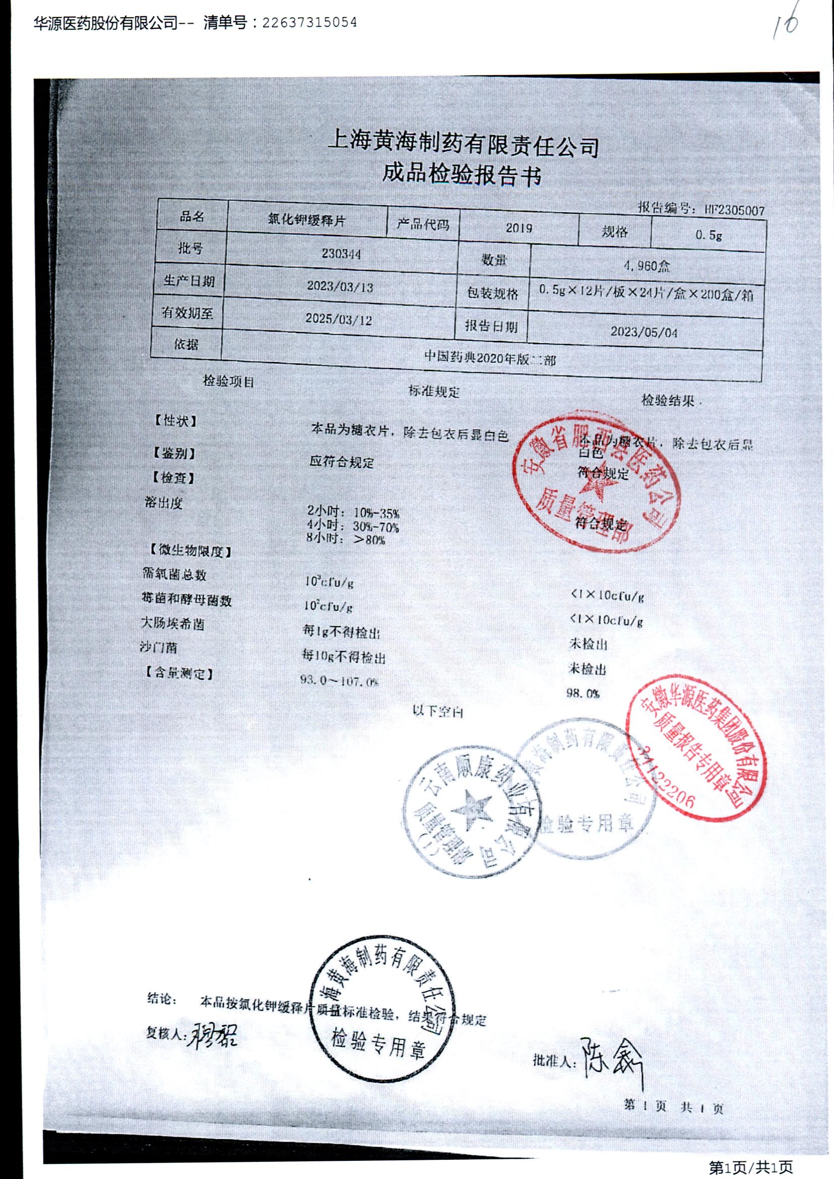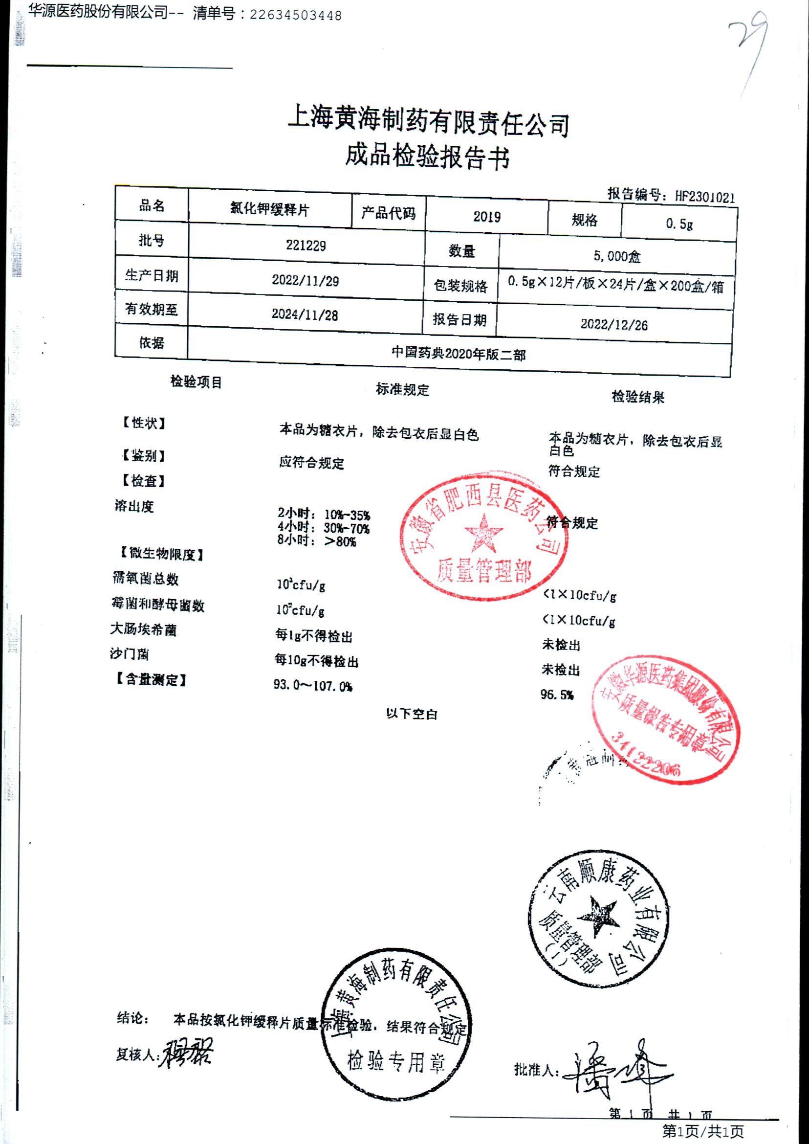 氯化钾缓释片 | 0.5gx12片/板x24片 | 240517 | 查看详情 |
