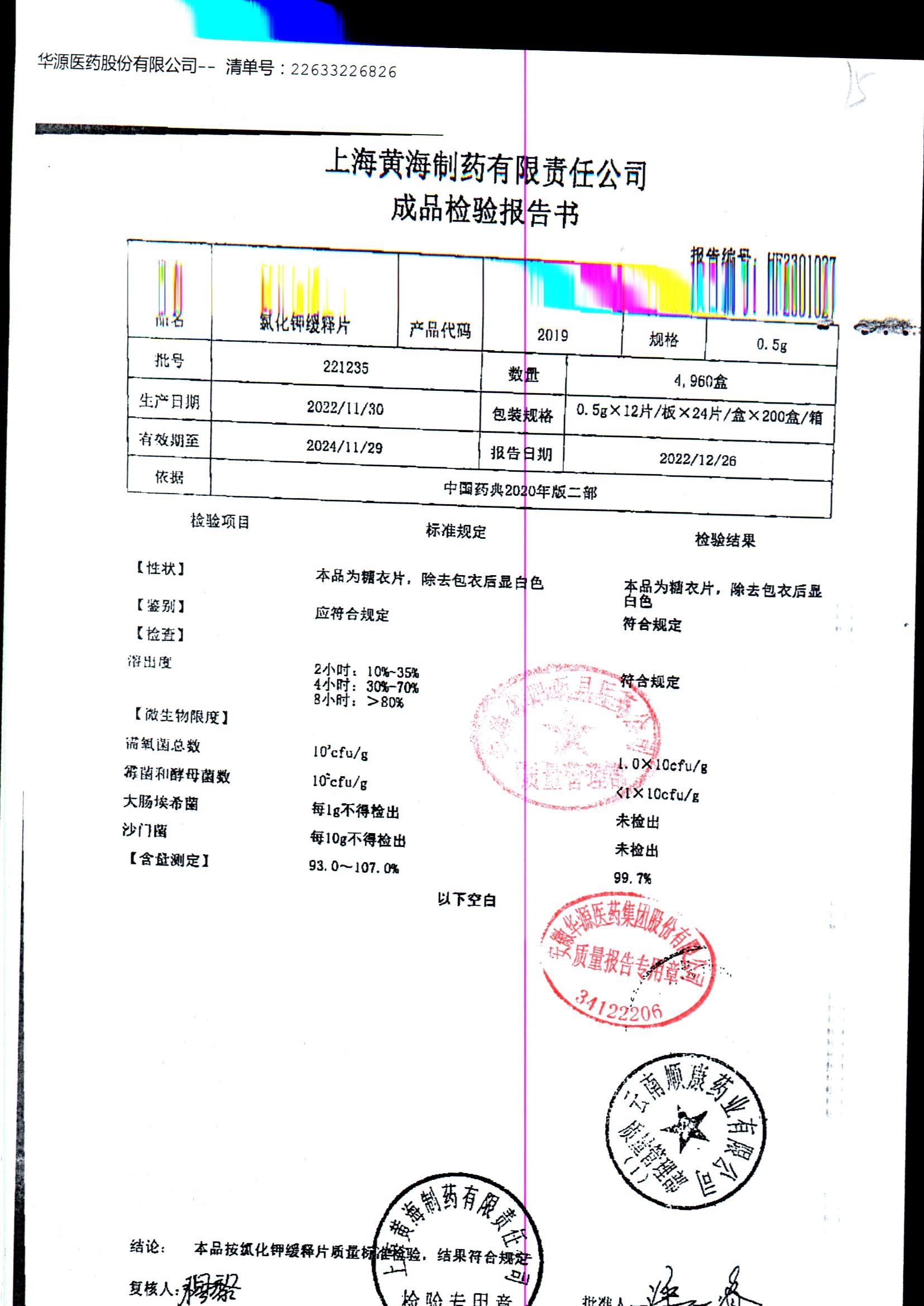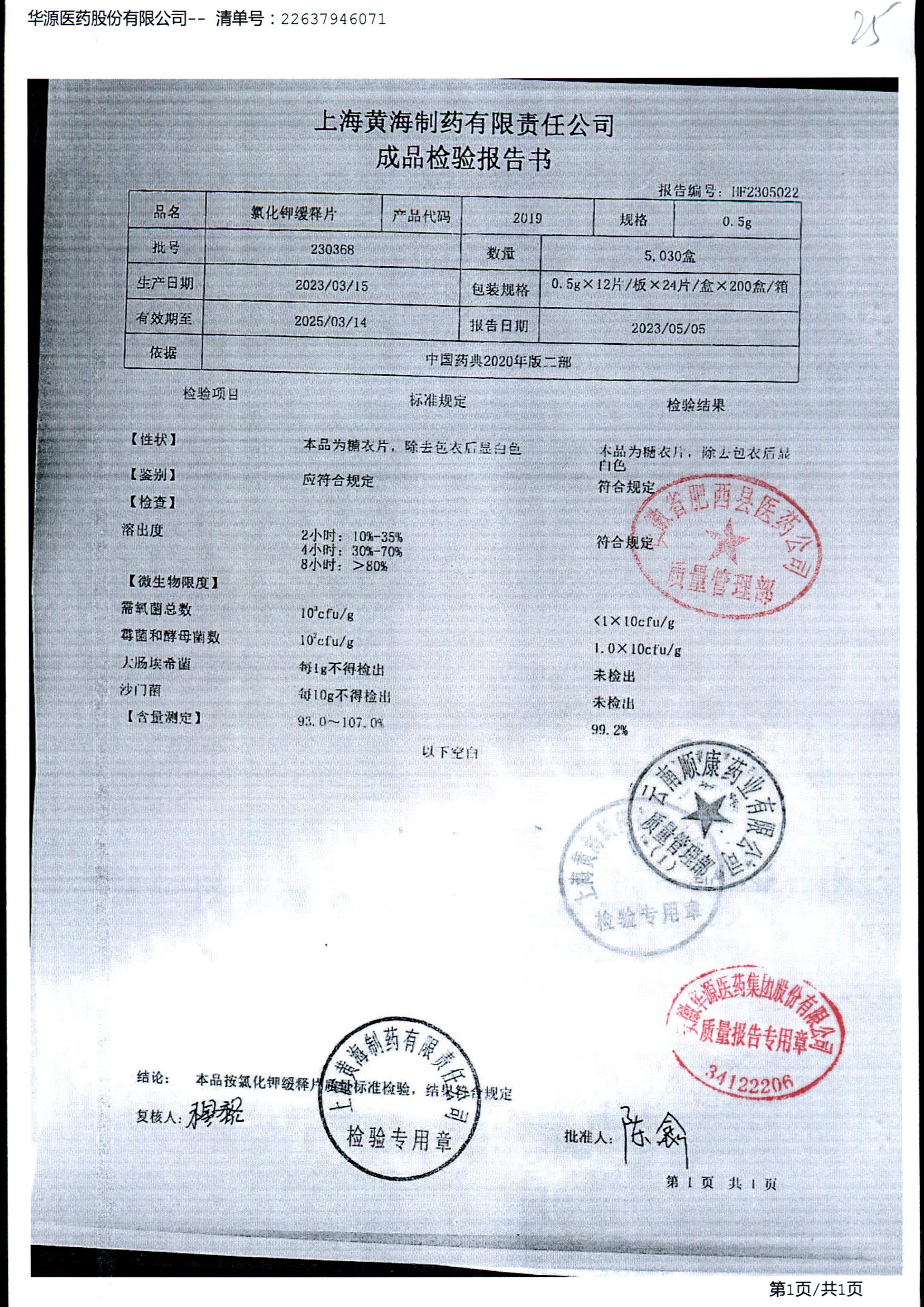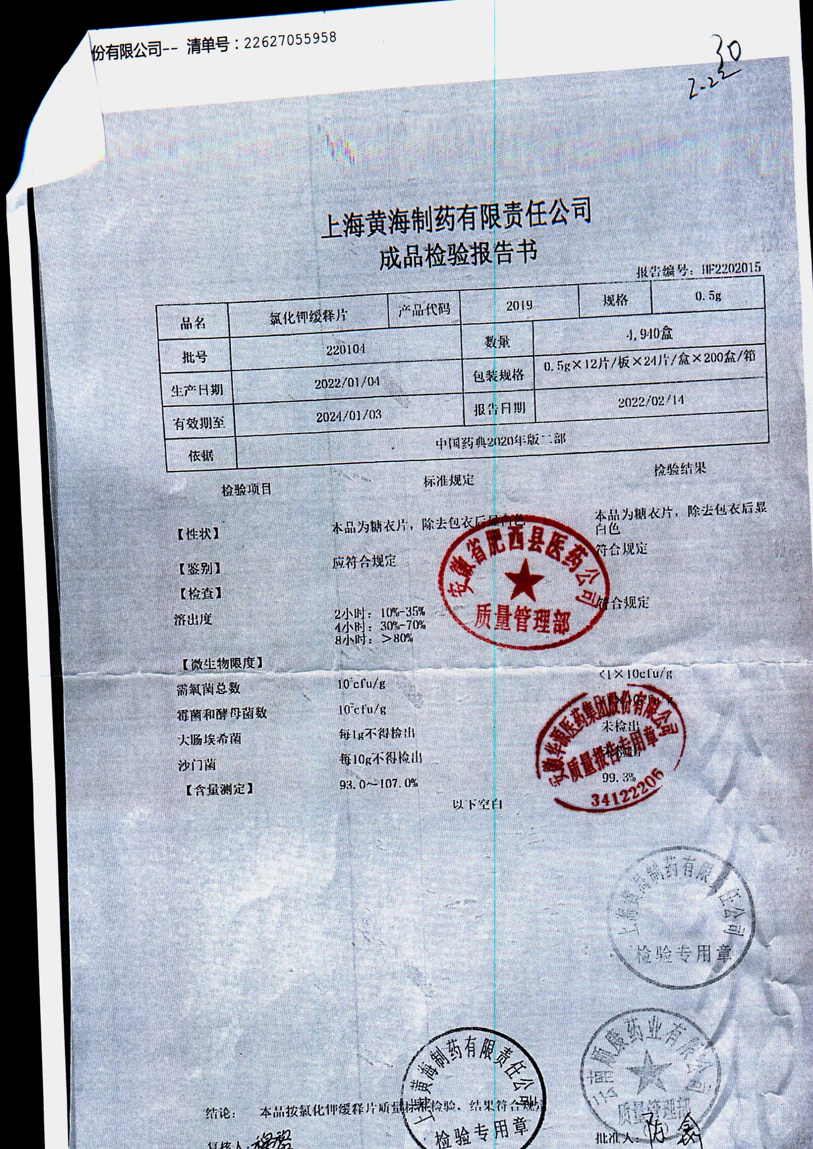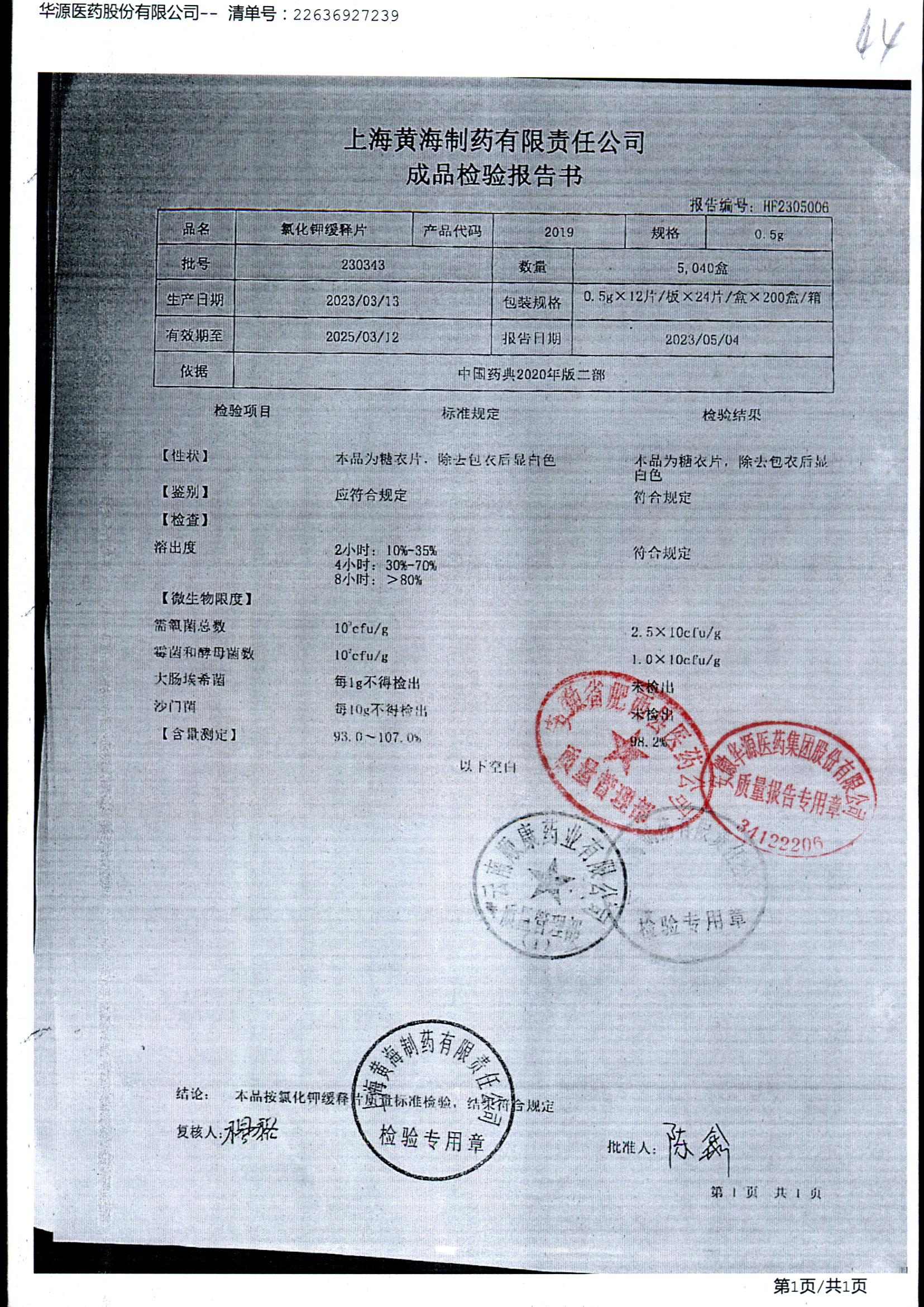 氯化钾缓释片 | 0.5gx12片/板x24片 | 240517 | 查看详情 |