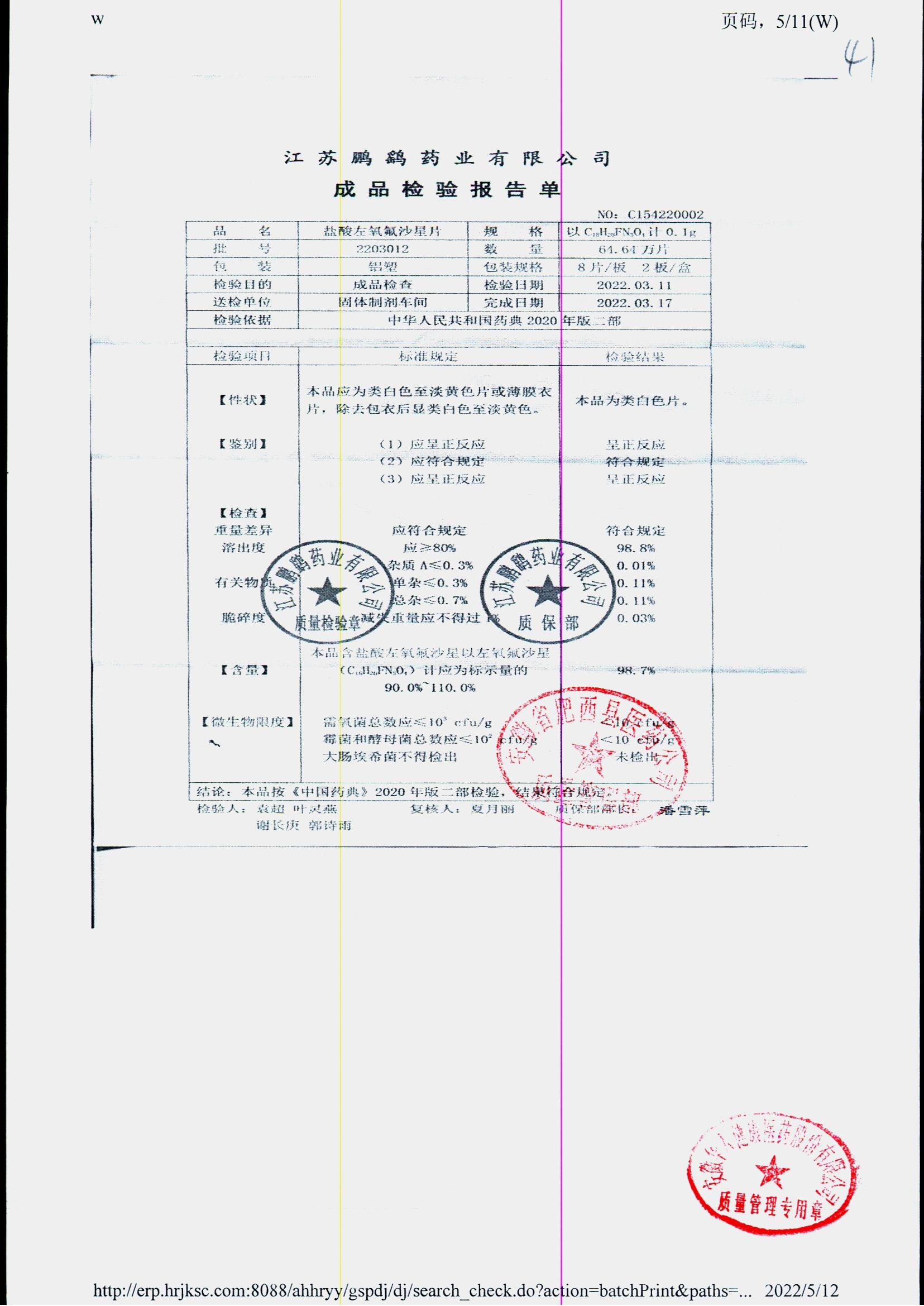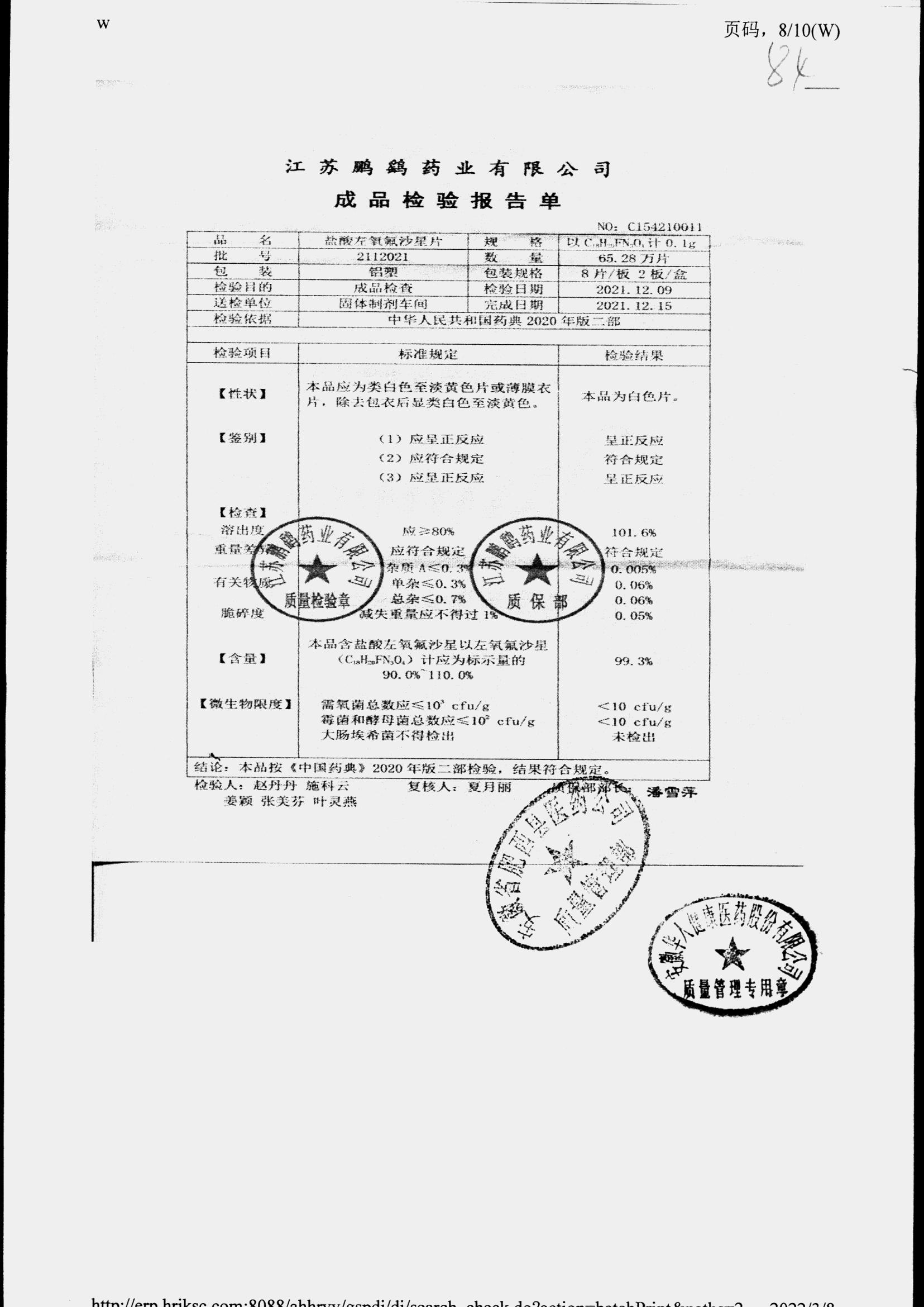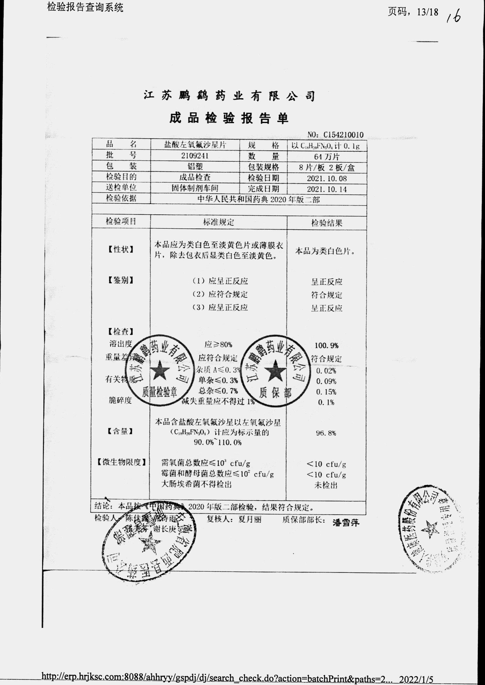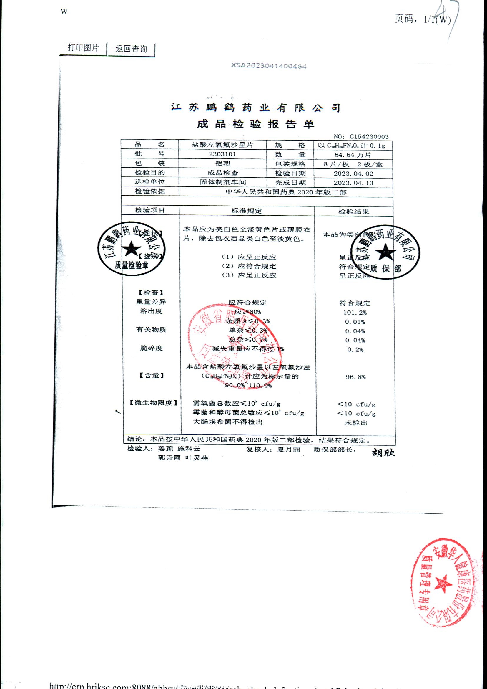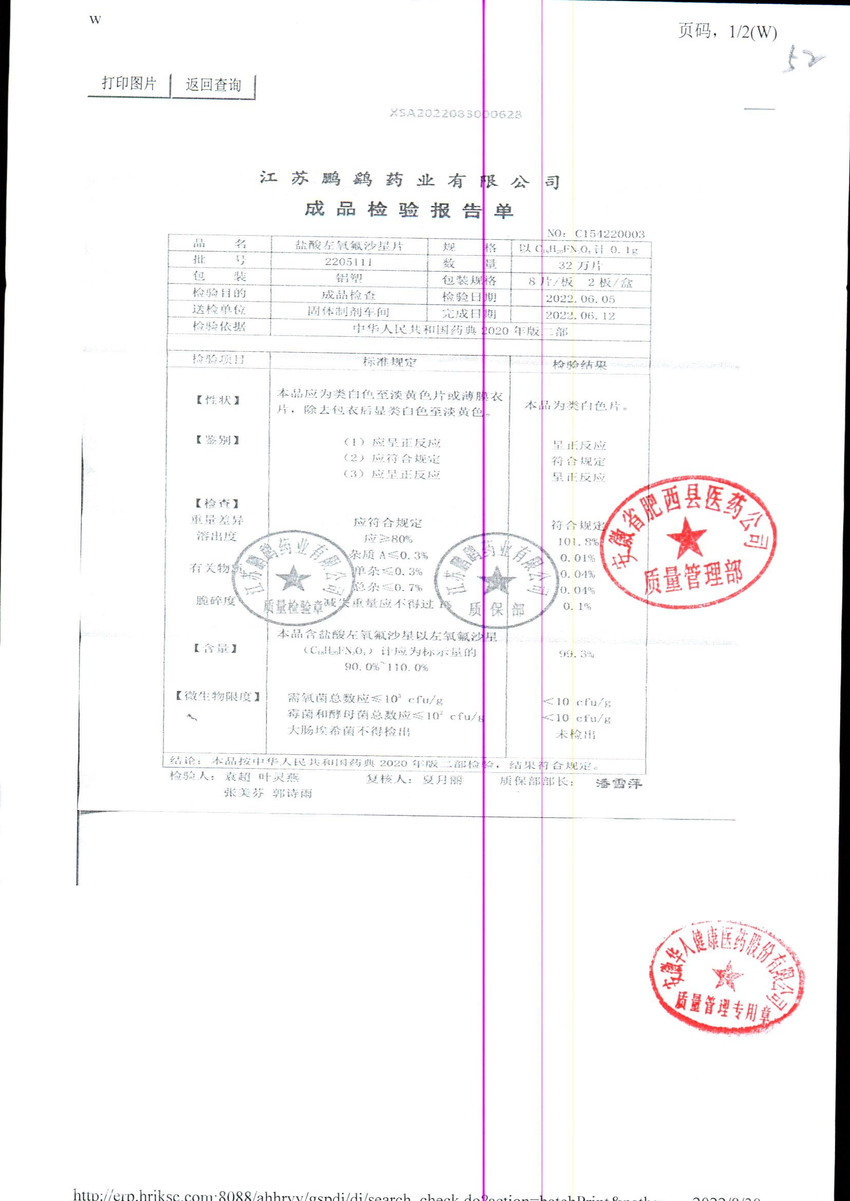 盐酸左氧氟沙星片 | 8片x2板 | 2112021 | 查看详情 |